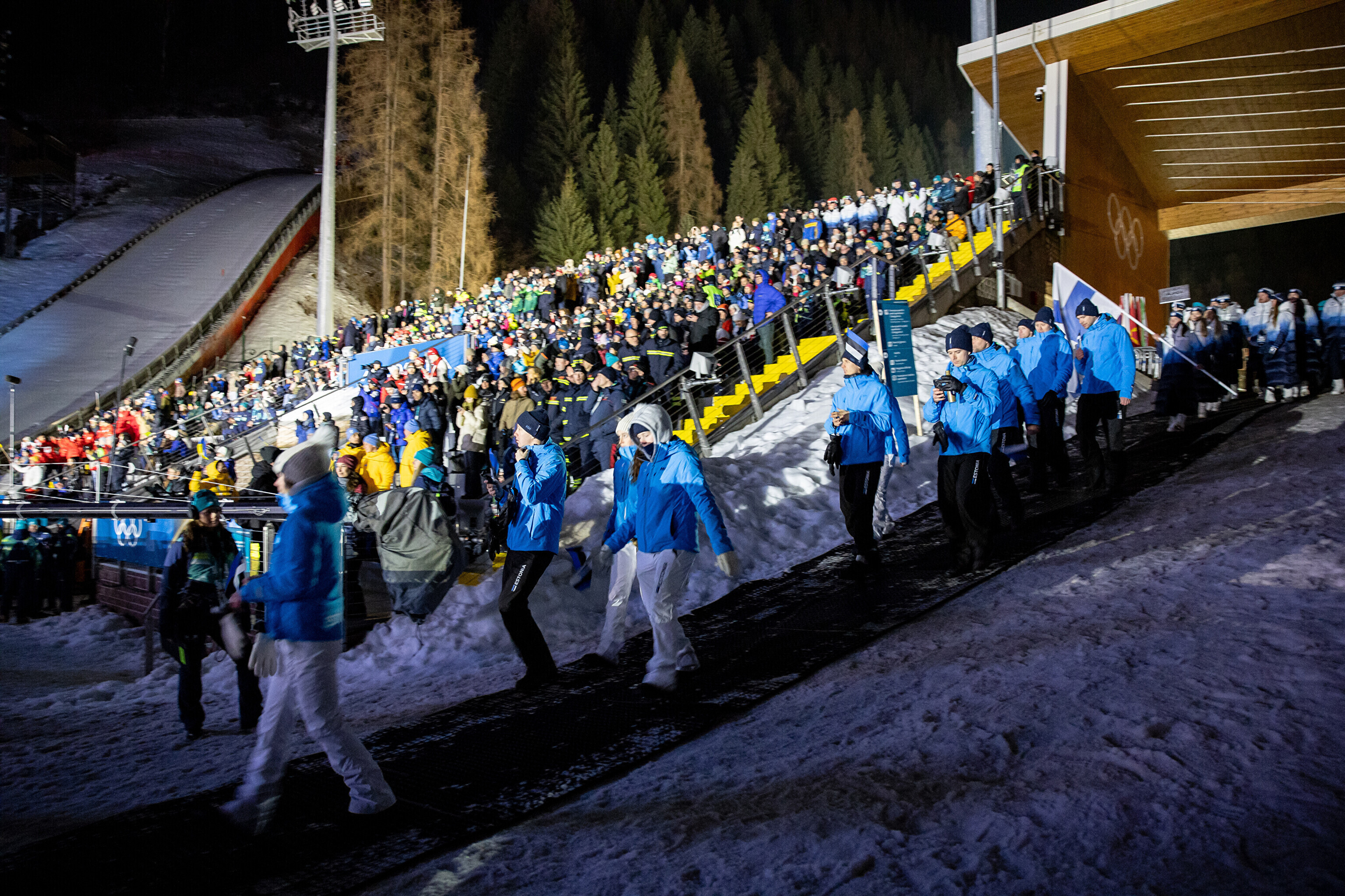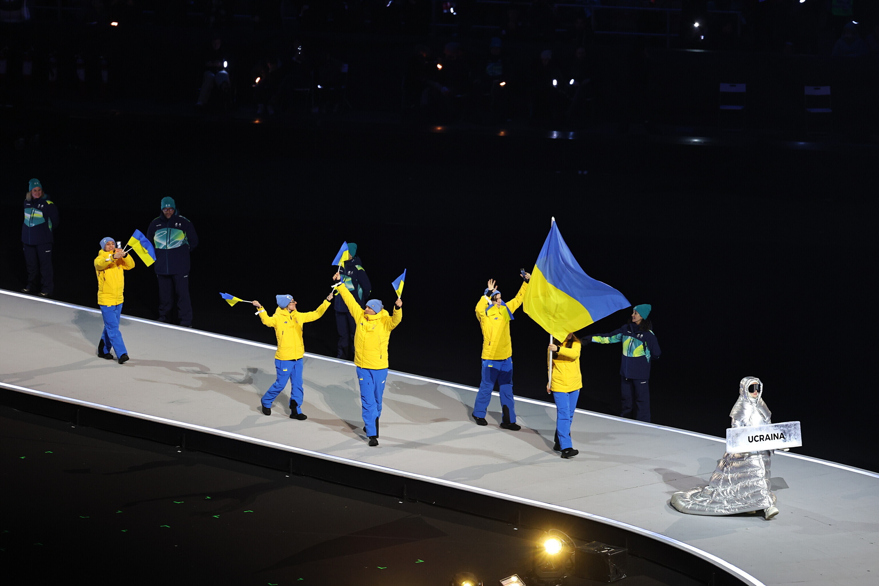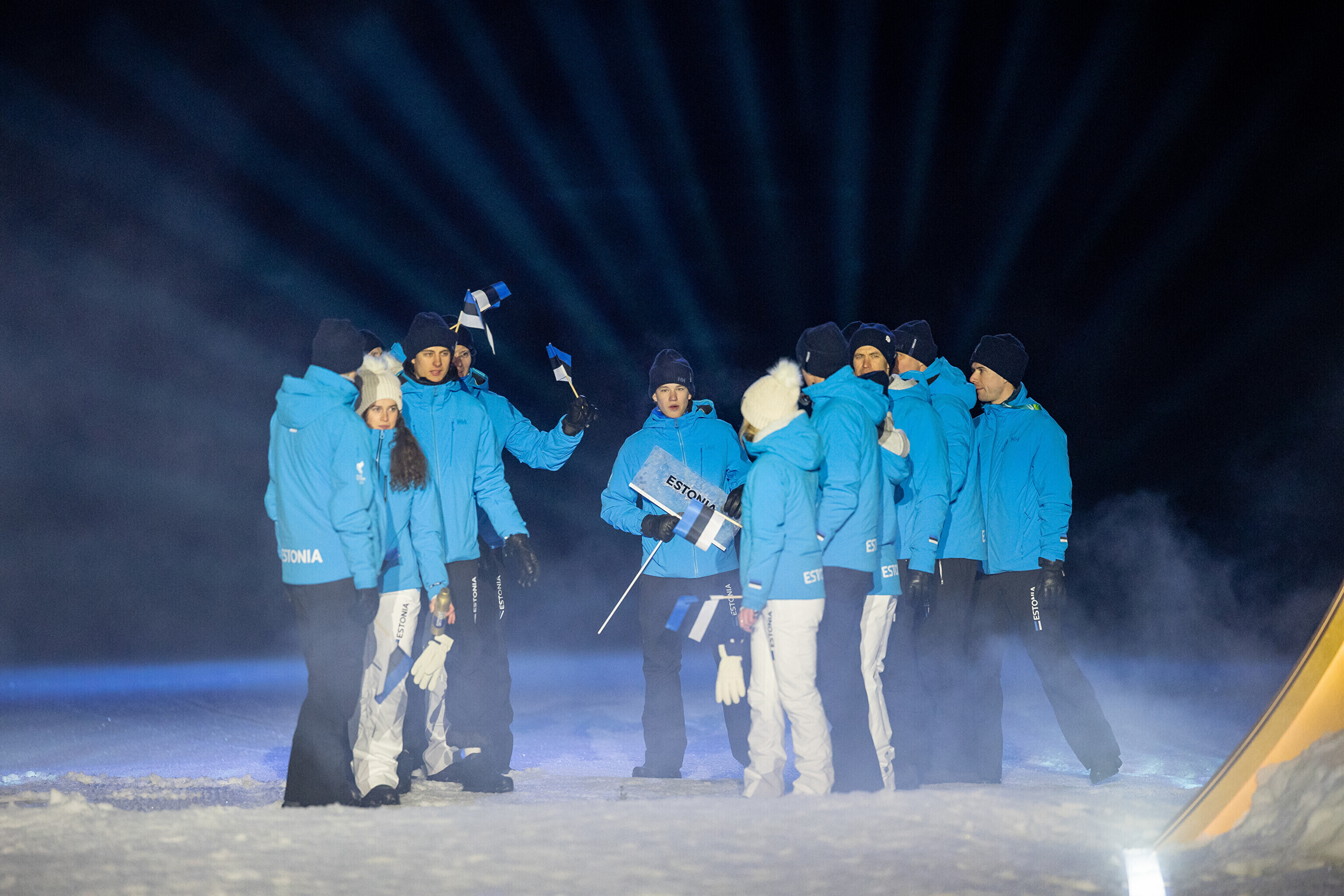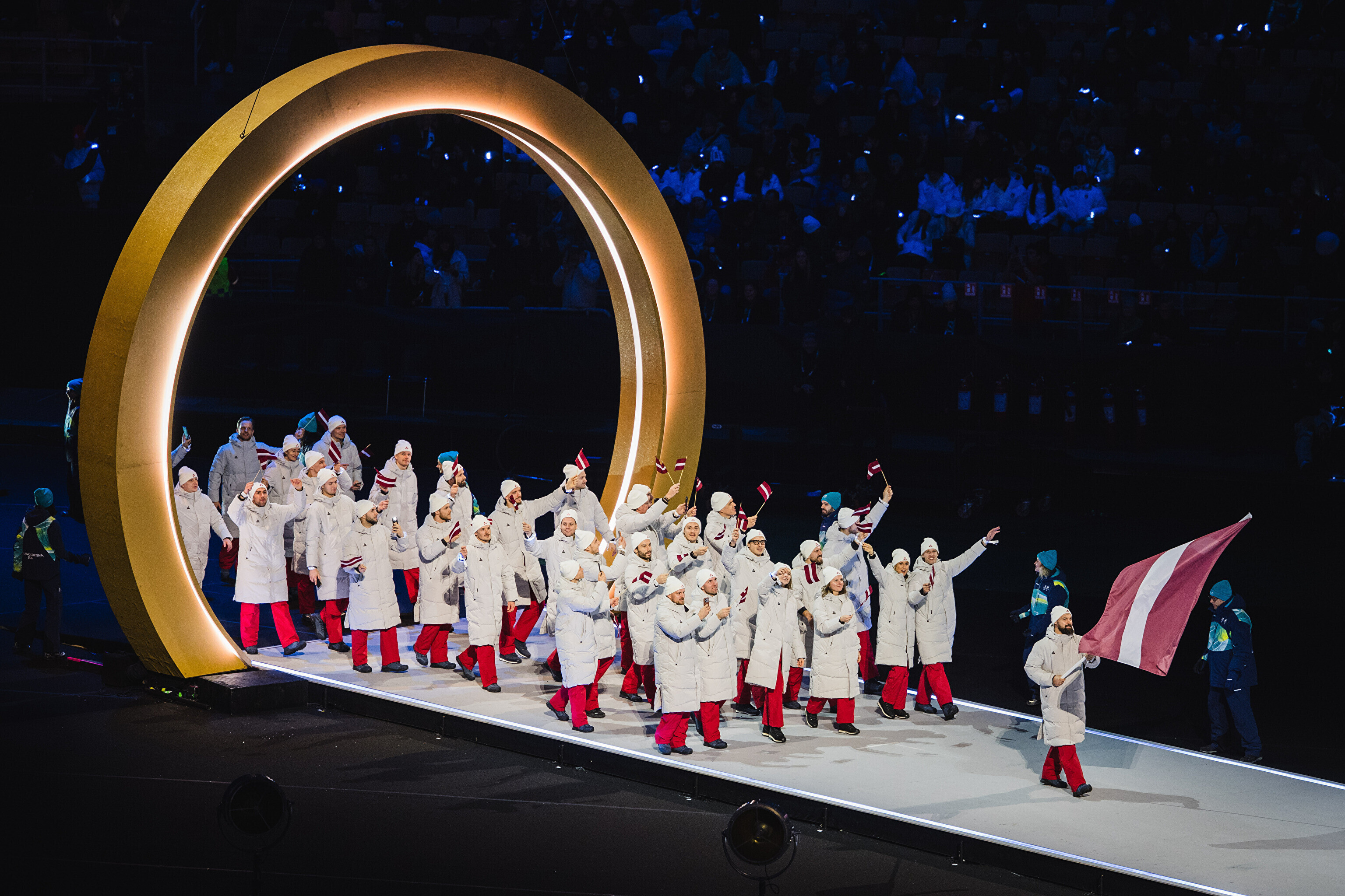 Однако спортсмены не шли рядом: церемония открытия состоялась одновременно в четырех локациях - в Милане, Кортина-д'Ампеццо, Ливиньо и Предаццо. Лийв вынес флаг на стадионе "Сан-Сиро" в Милане, а Талихярм - в олимпийской деревне Кортина-д'Ампеццо.