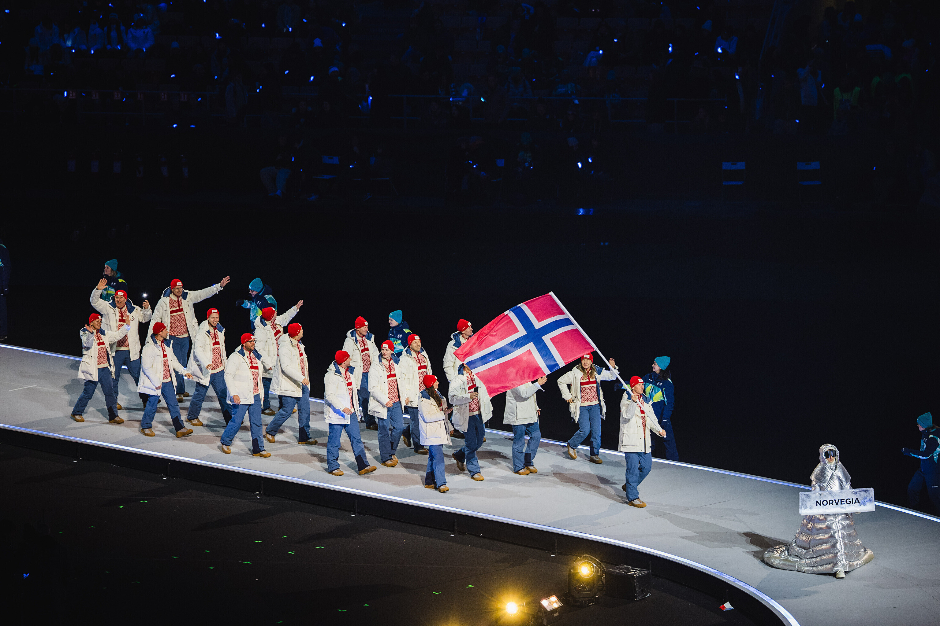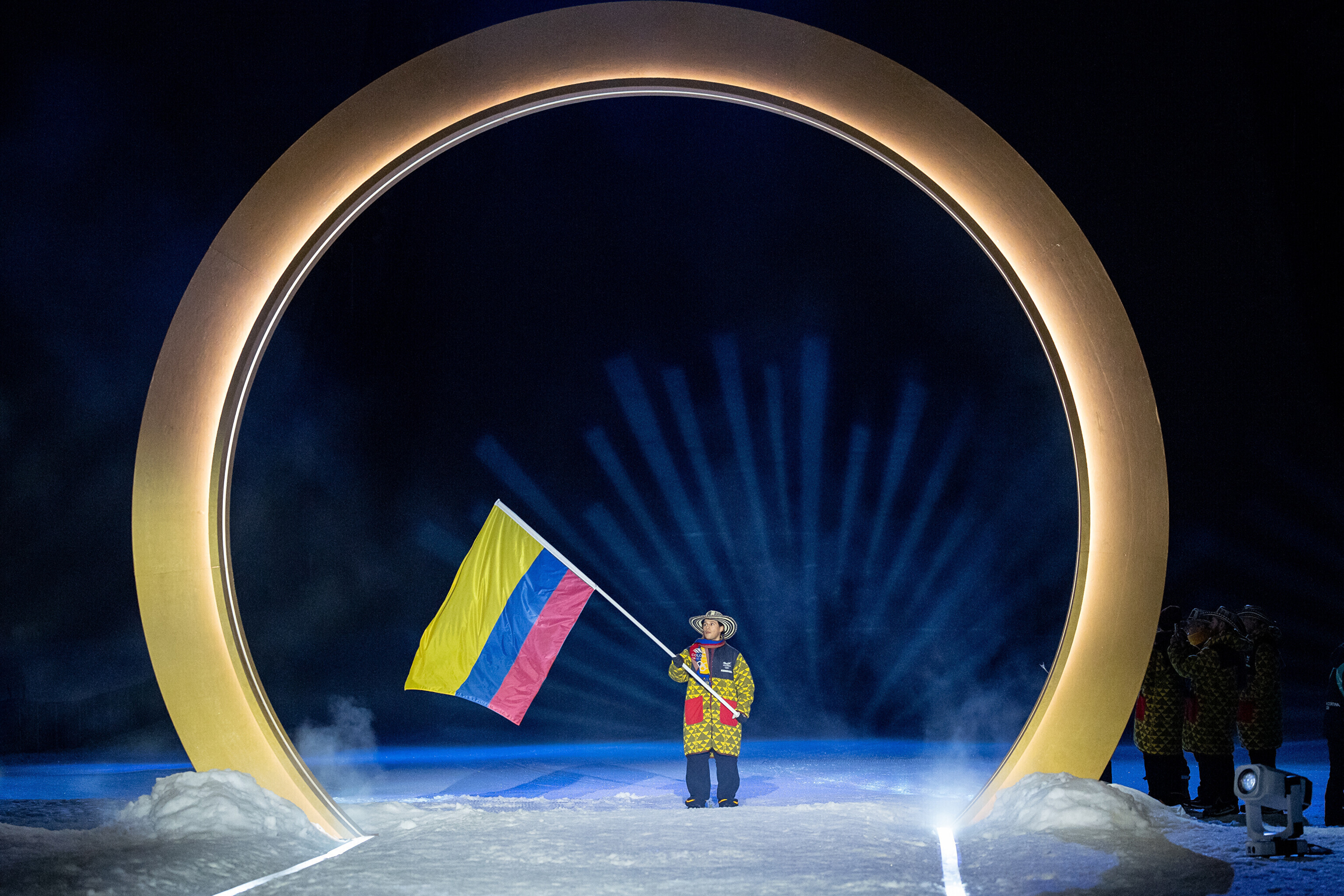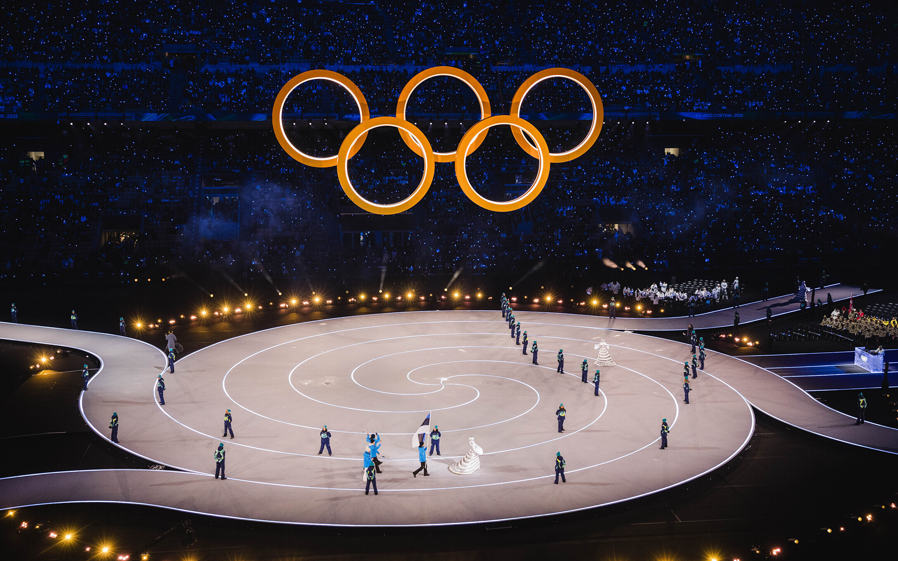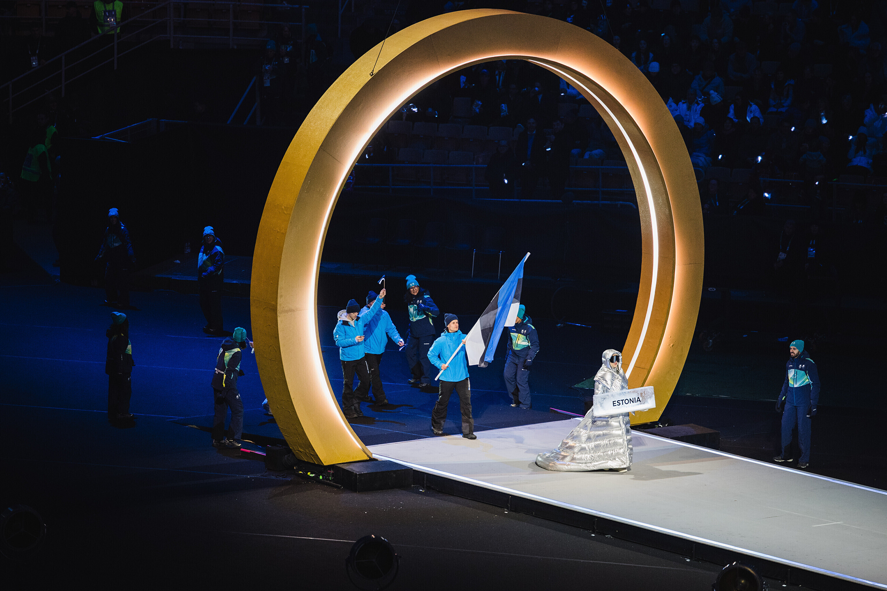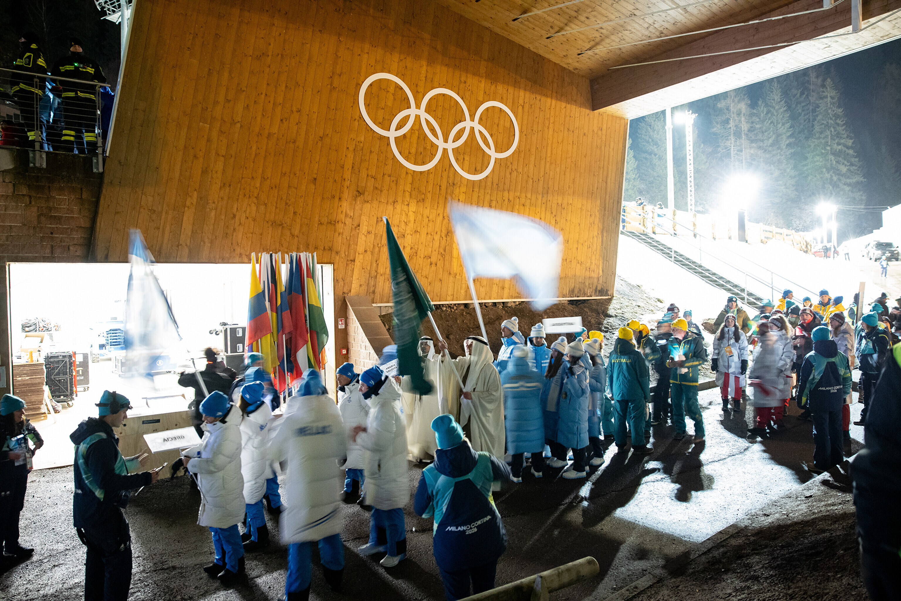 Однако спортсмены не шли рядом: церемония открытия состоялась одновременно в четырех локациях - в Милане, Кортина-д'Ампеццо, Ливиньо и Предаццо. Лийв вынес флаг на стадионе "Сан-Сиро" в Милане, а Талихярм - в олимпийской деревне Кортина-д'Ампеццо.