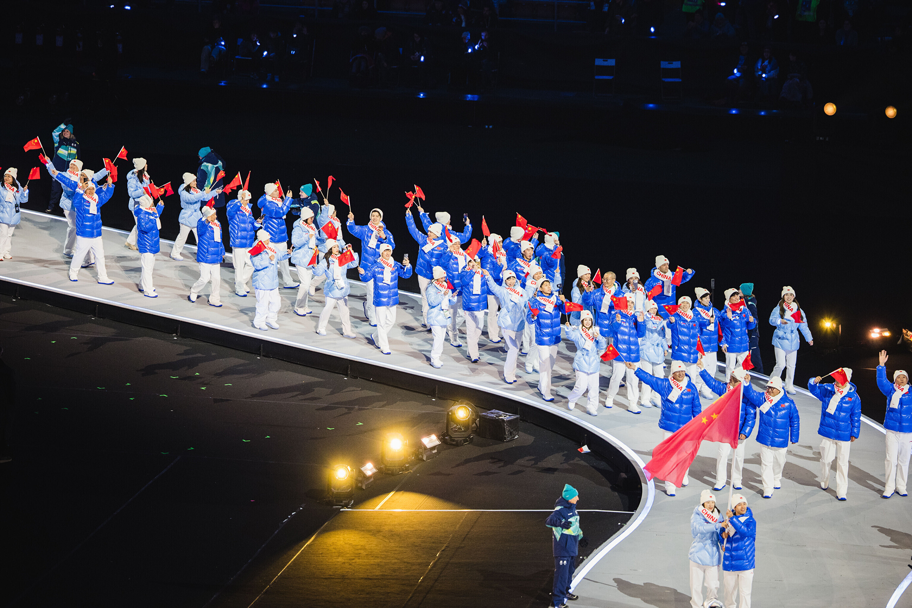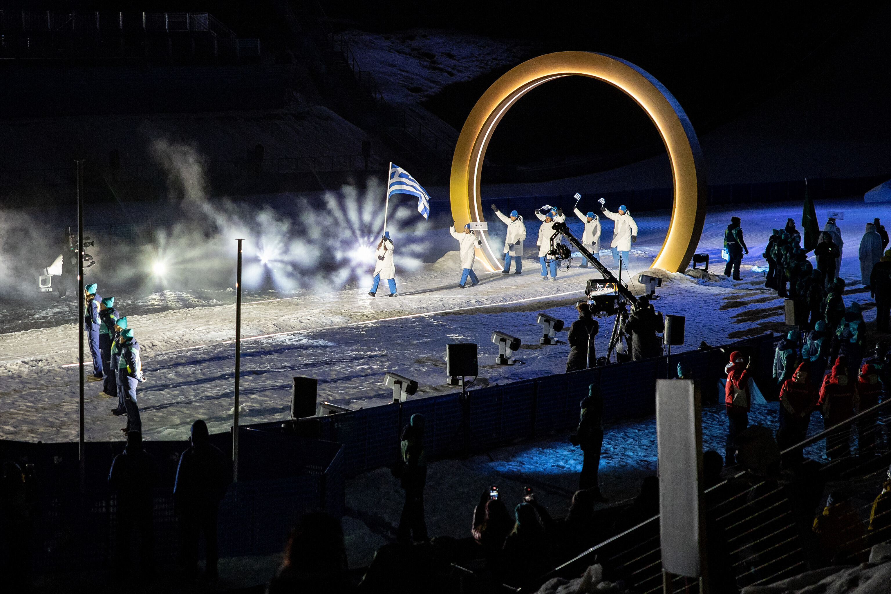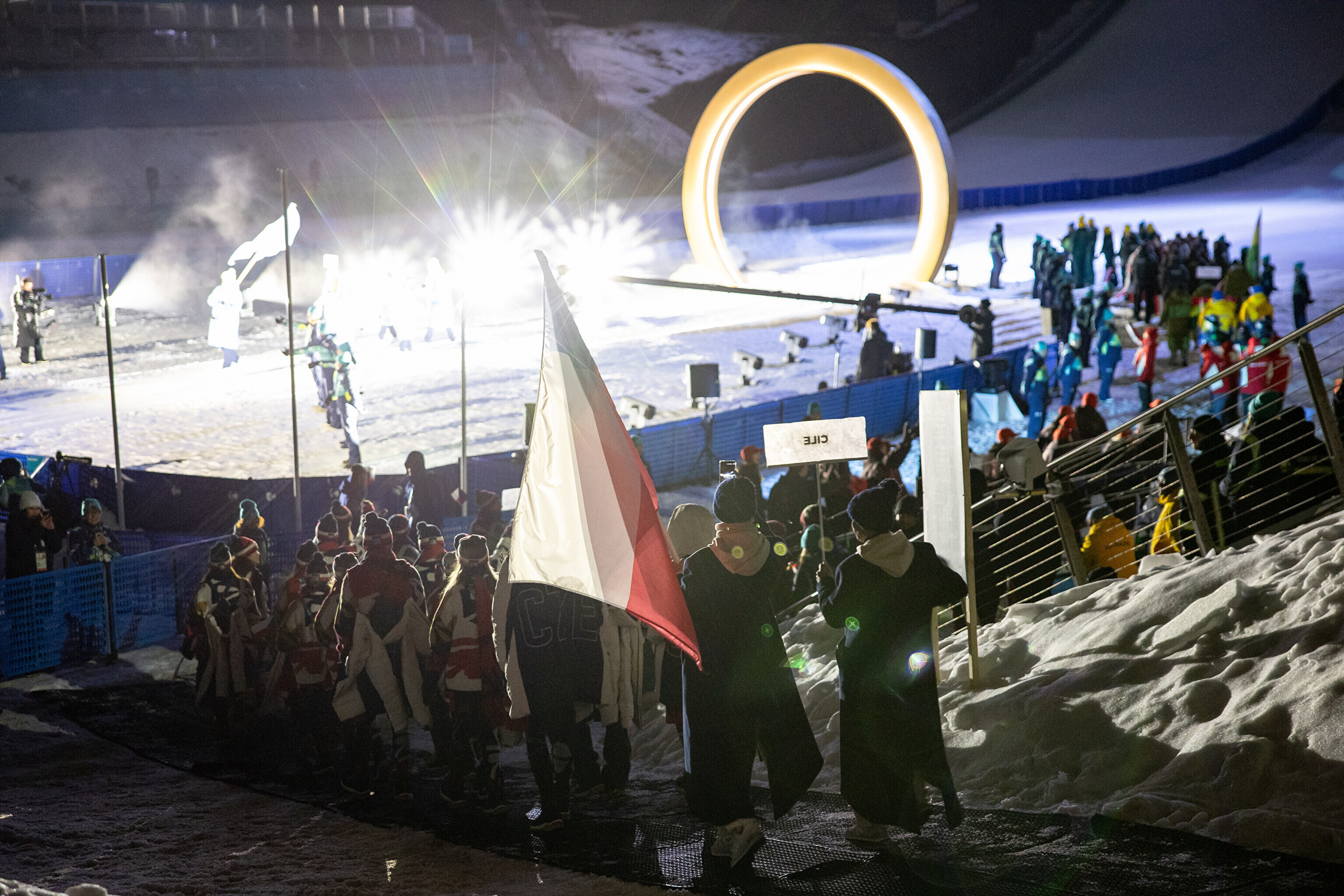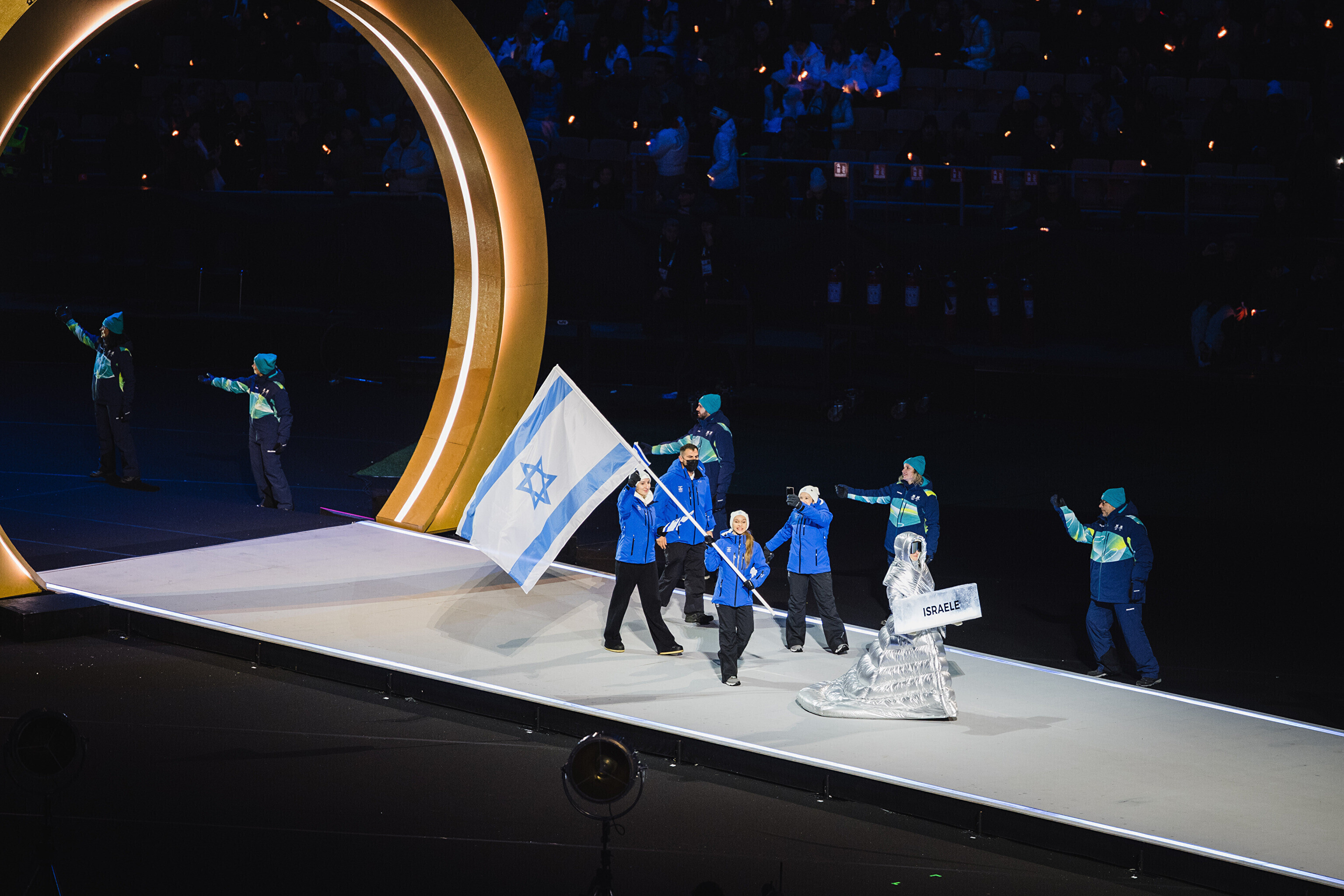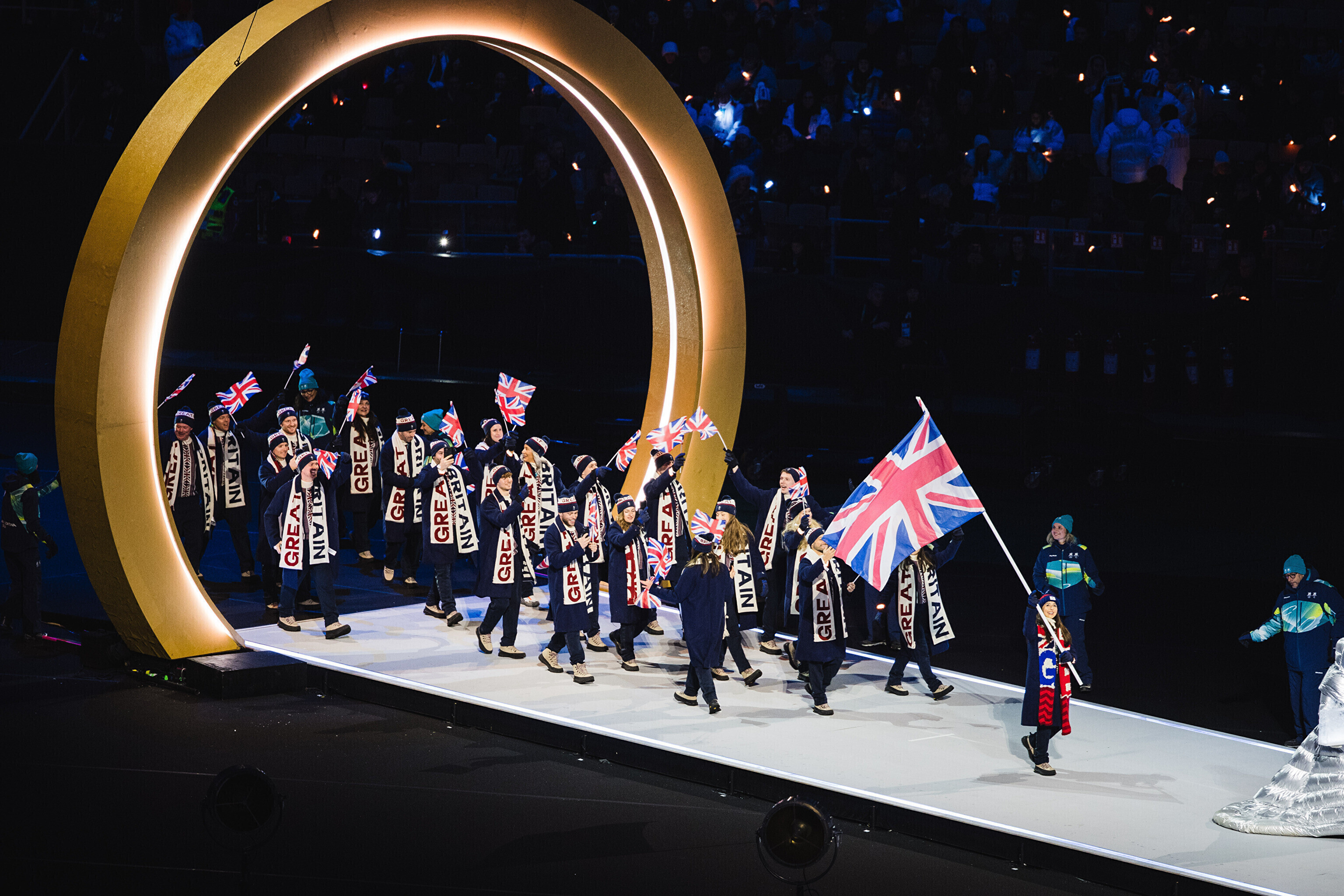 Однако спортсмены не шли рядом: церемония открытия состоялась одновременно в четырех локациях - в Милане, Кортина-д'Ампеццо, Ливиньо и Предаццо. Лийв вынес флаг на стадионе "Сан-Сиро" в Милане, а Талихярм - в олимпийской деревне Кортина-д'Ампеццо.