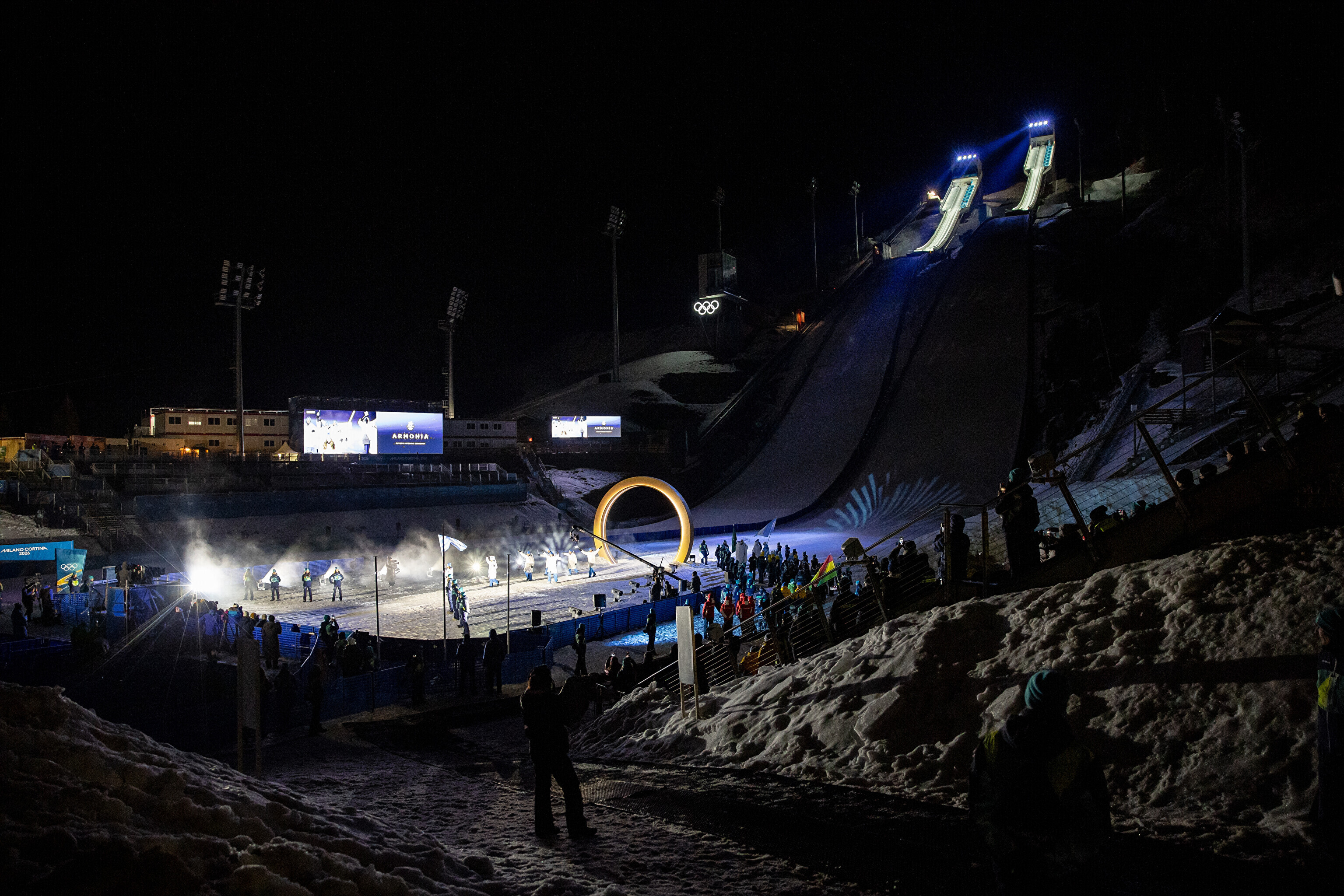 Торжественное открытие Олимпиады стало самым необычным за последние годы. Церемония продлилась более трех часов и впервые в истории были зажжены две олимпийские чаши: одна в Милане, на площади Арко-делла-Паче, вторая - в Кортина-д'Ампеццо, где пройдут соревнования по лыжным видам спорта.