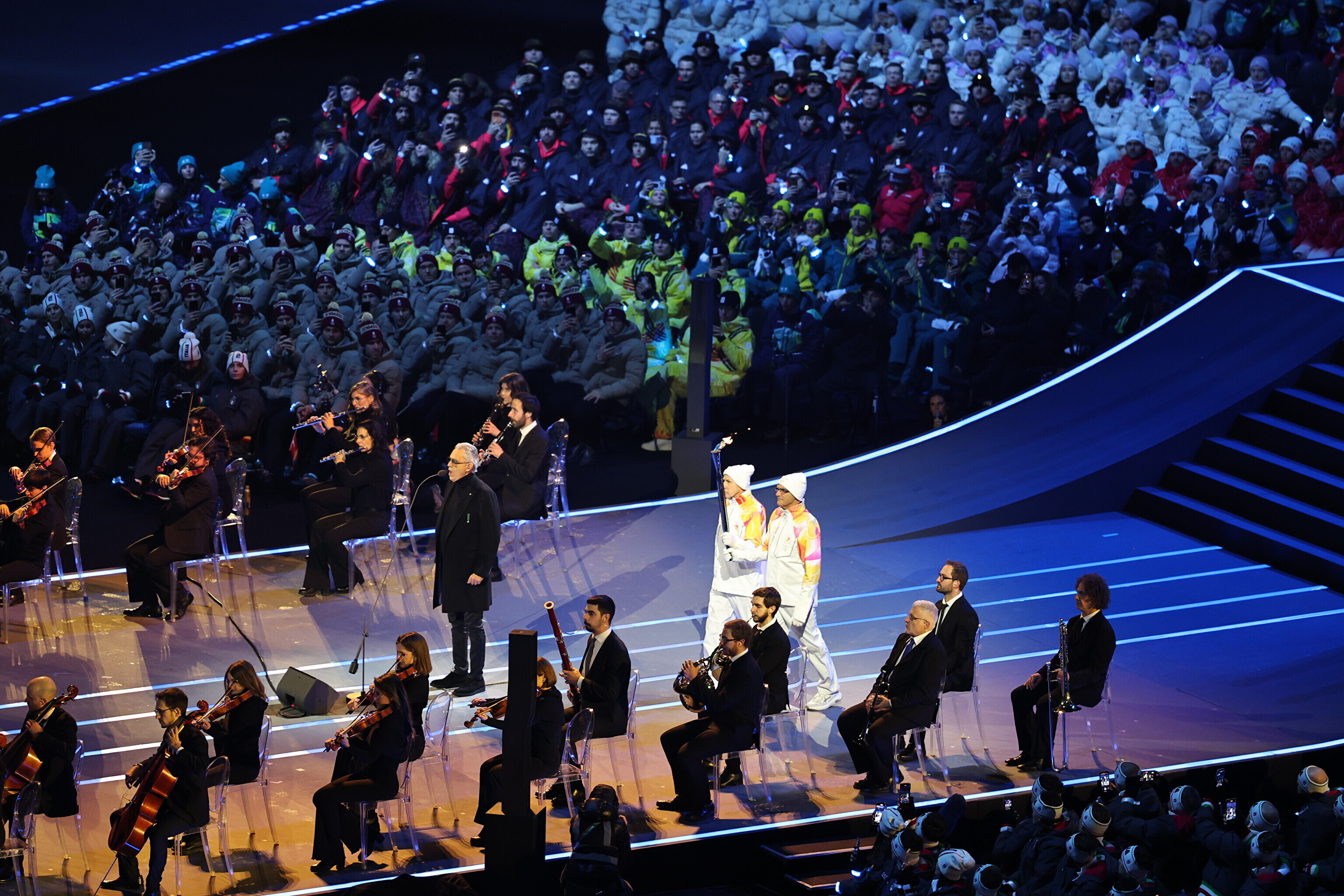 Последними факелоносцами стали титулованные итальянские горнолыжники. Альберто Томба и Дебора Компаньони зажгли олимпийский огонь в Милане. София Годжа это сделала в Кортина-д'Ампеццо.