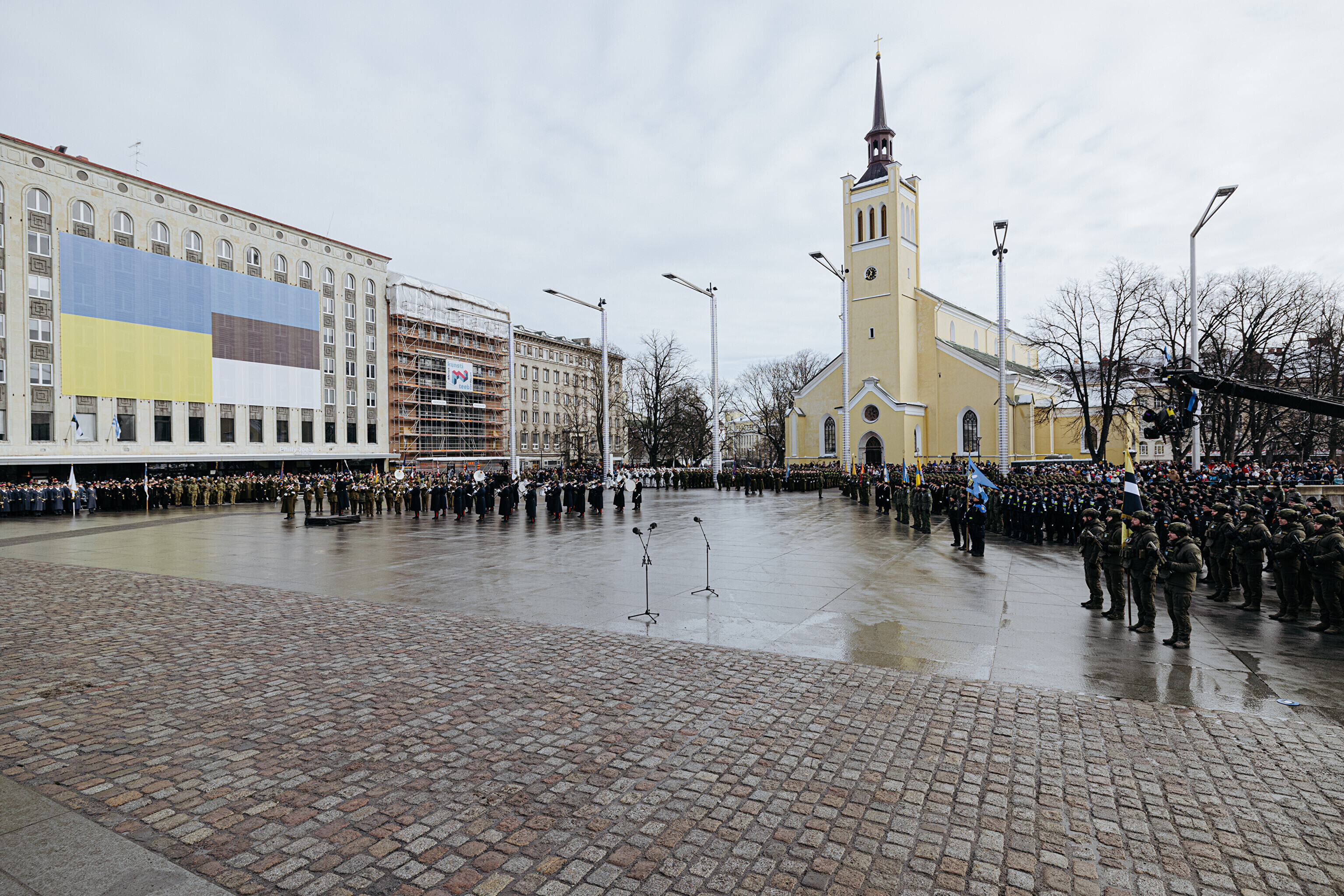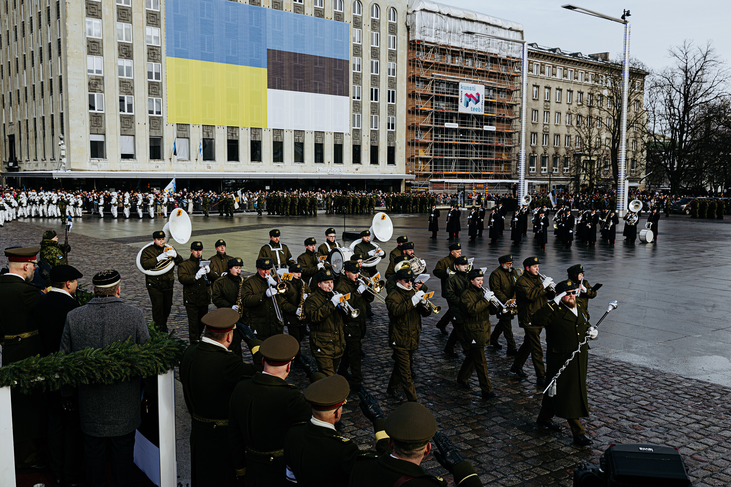 Подразделения выстроились на площади Вабадузе 24 февраля в 11:00. Парад под командованием главы Сил обороны генерал-лейтенанта Андруса Мерило принял президент Алар Карис. За построение войск отвечал главный фельдфебель Сил обороны Андреас Ребане.