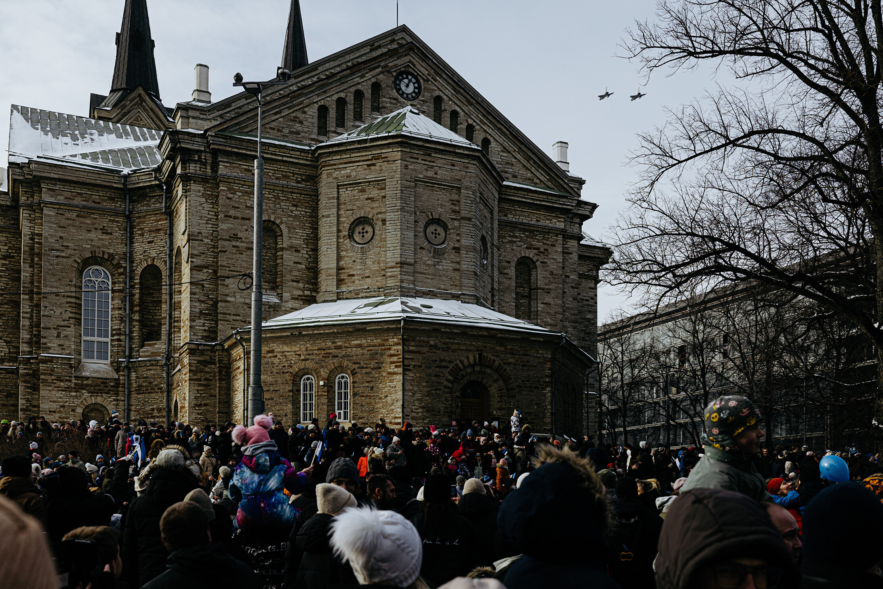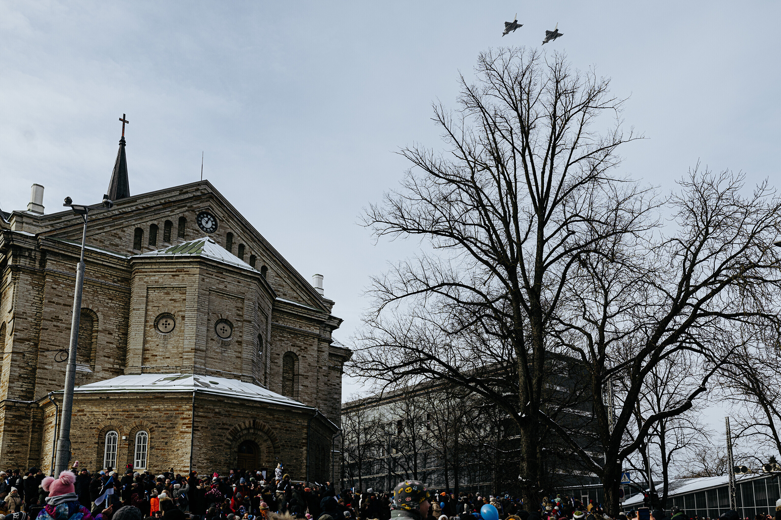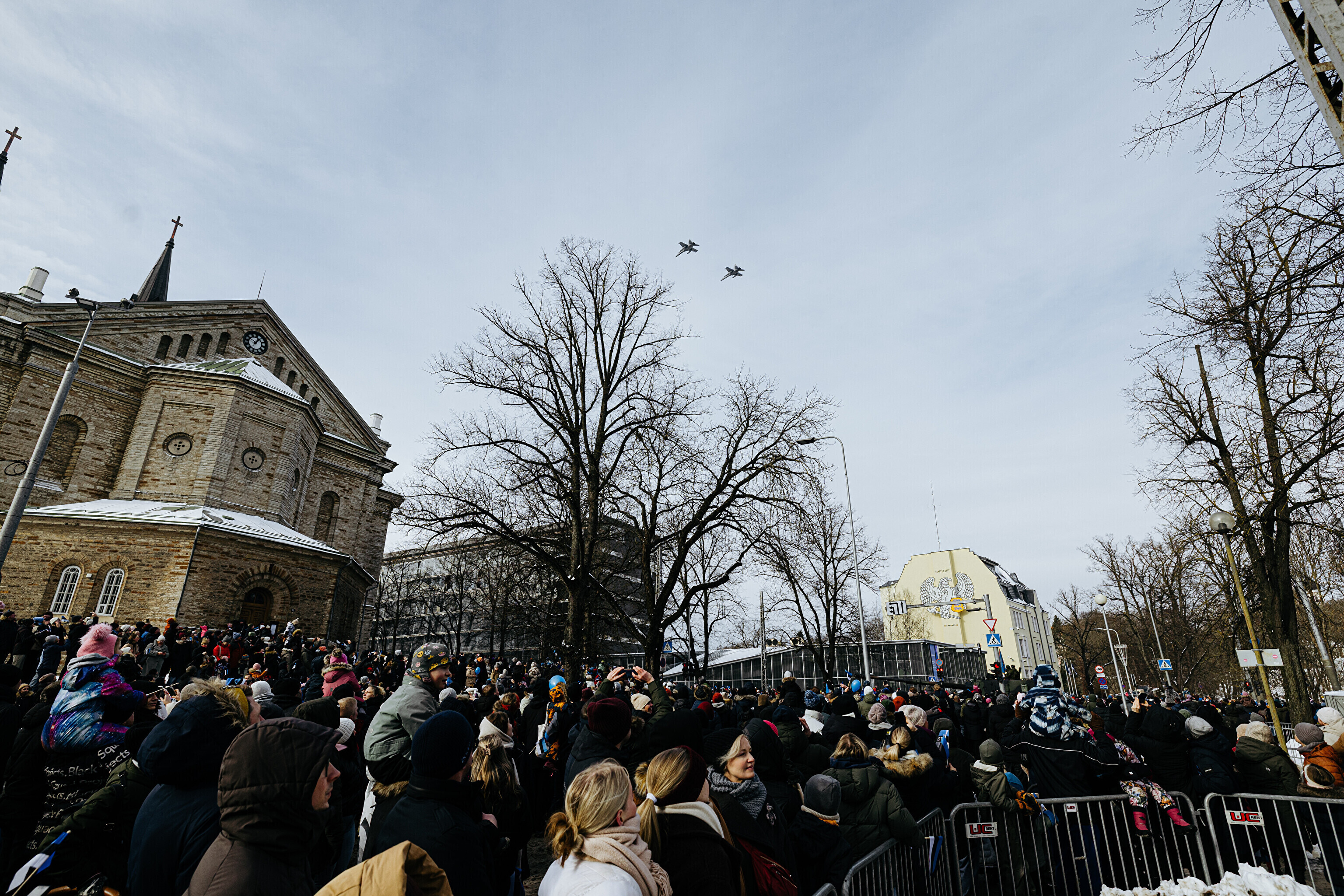 Над военным парадом пролетели различные воздушные суда Эстонии и ее союзников. В связи с этим запуск любых дронов и других летательных аппаратов в зоне проведения парада и его окрестностях был строго запрещен.