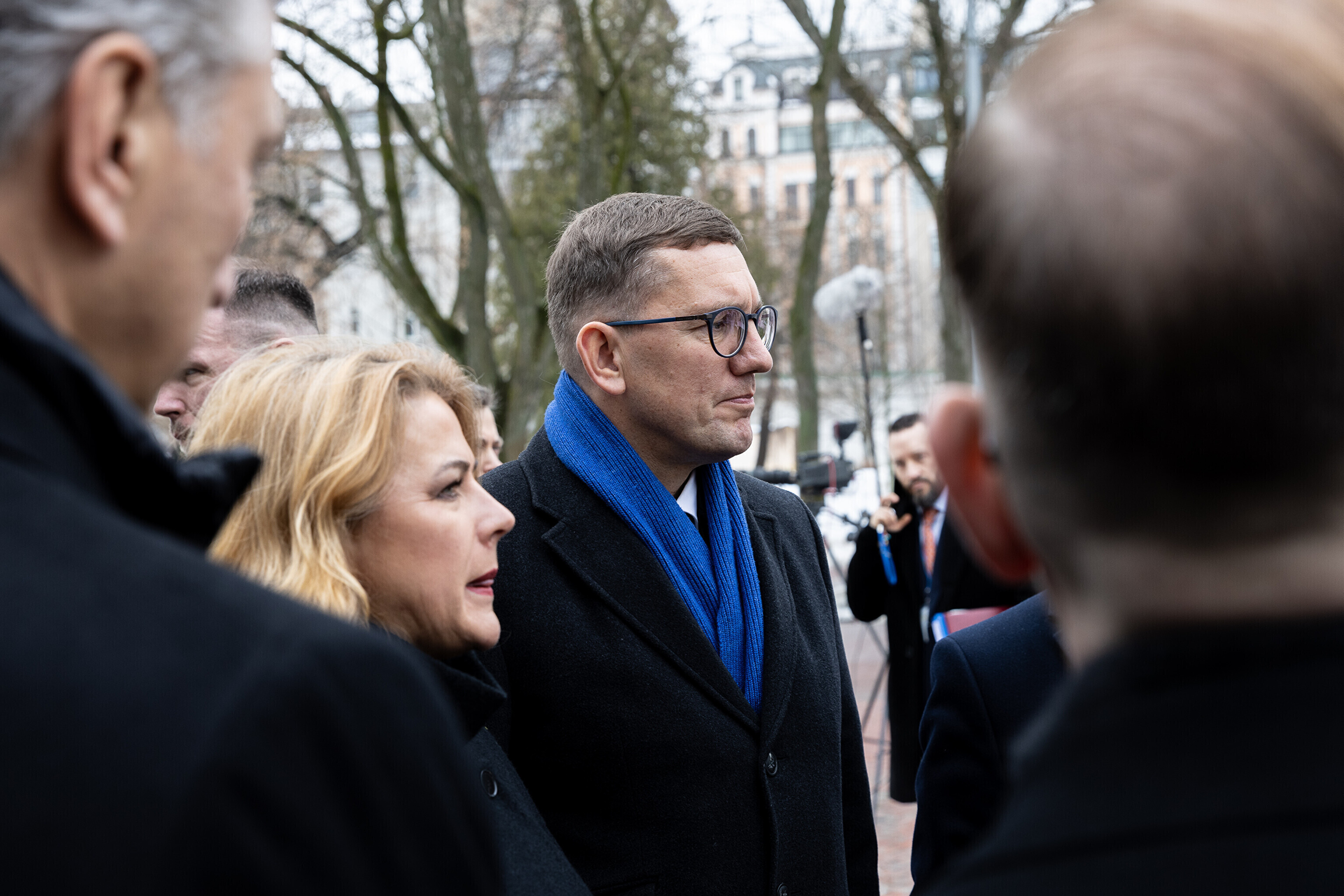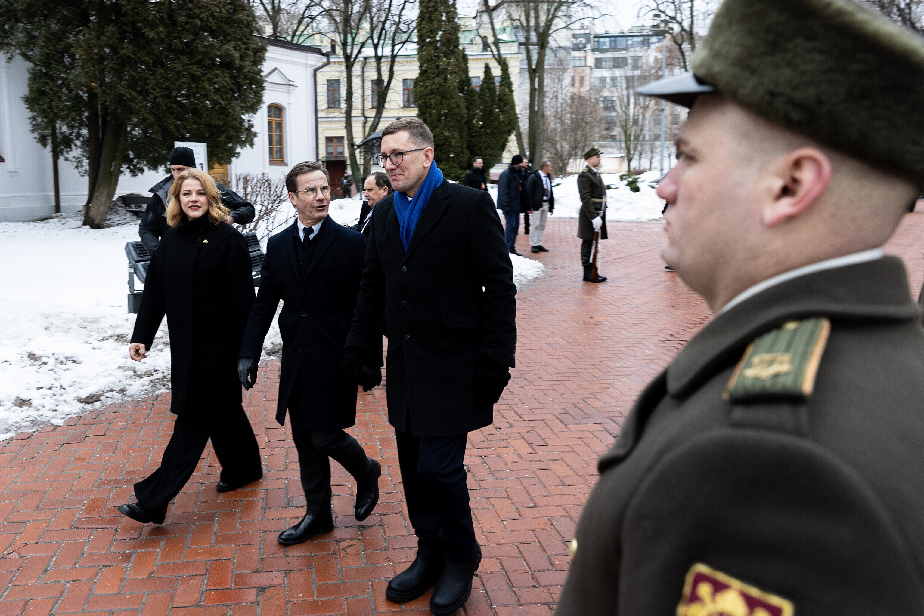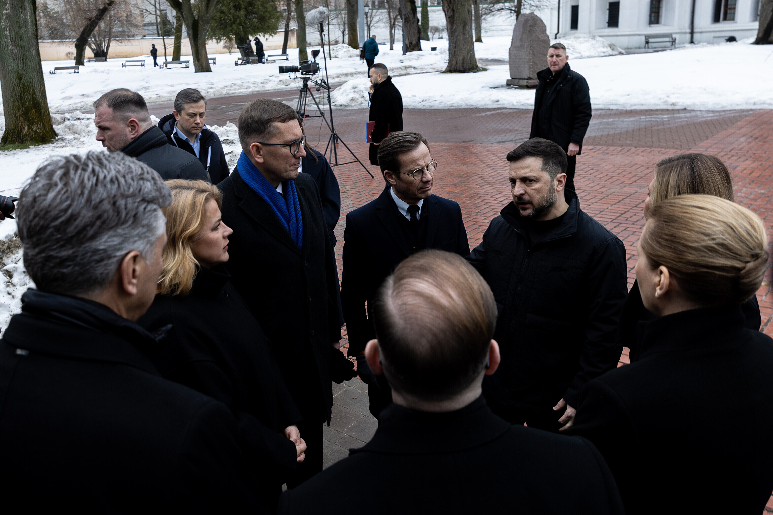 В совместном визите в рамках NB8 принимают участие премьер-министр Исландии Катрин Якобсдоттир, премьер-министр Латвии Эвика Силиня, министр обороны Литвы Робертас Каунас, премьер-министр Норвегии Йонас Гар Стёре, премьер-министр Швеции Ульф Кристерссон, президент Финляндии Александр Стубб, премьер-министр Дании Метте Фредериксен.