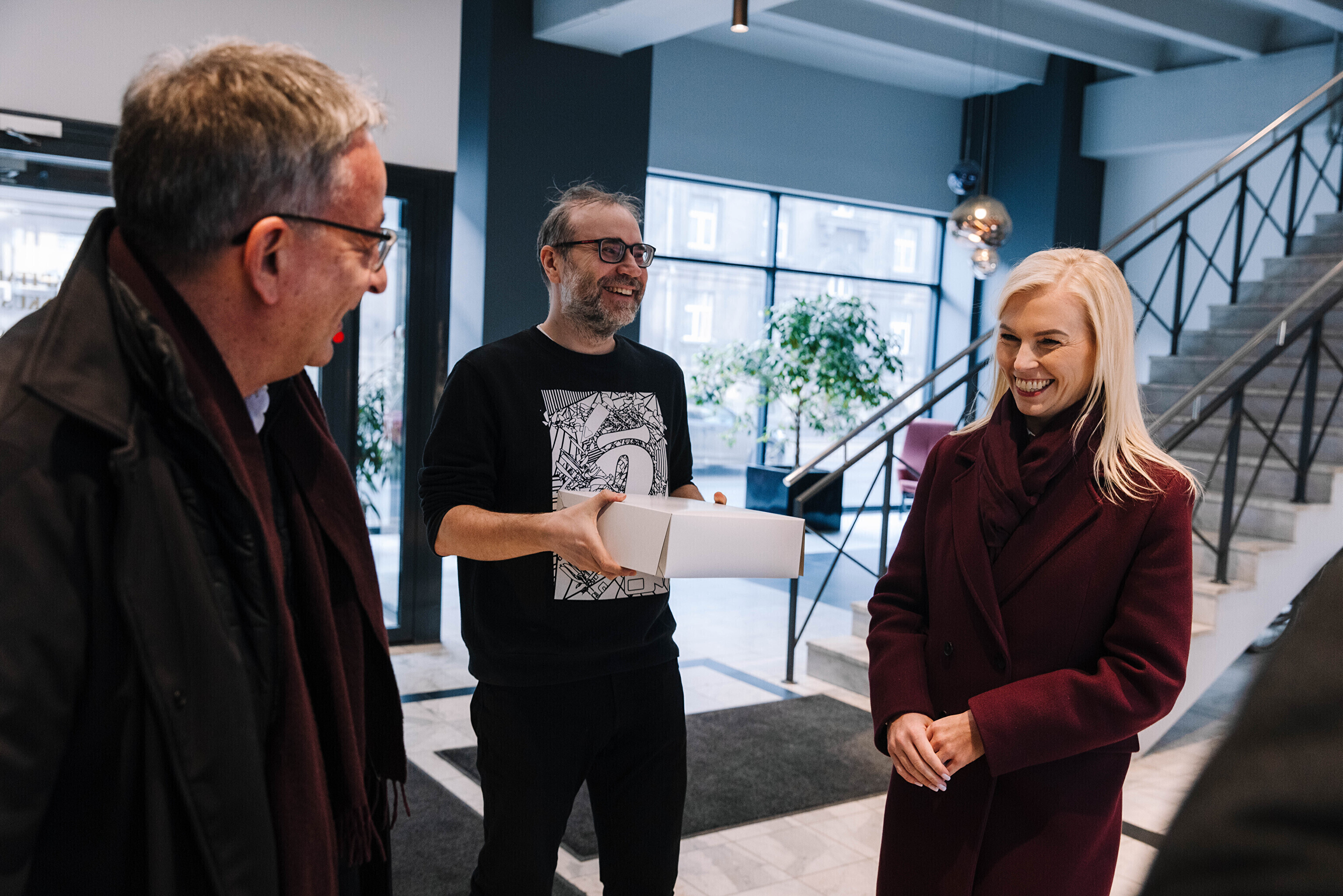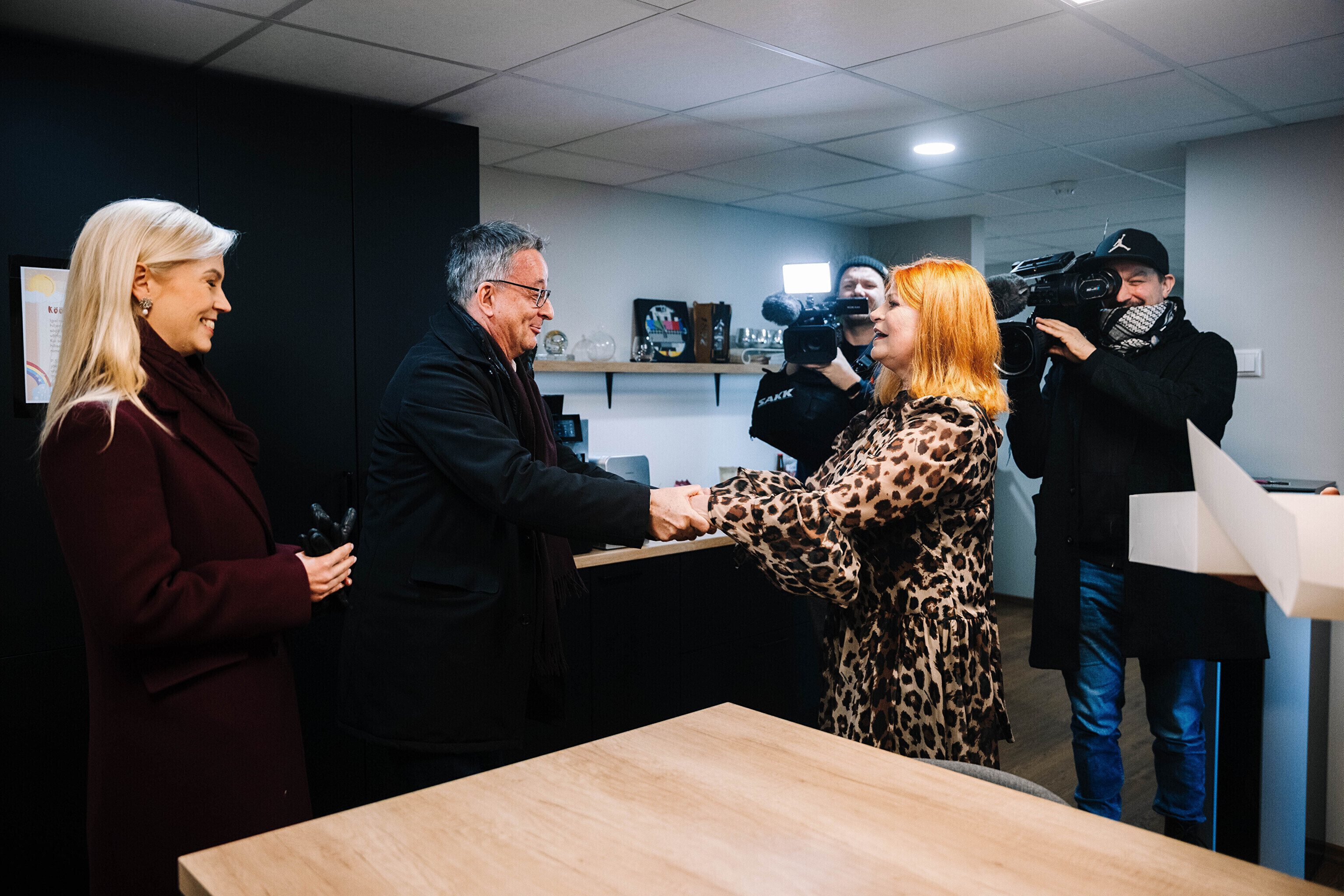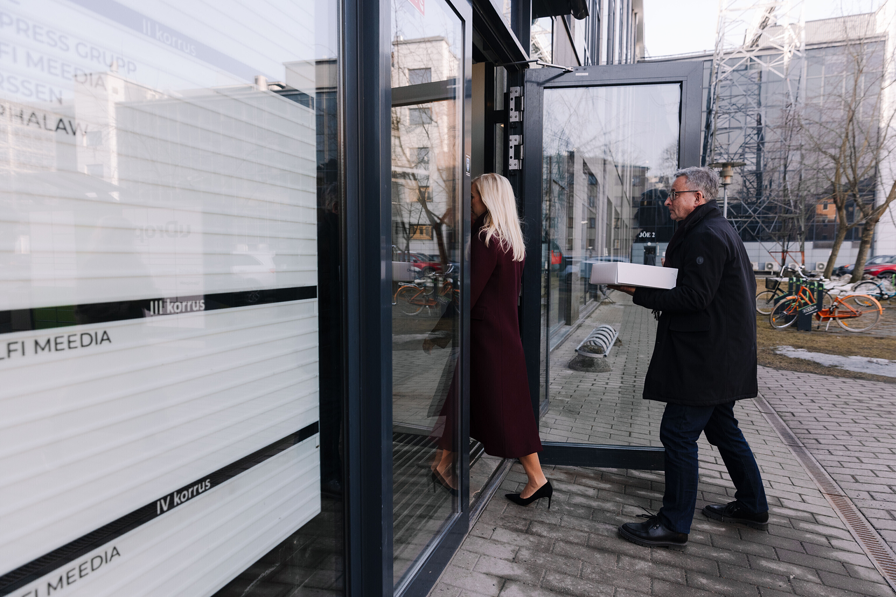 В редакции на Нарвском шоссе Саара и Лассь встретили главный редактор Õhtuleht Мартин Шмутов и главный редактор Delfi Урмо Соонвальд.