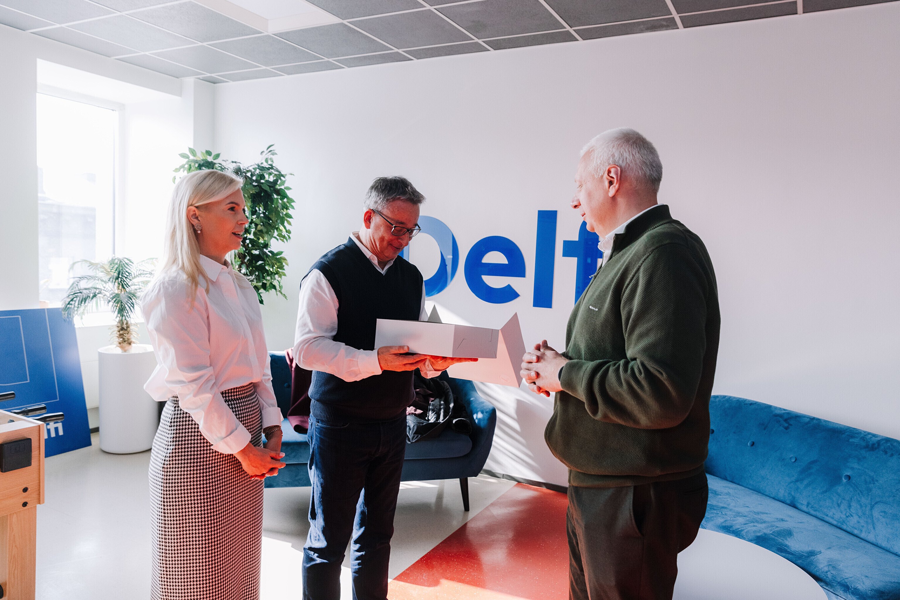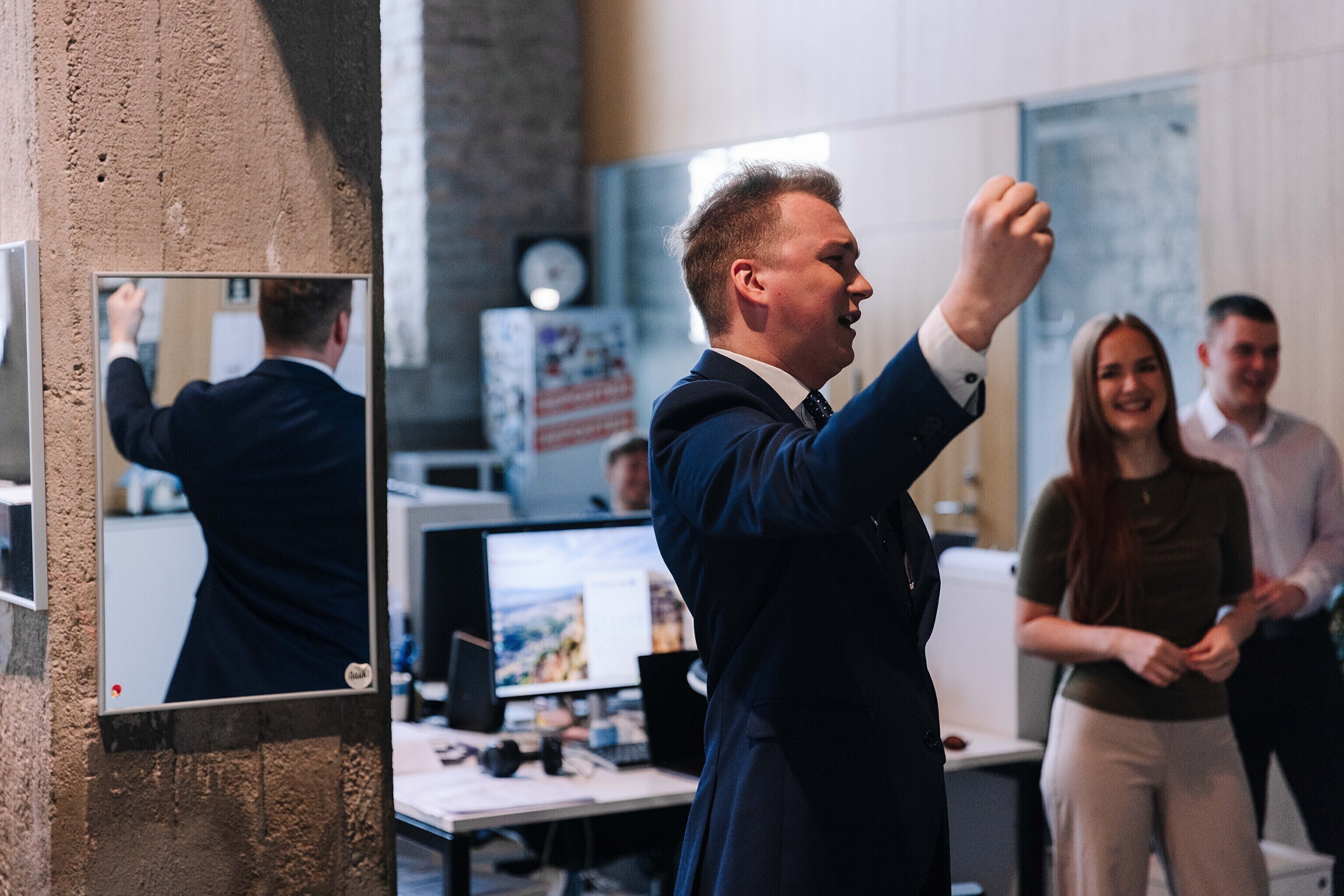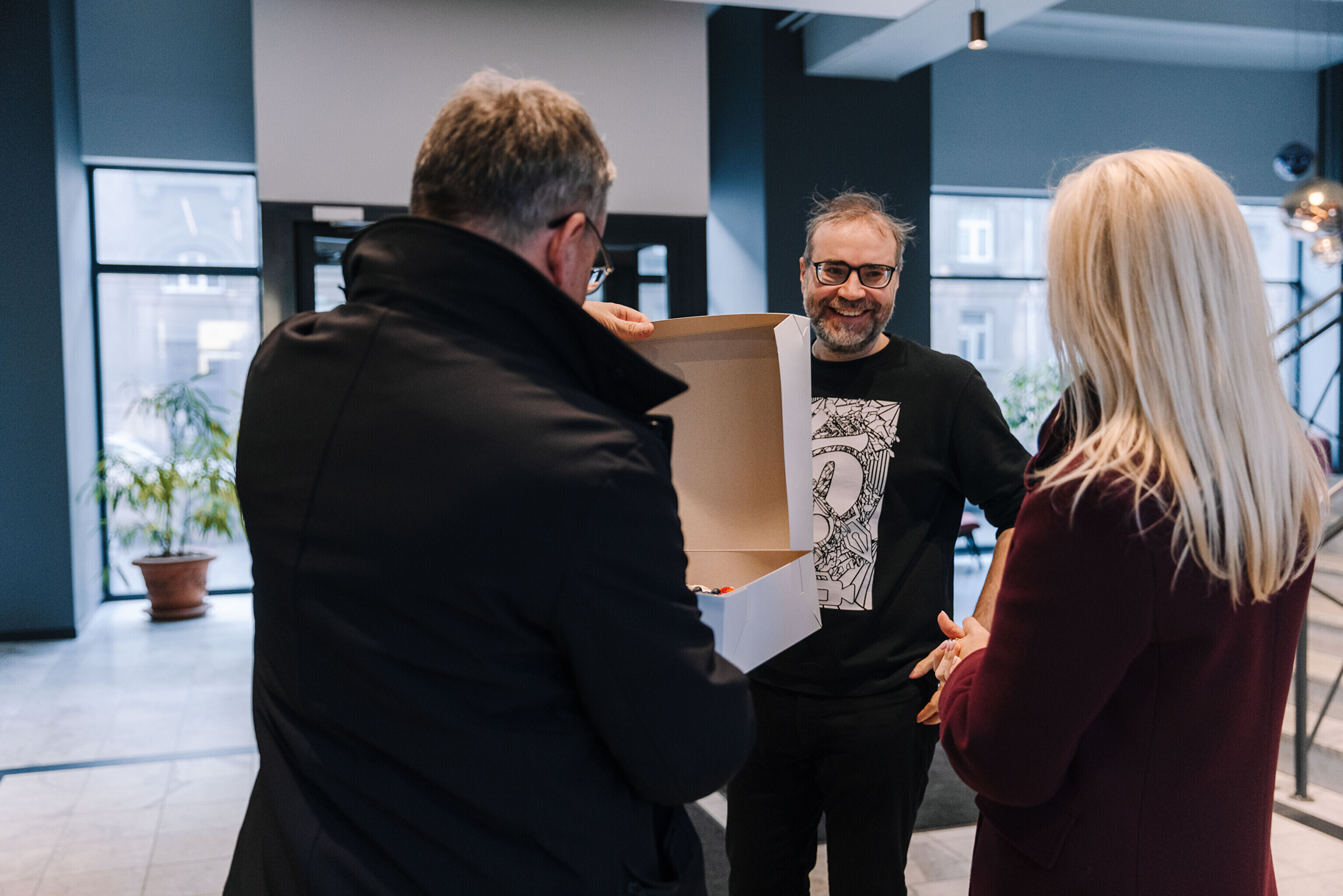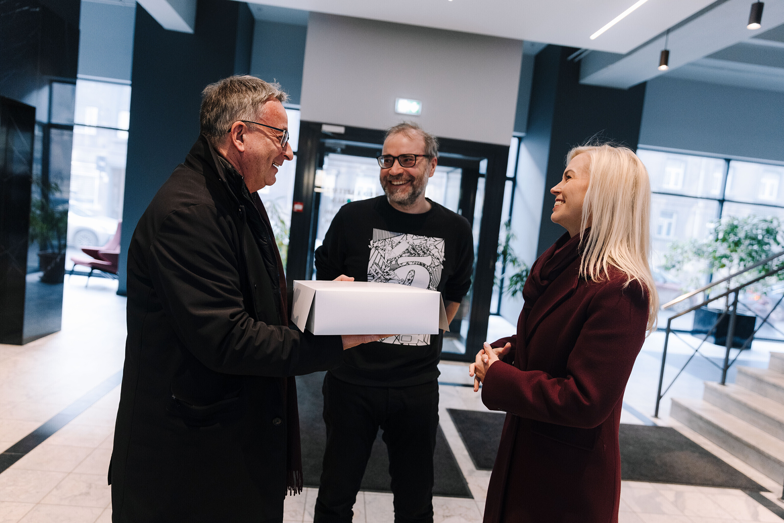 В редакции на Нарвском шоссе Саара и Лассь встретили главный редактор Õhtuleht Мартин Шмутов и главный редактор Delfi Урмо Соонвальд.