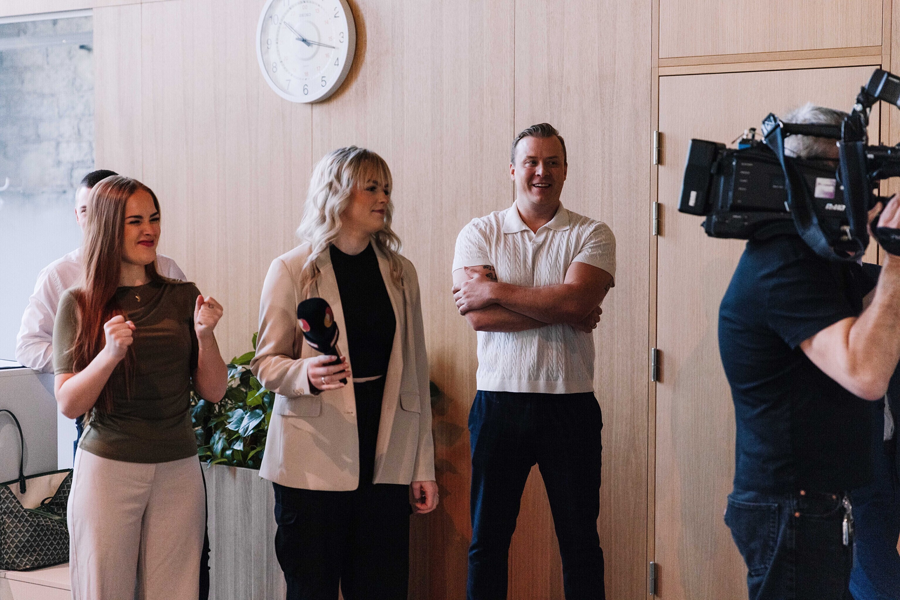 В новостной редакции TV3 гостей из "Актуальной камеры" приветствовали Свен Сойвер и Сирье Эесмаа.