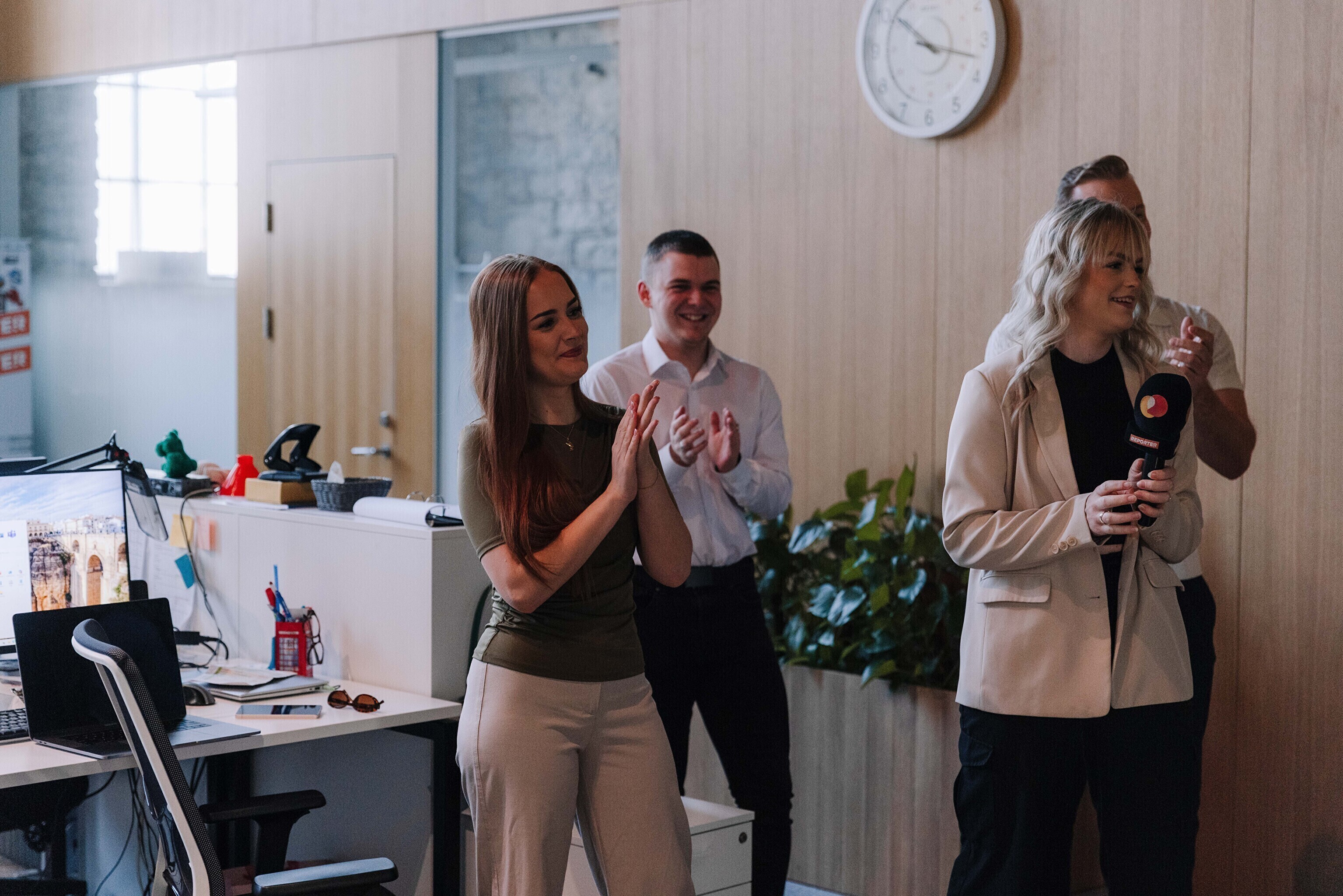 В Kanal 2 юбиляров встретил ведущий программы "Reporter" Тынис Сарап, исполнивший песню.