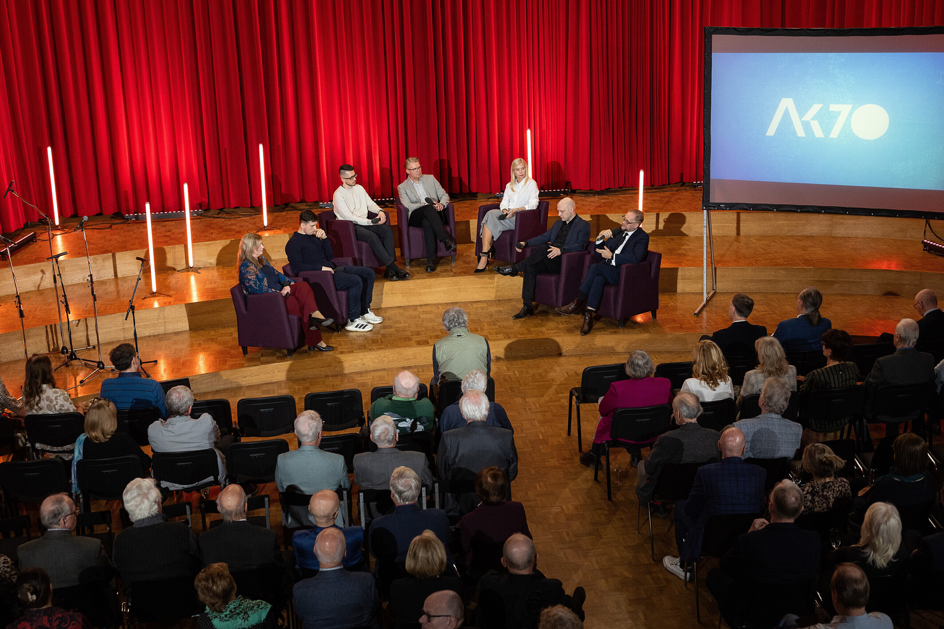 В рамках юбилейного мероприятия состоялась дискуссия журналистов и редакторов, а также совместный просмотр специального выпуска "AK 70. Maailm Eesti silme läbi".