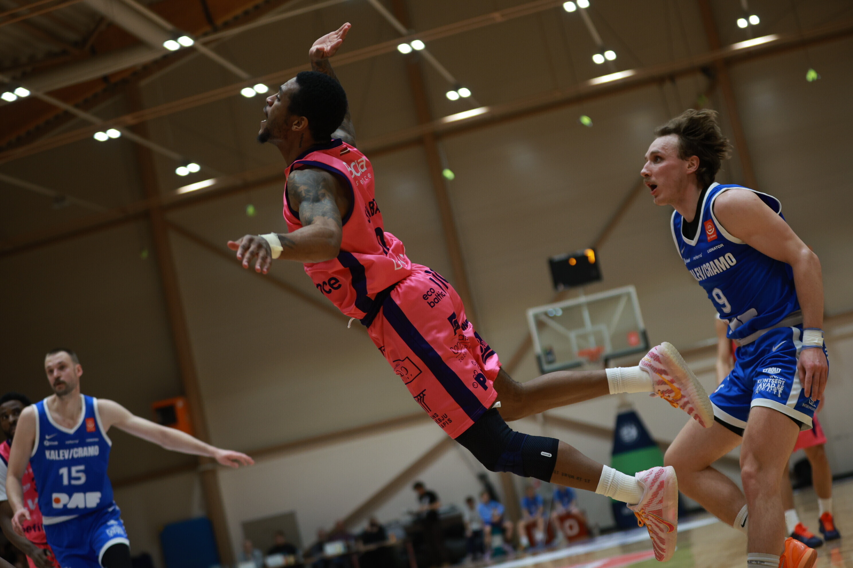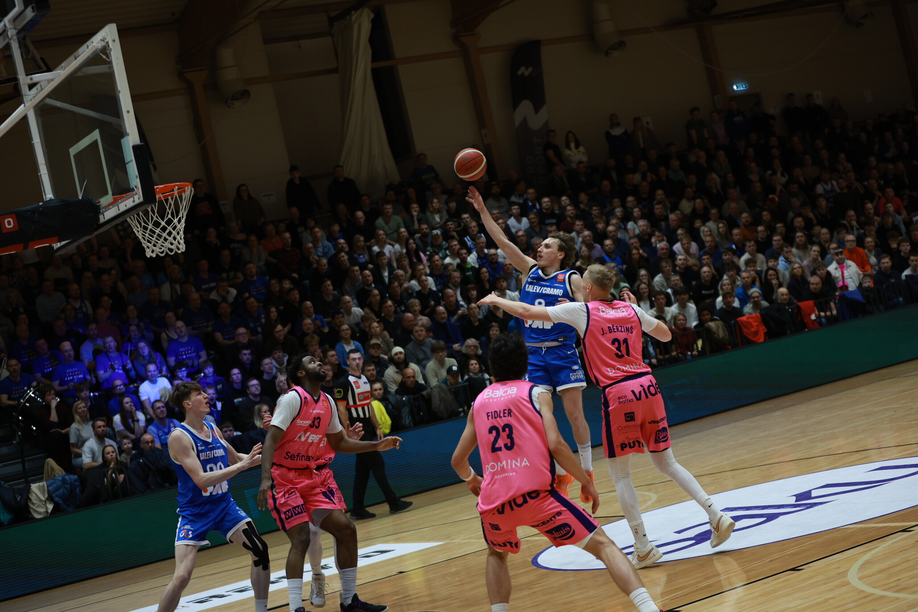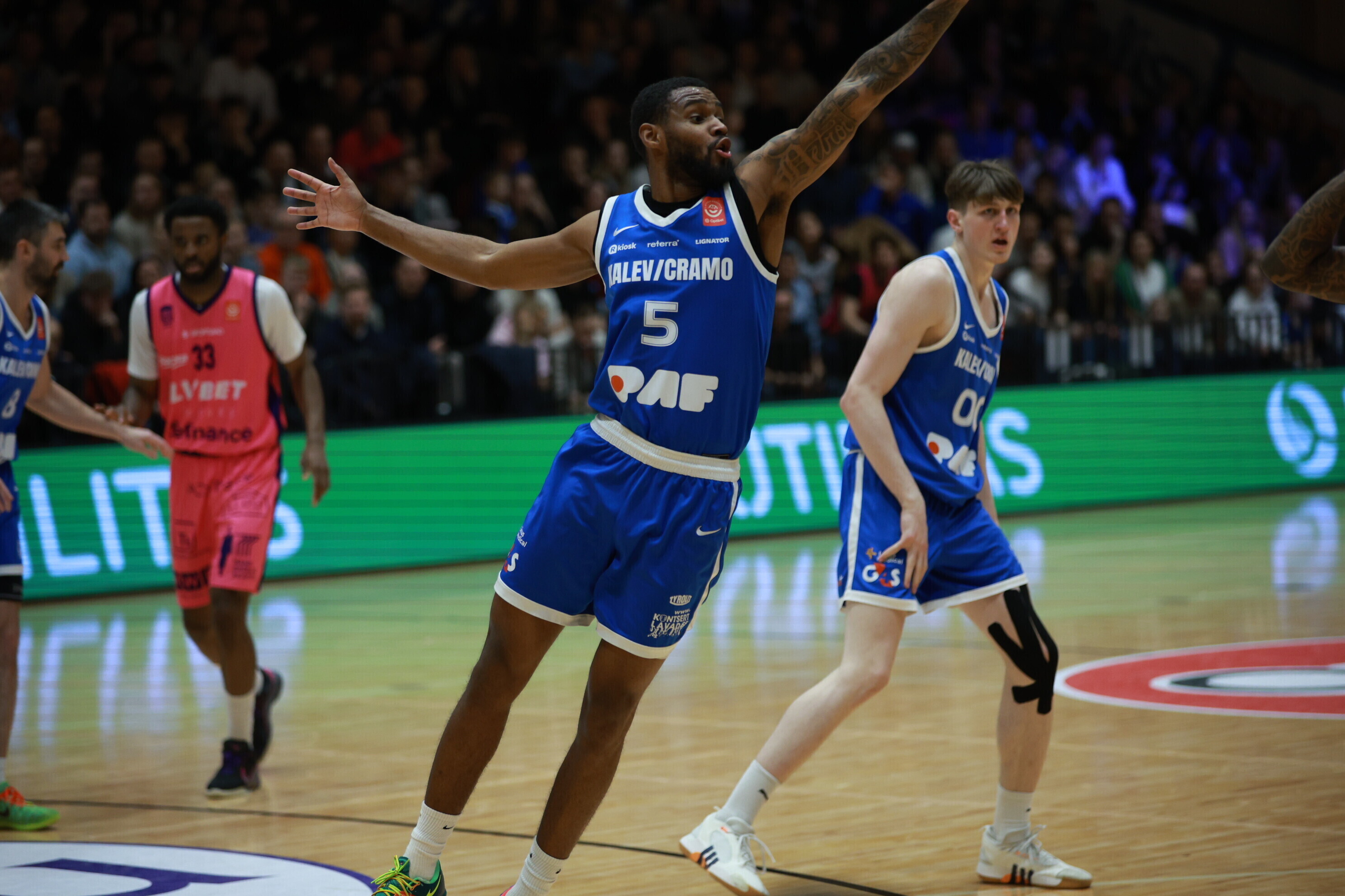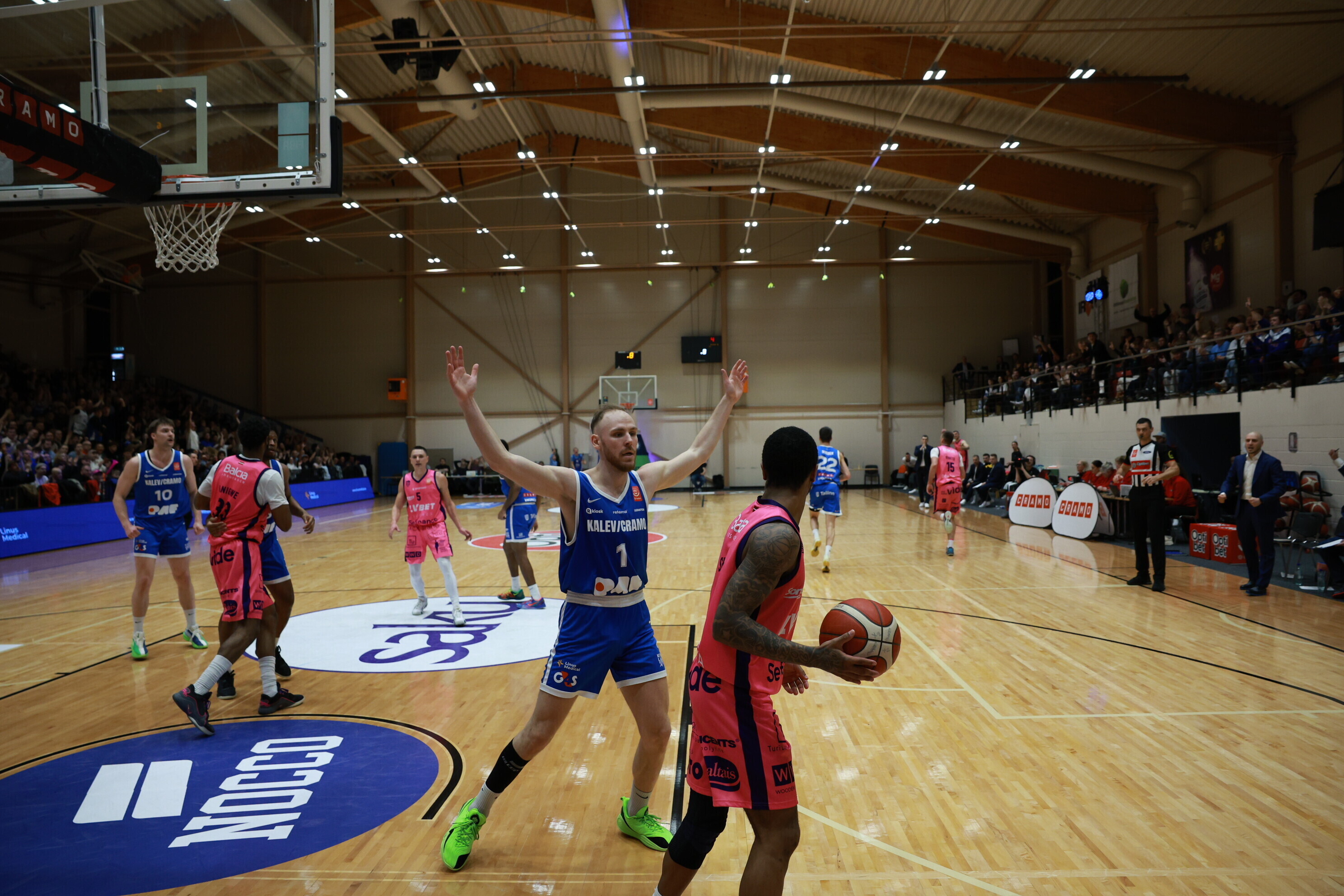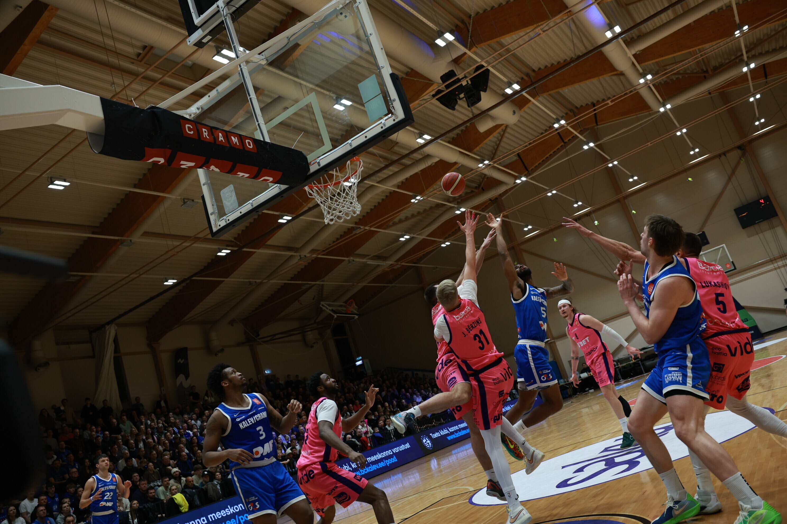Концовка основного времени получилась драматичной. За несколько секунд до сирены гости получили право на два штрафных броска, но не реализовали ни одного из них. В итоге "Калев/Крамо" выстоял - 87:87, а в дополнительное время взял свое, показав отличную реализацию трехочковых бросков.