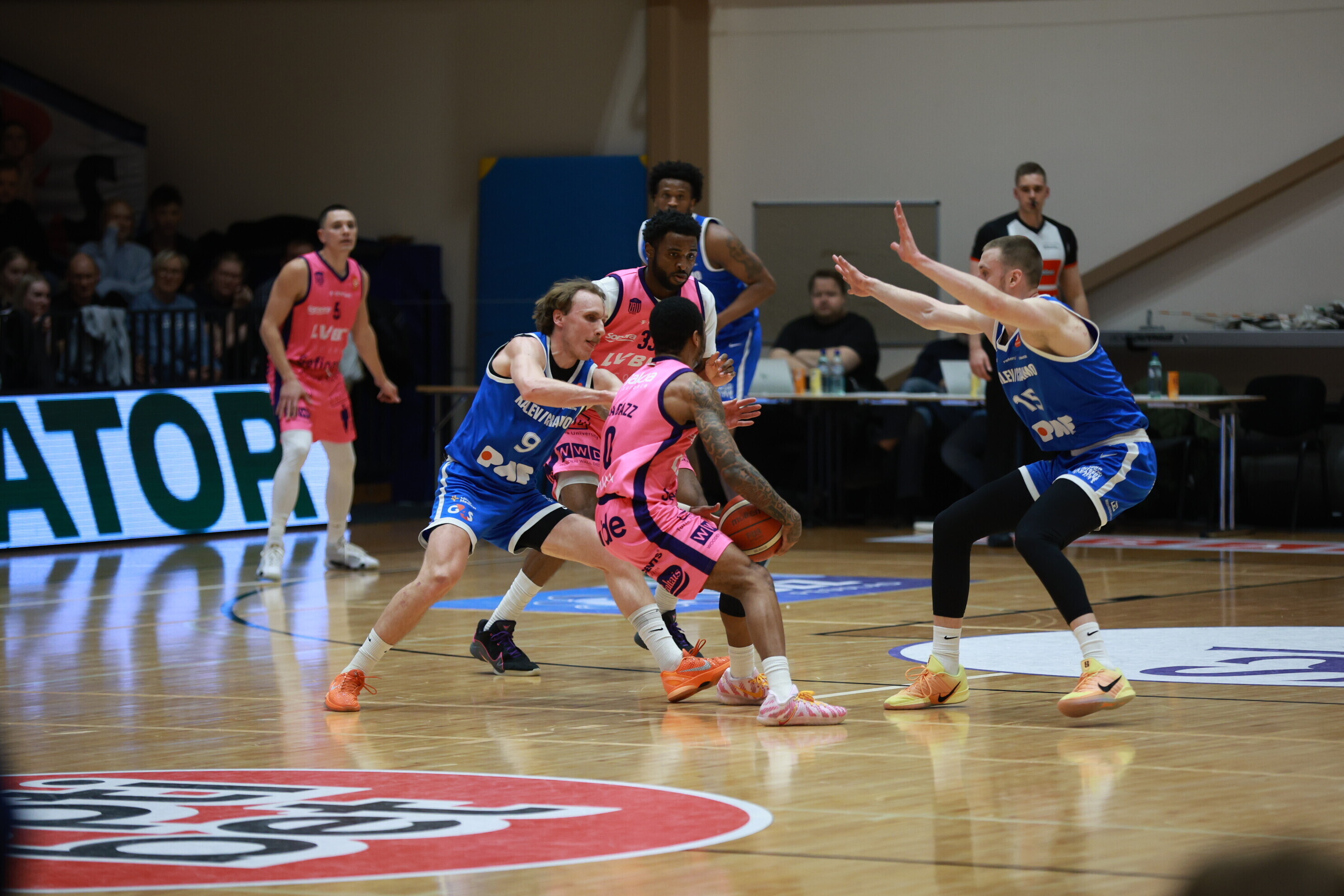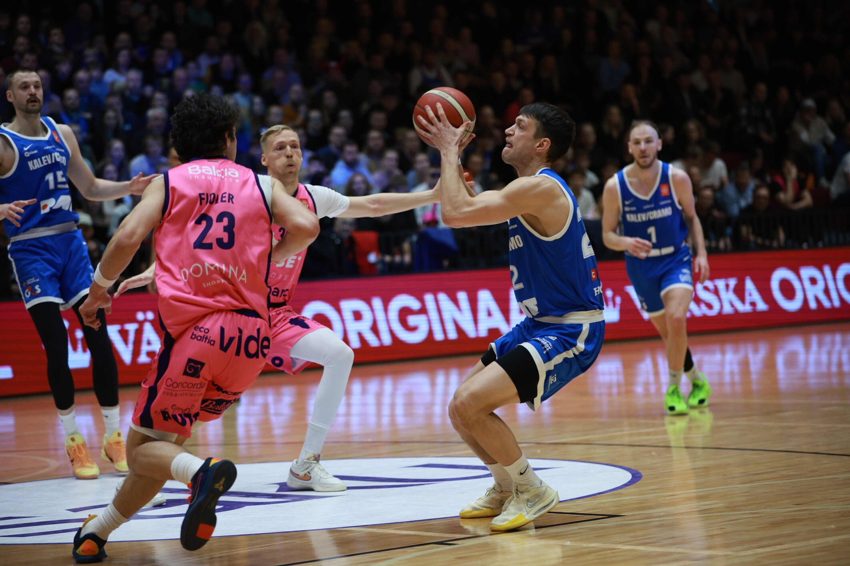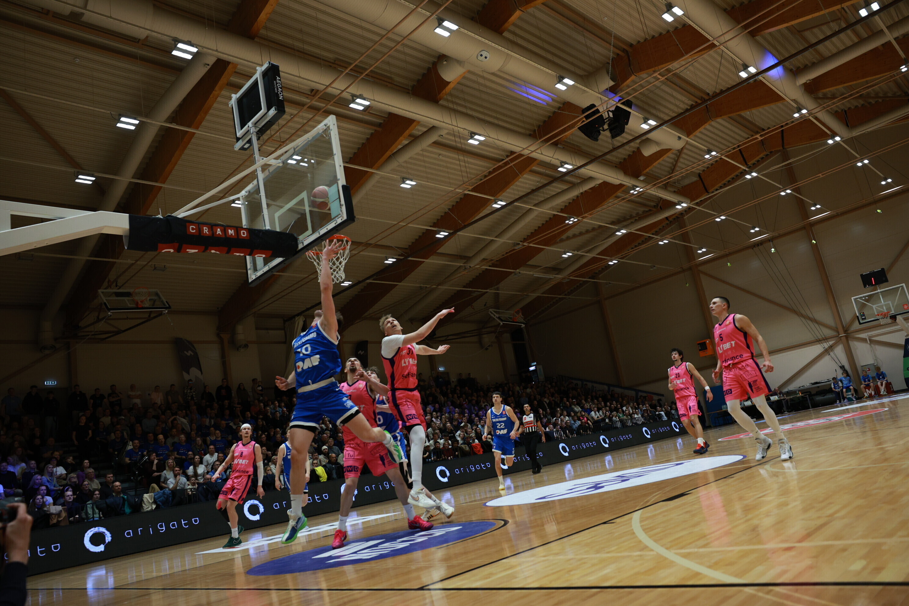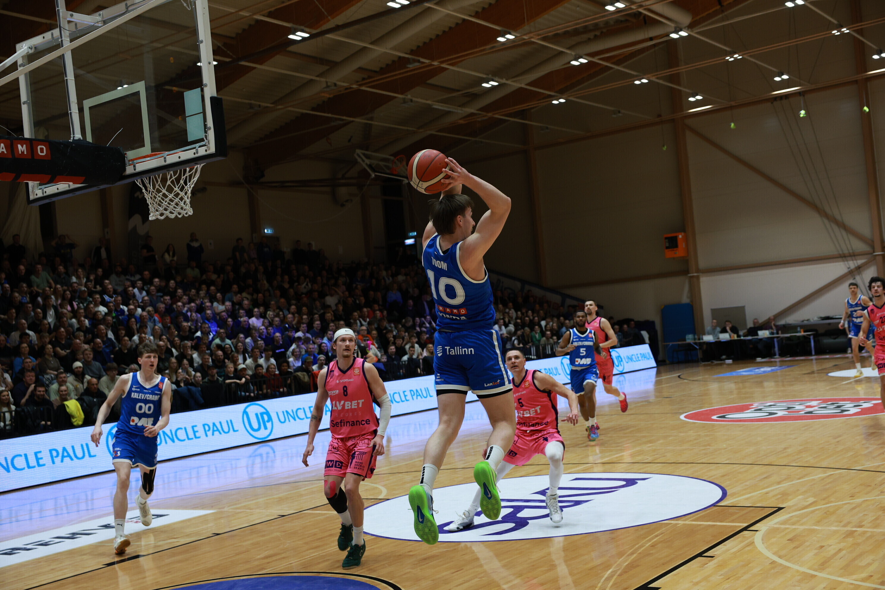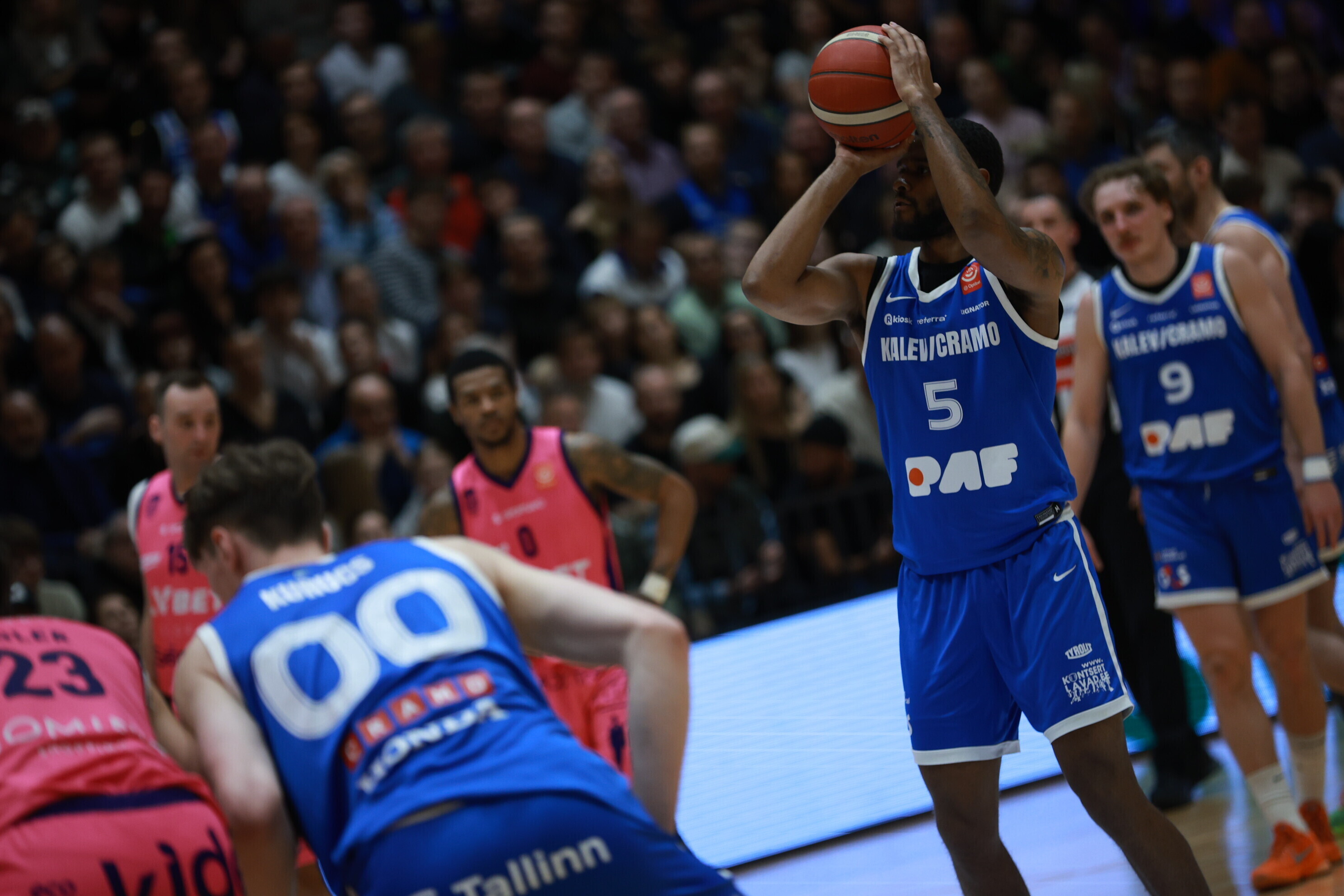 Концовка основного времени получилась драматичной. За несколько секунд до сирены гости получили право на два штрафных броска, но не реализовали ни одного из них. В итоге "Калев/Крамо" выстоял - 87:87, а в дополнительное время взял свое, показав отличную реализацию трехочковых бросков.