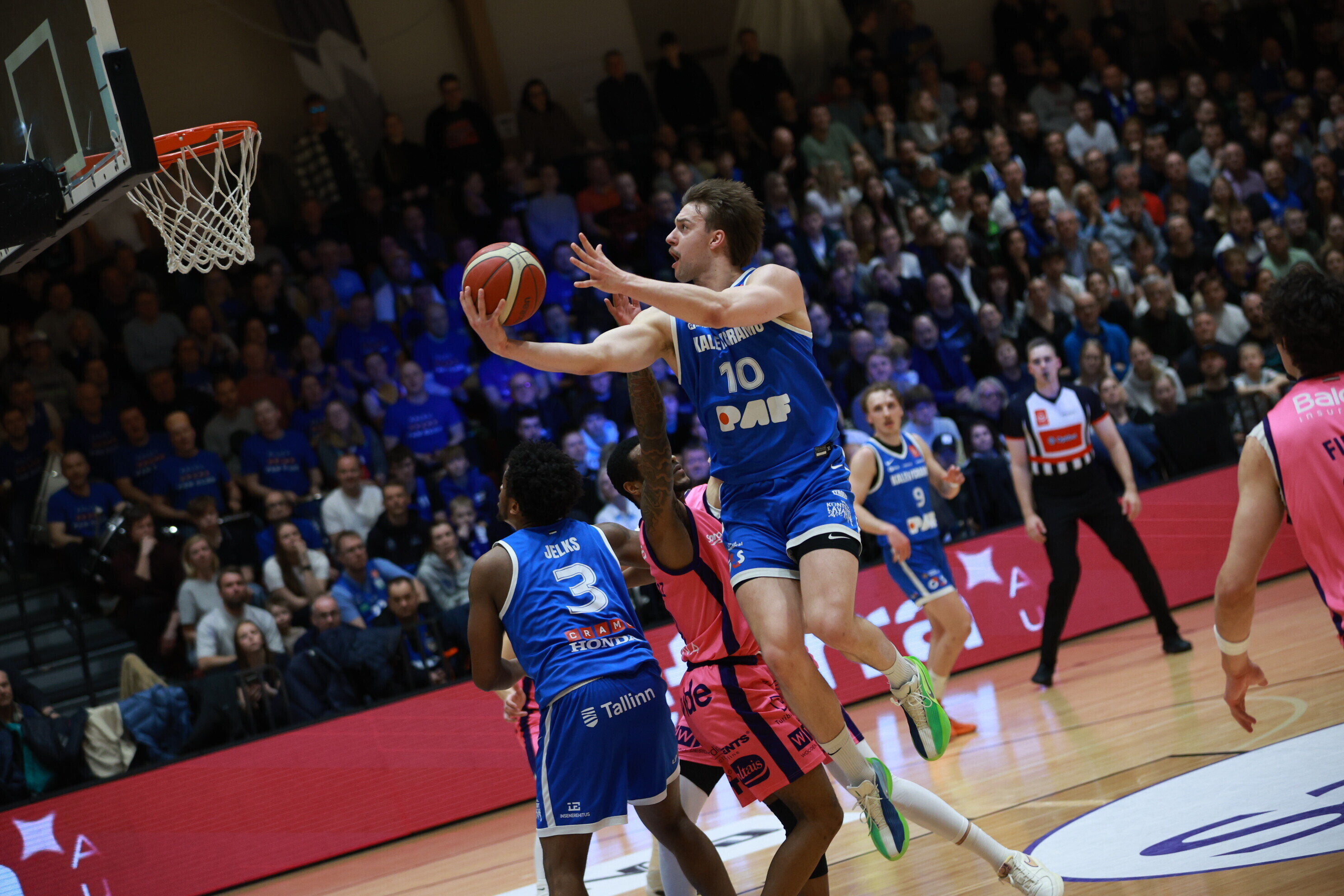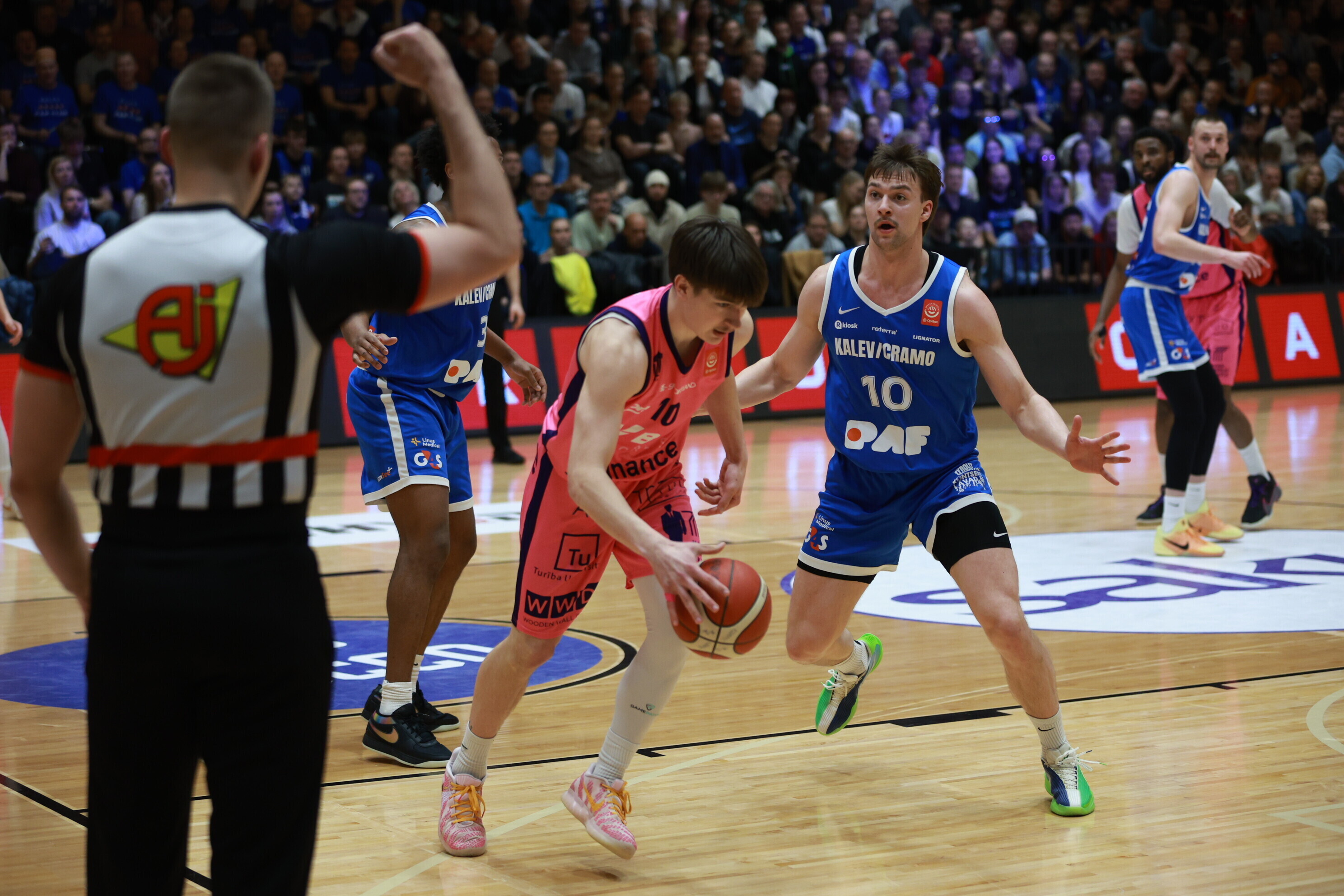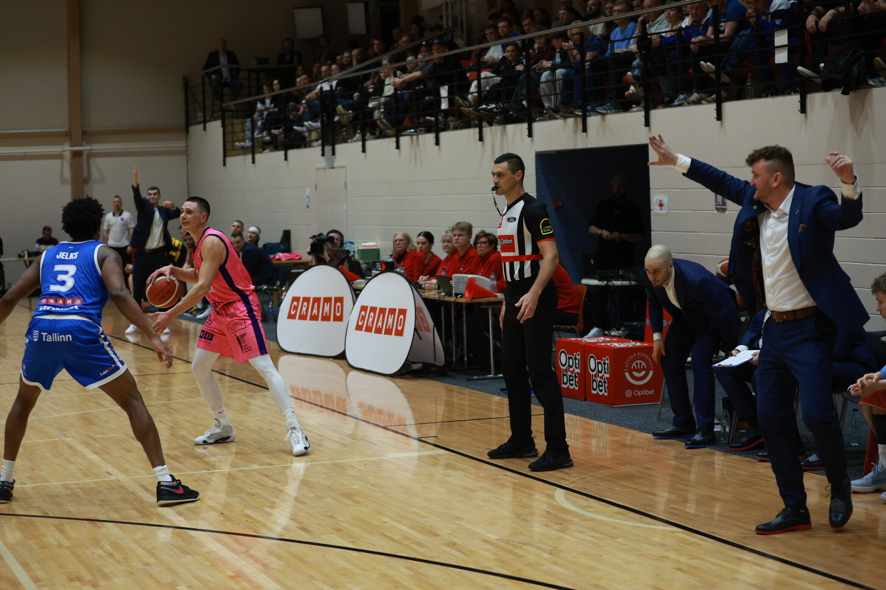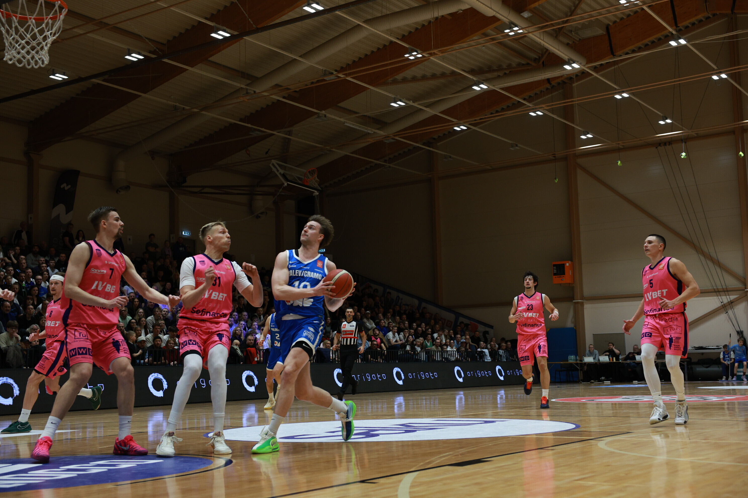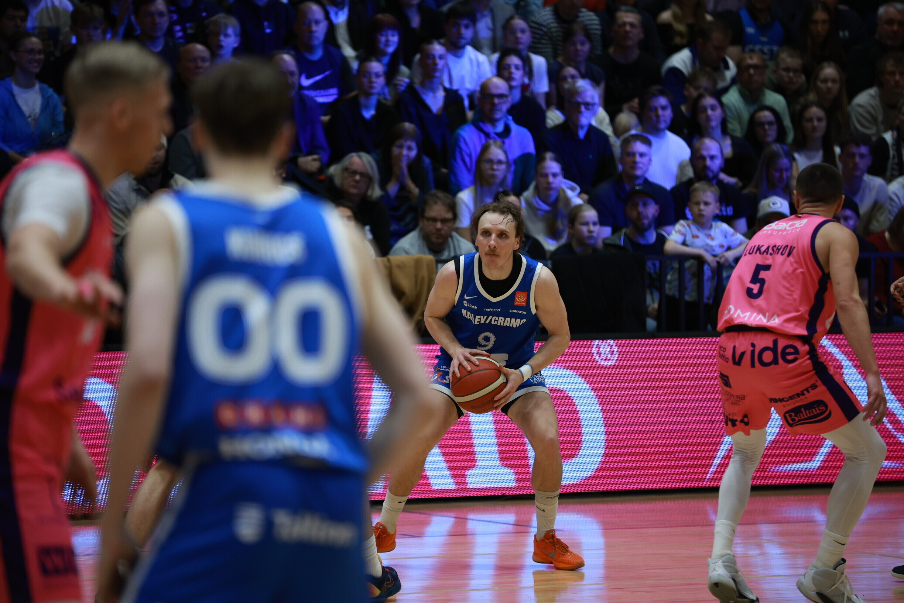 Концовка основного времени получилась драматичной. За несколько секунд до сирены гости получили право на два штрафных броска, но не реализовали ни одного из них. В итоге "Калев/Крамо" выстоял - 87:87, а в дополнительное время взял свое, показав отличную реализацию трехочковых бросков.