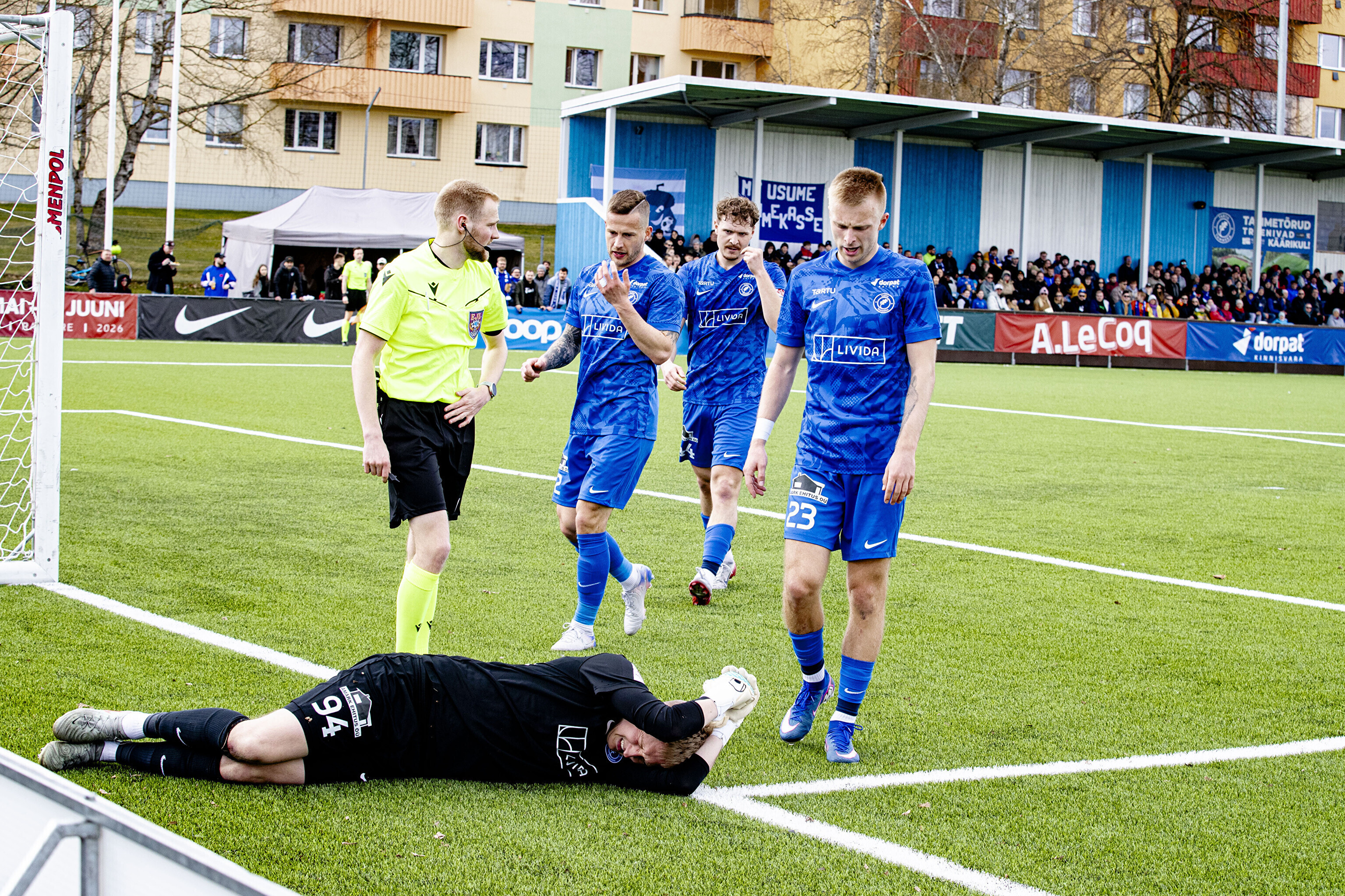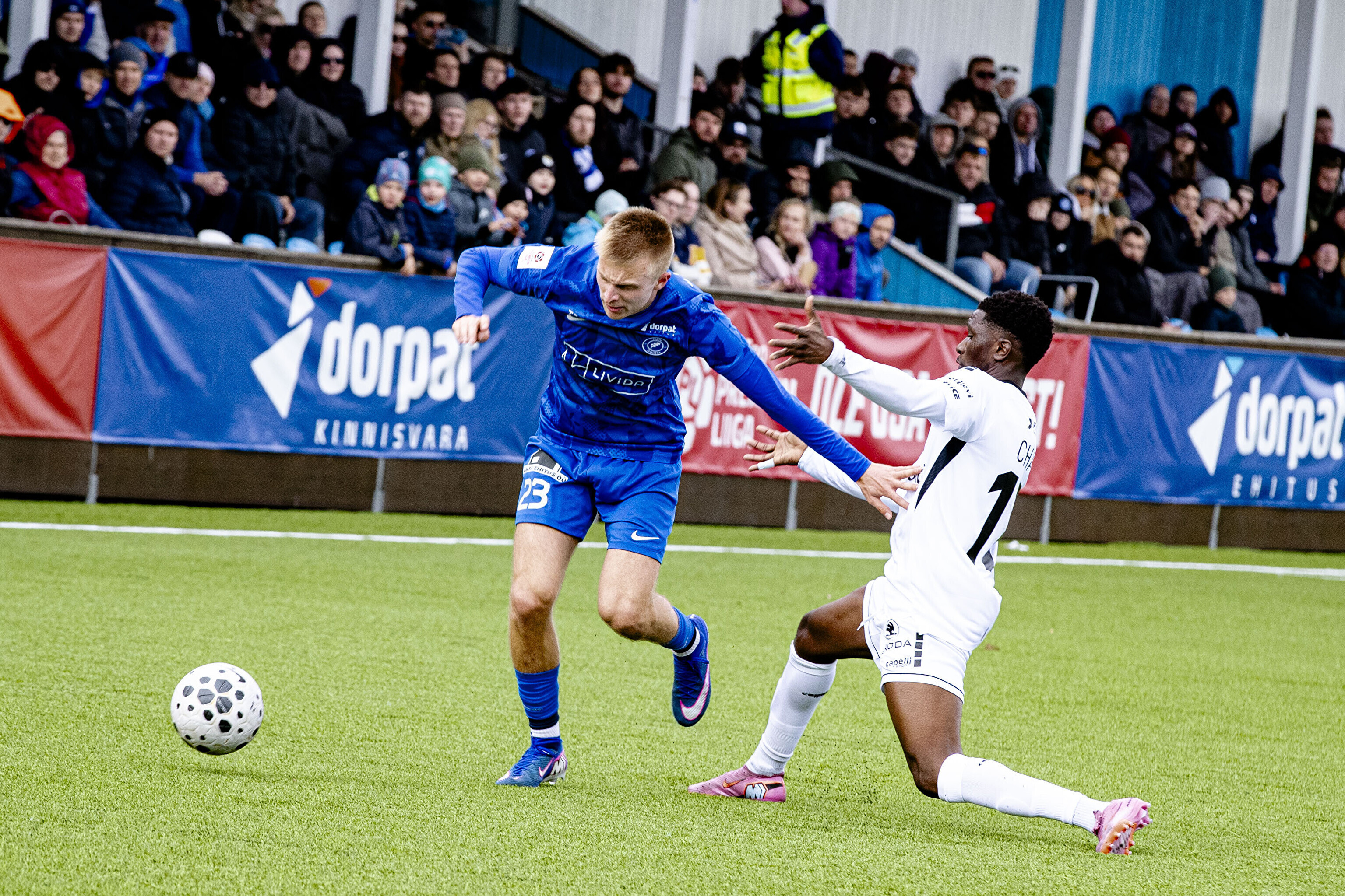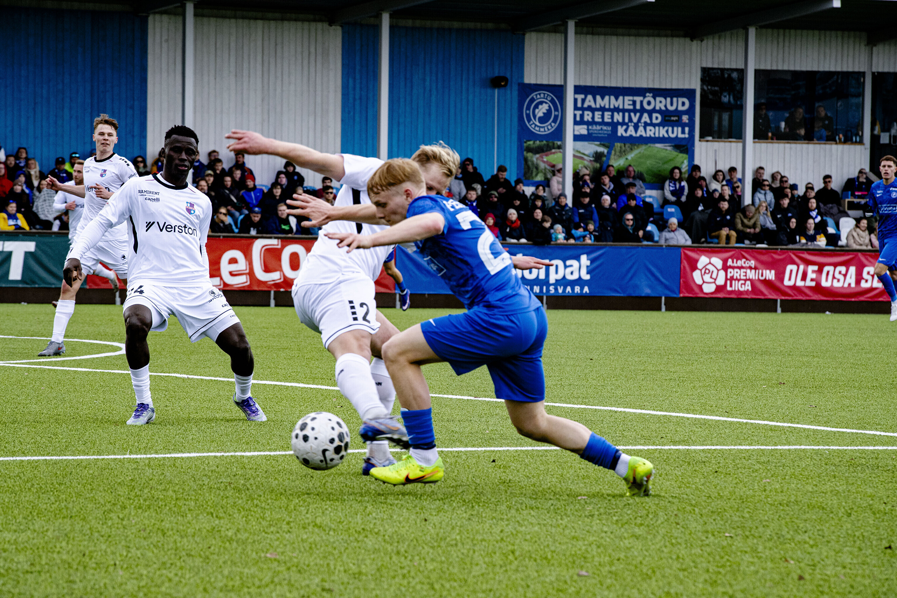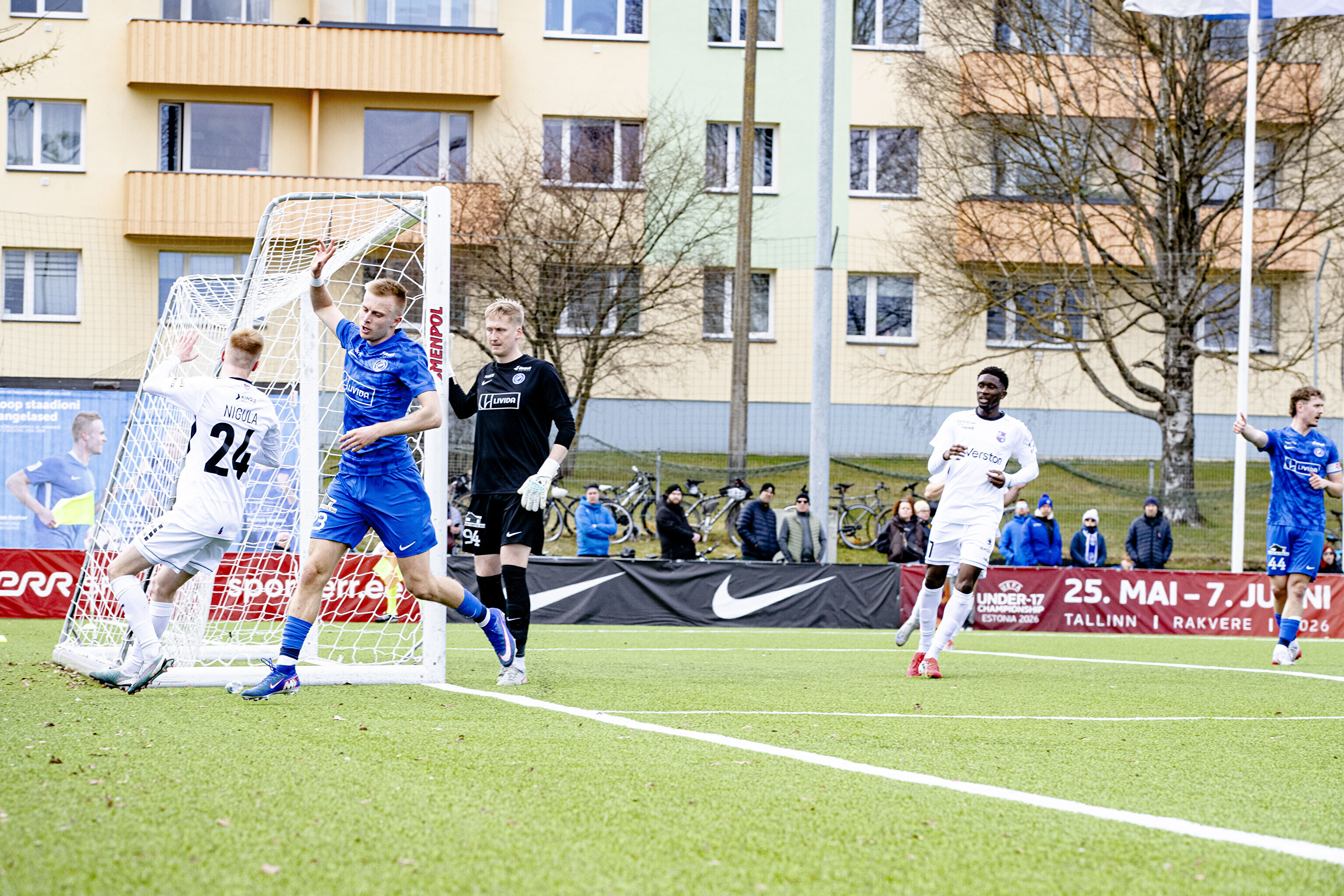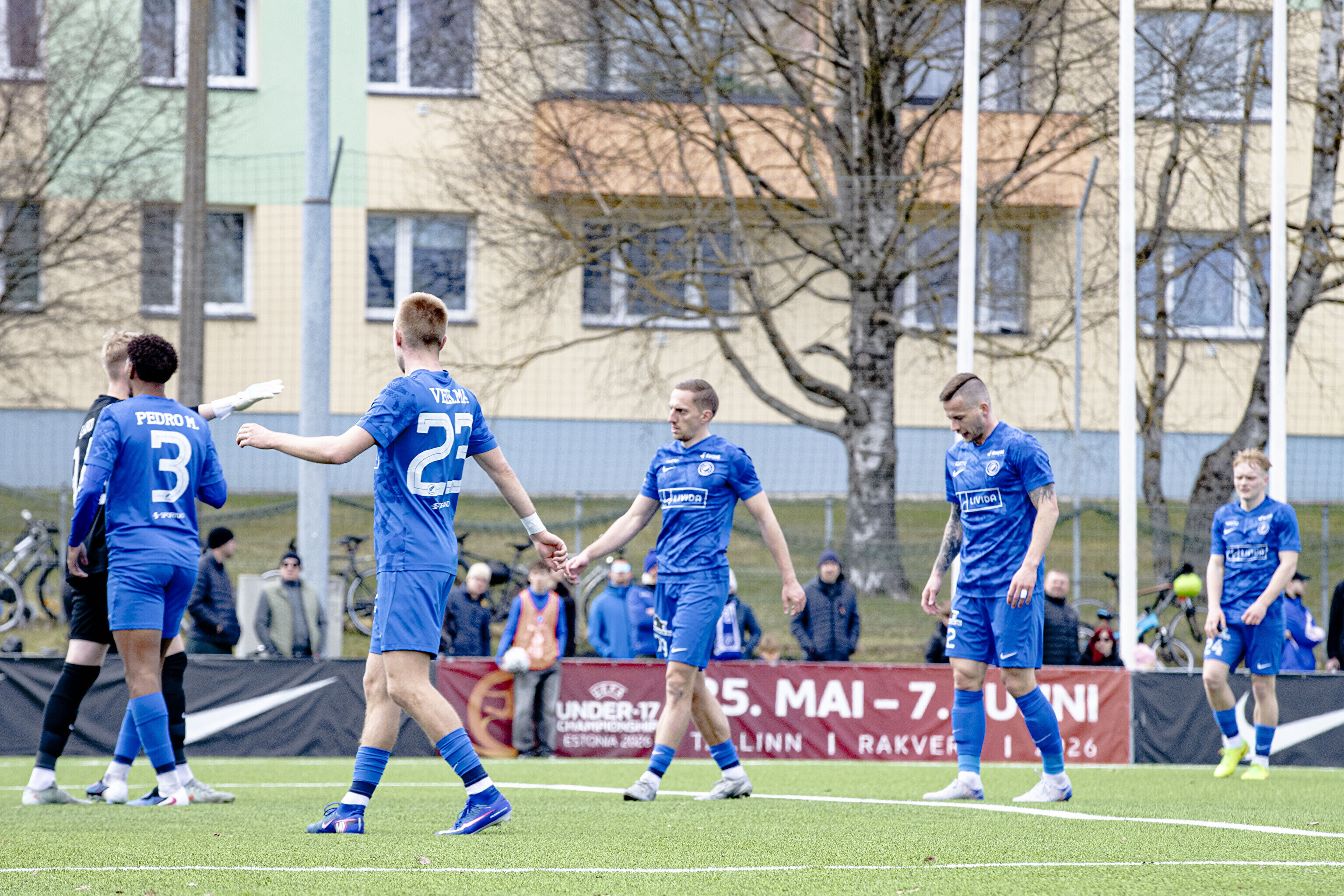 В первом тайме пайдесцы забили три безответных гола - дублем отметился Моду Сона, а незадолго до перерыва отличился Ромет Нигула.