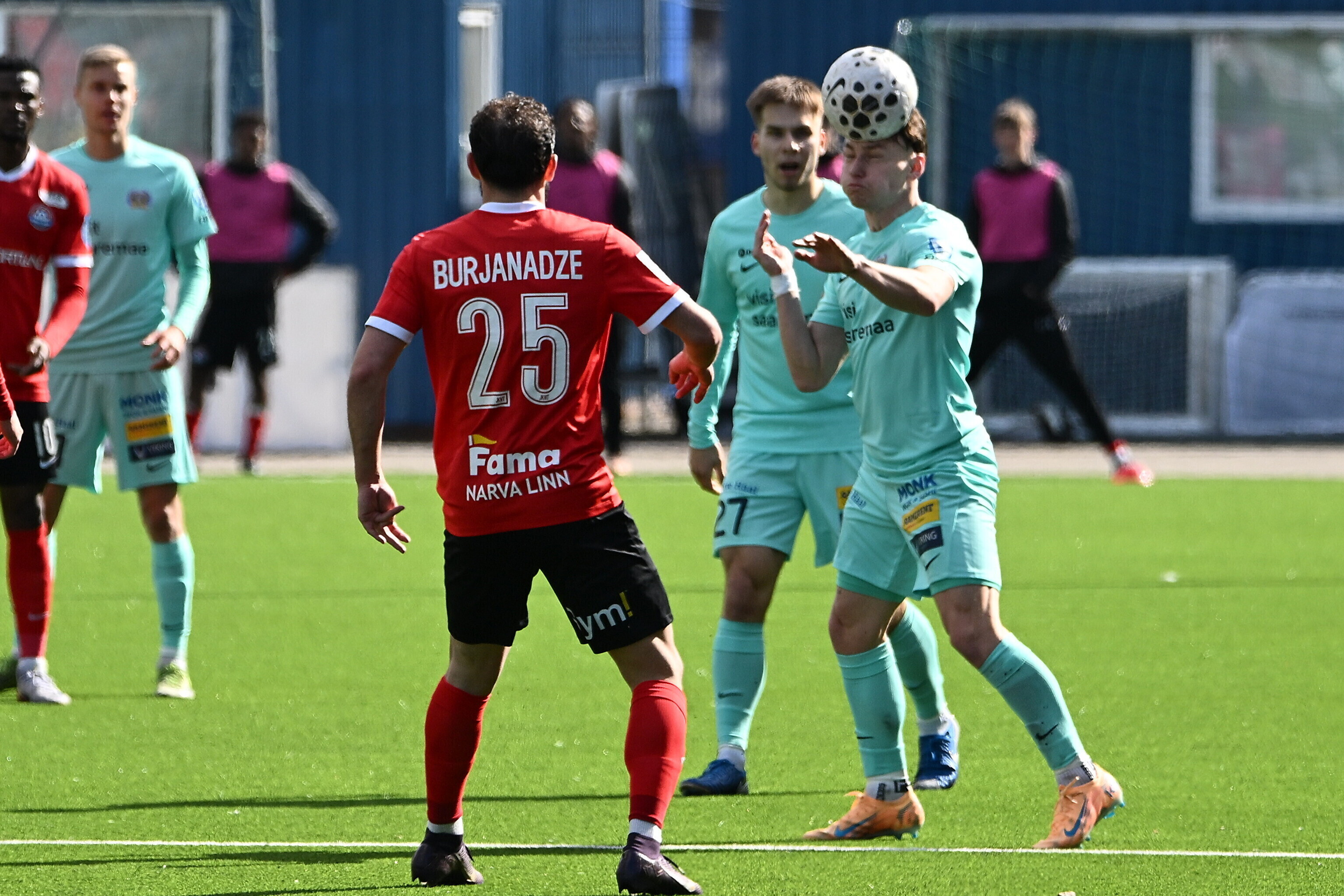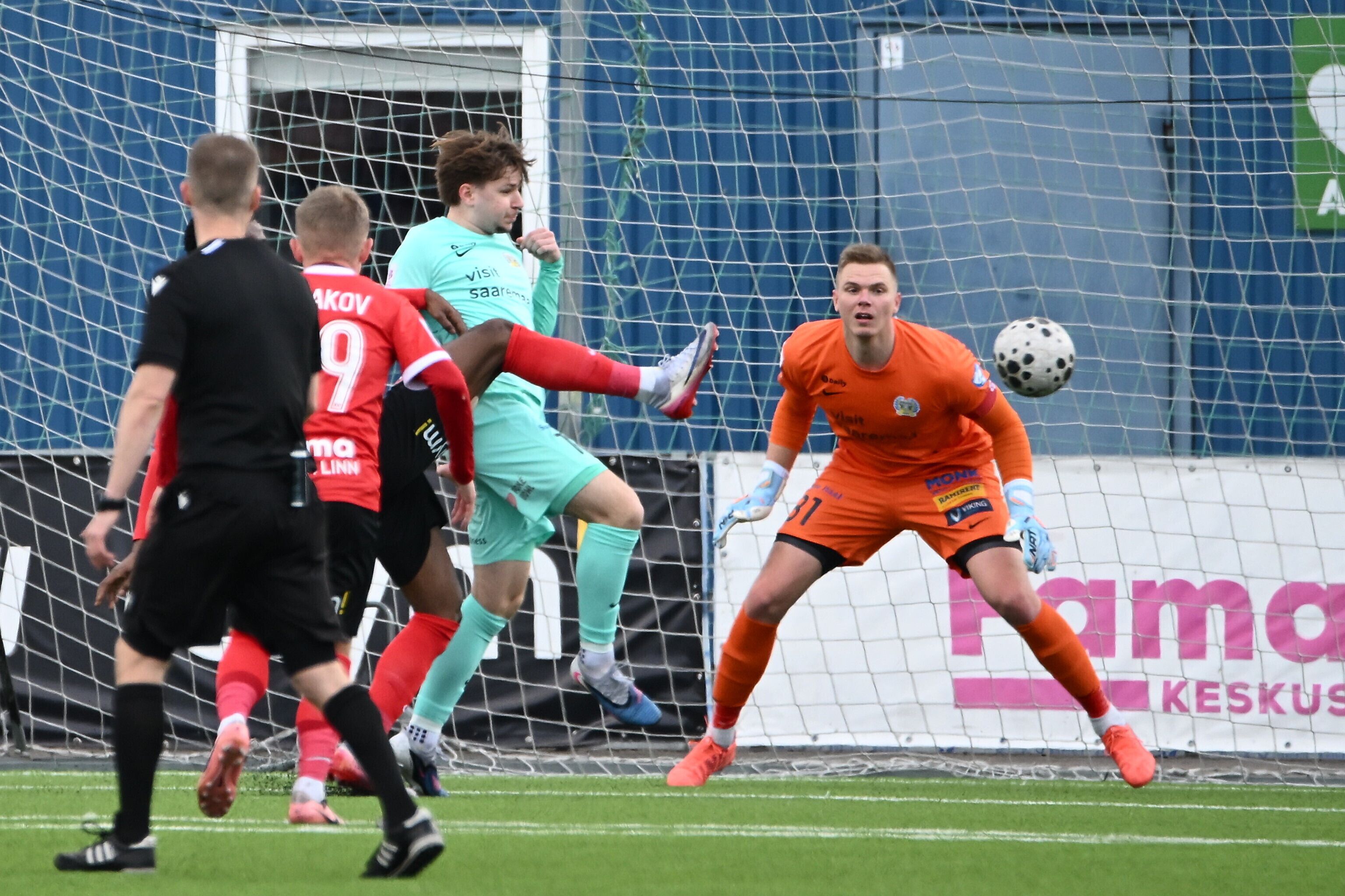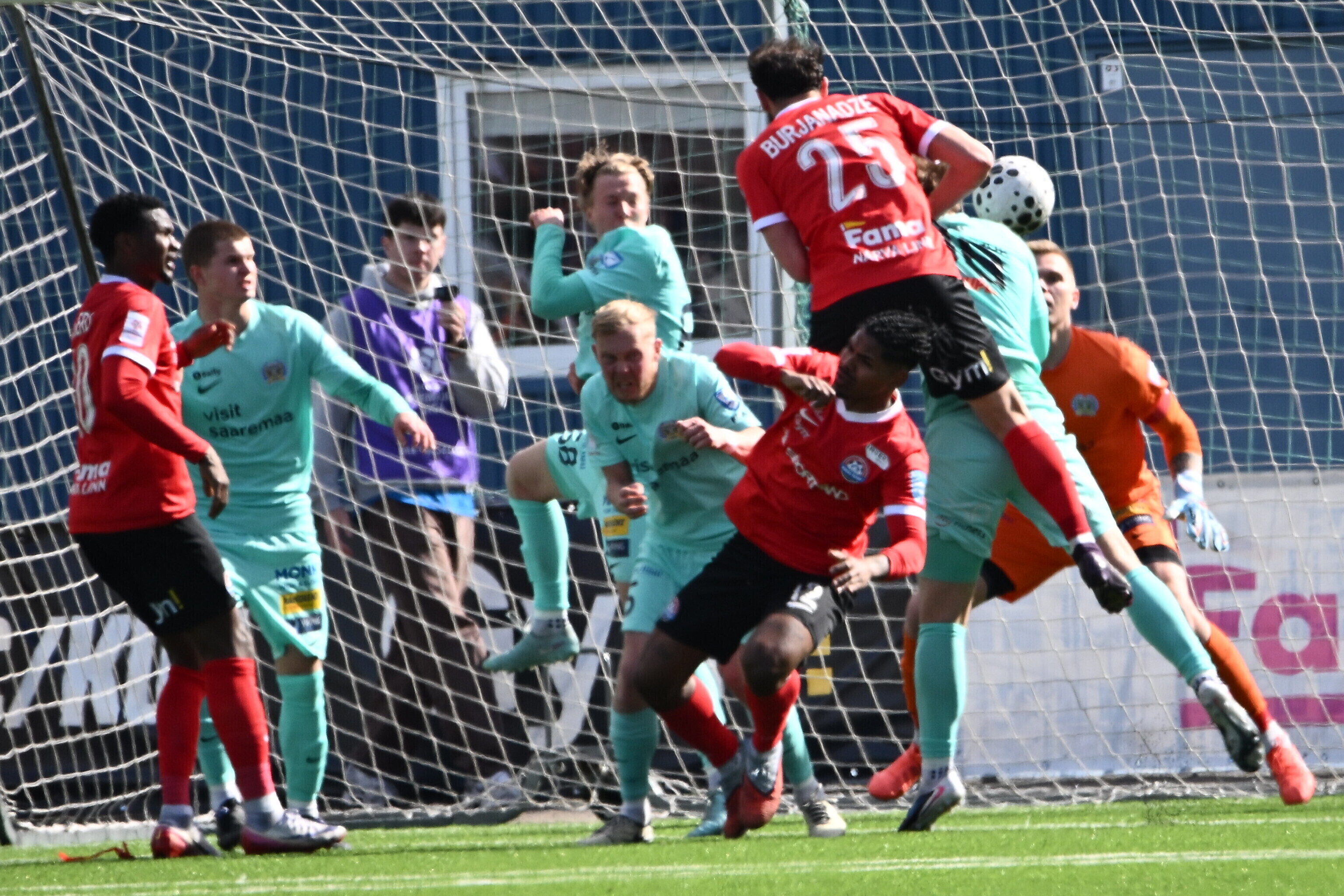 Счет в поединке, прошедшем на стадионе "Калев-Фама", на 15-й минуте открыл футболист гостей Андеро Киви, который воспользовался разрезающим пасом в штрафную. Незадолго до перерыва хозяева отыгрались: после розыгрыша углового Шалва Буржанадзе точным ударом головы замкнул навес.
