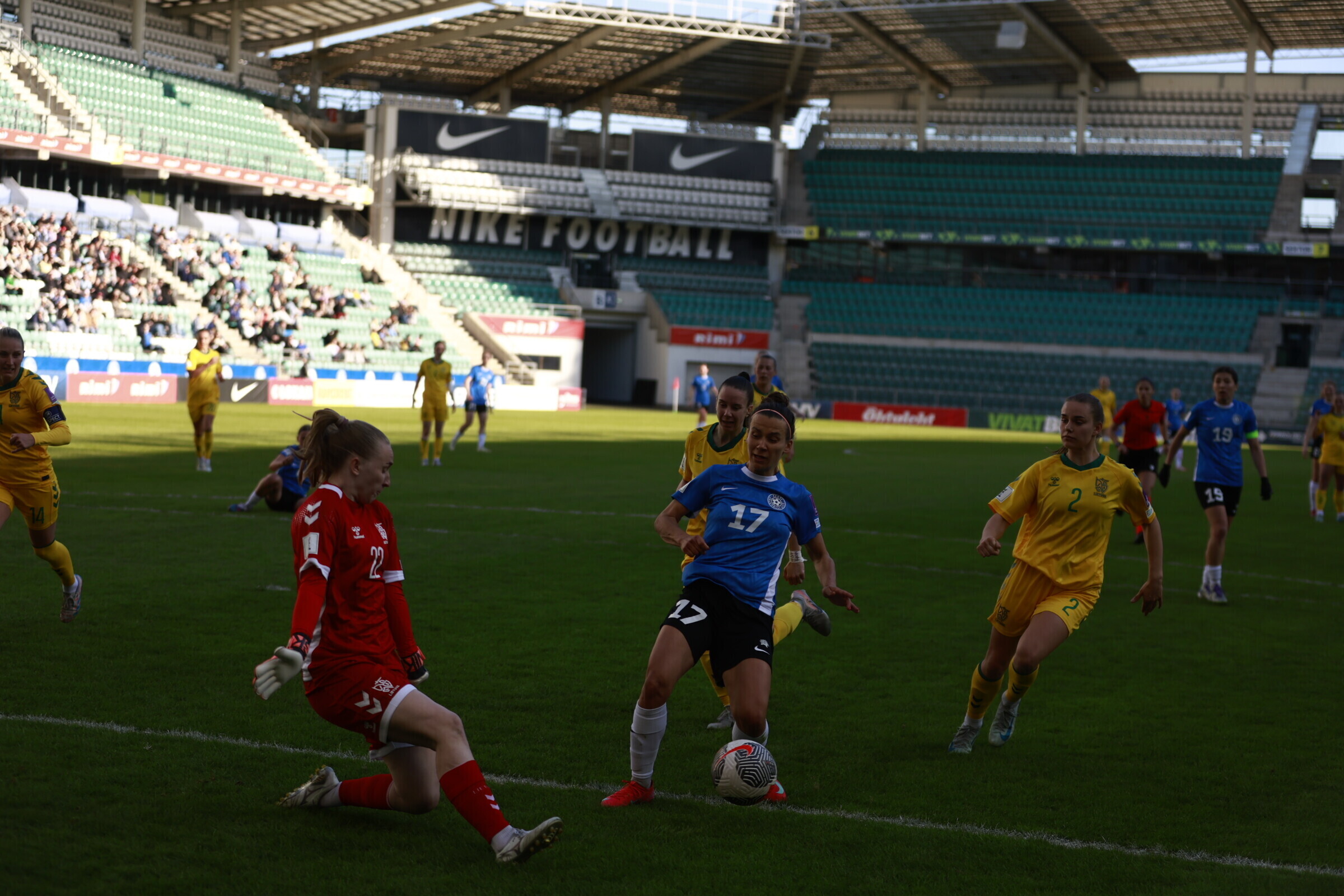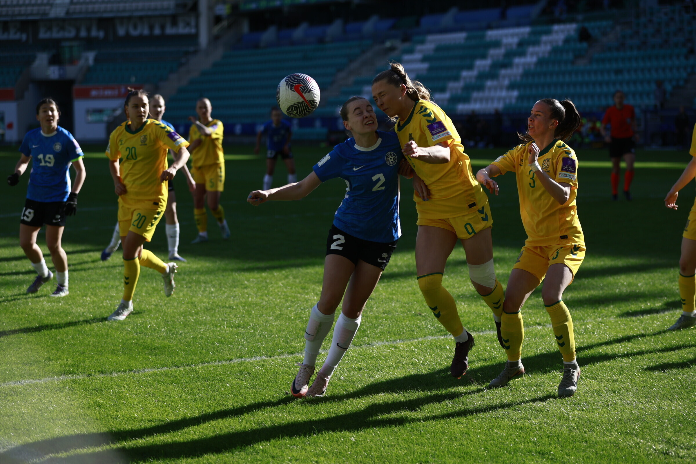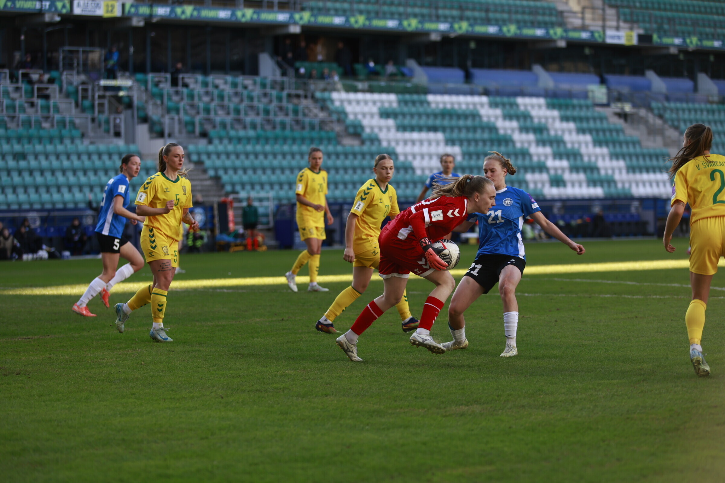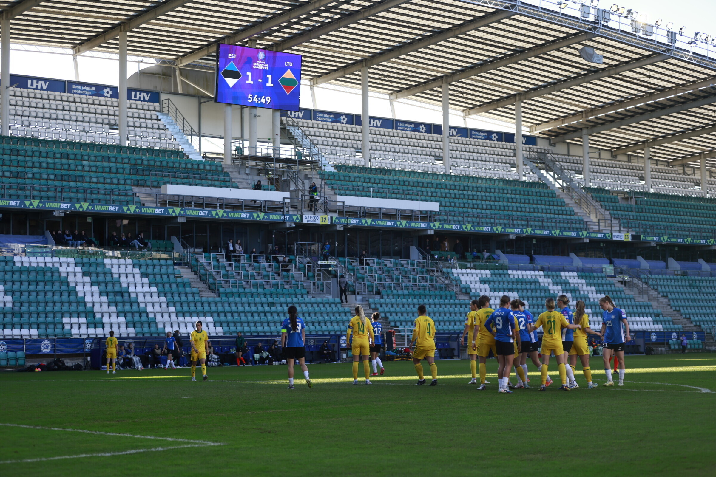 В субботу, 18 апреля, на таллиннской "А. Ле Кок Арене" состоялся драматичный матч отборочного турнира чемпионата мира по футболу среди женщин, в котором сборная Эстонии принимала команду Литвы. Хозяйки поля вырвали победу в компенсированное время со счетом 2:1.