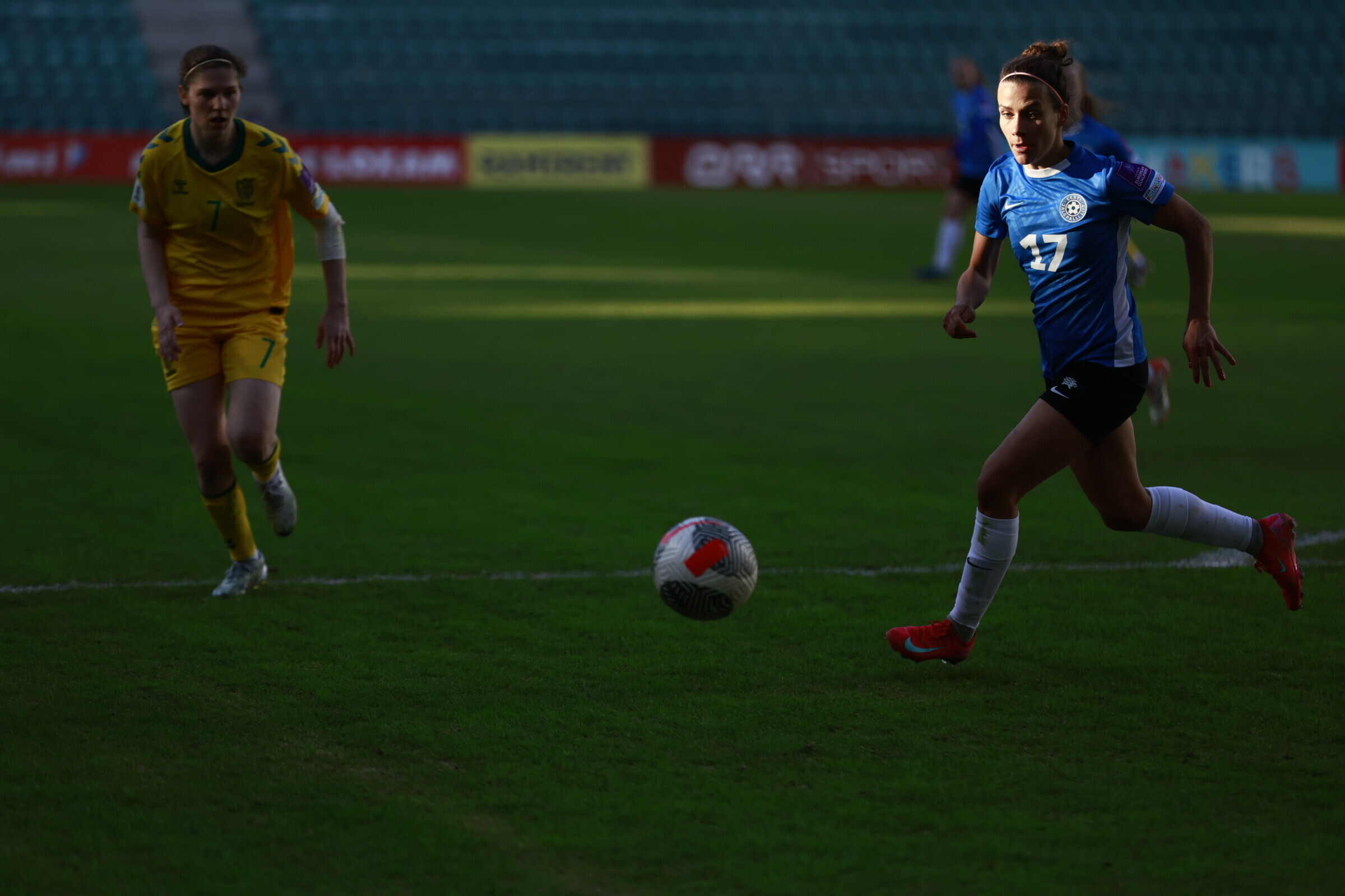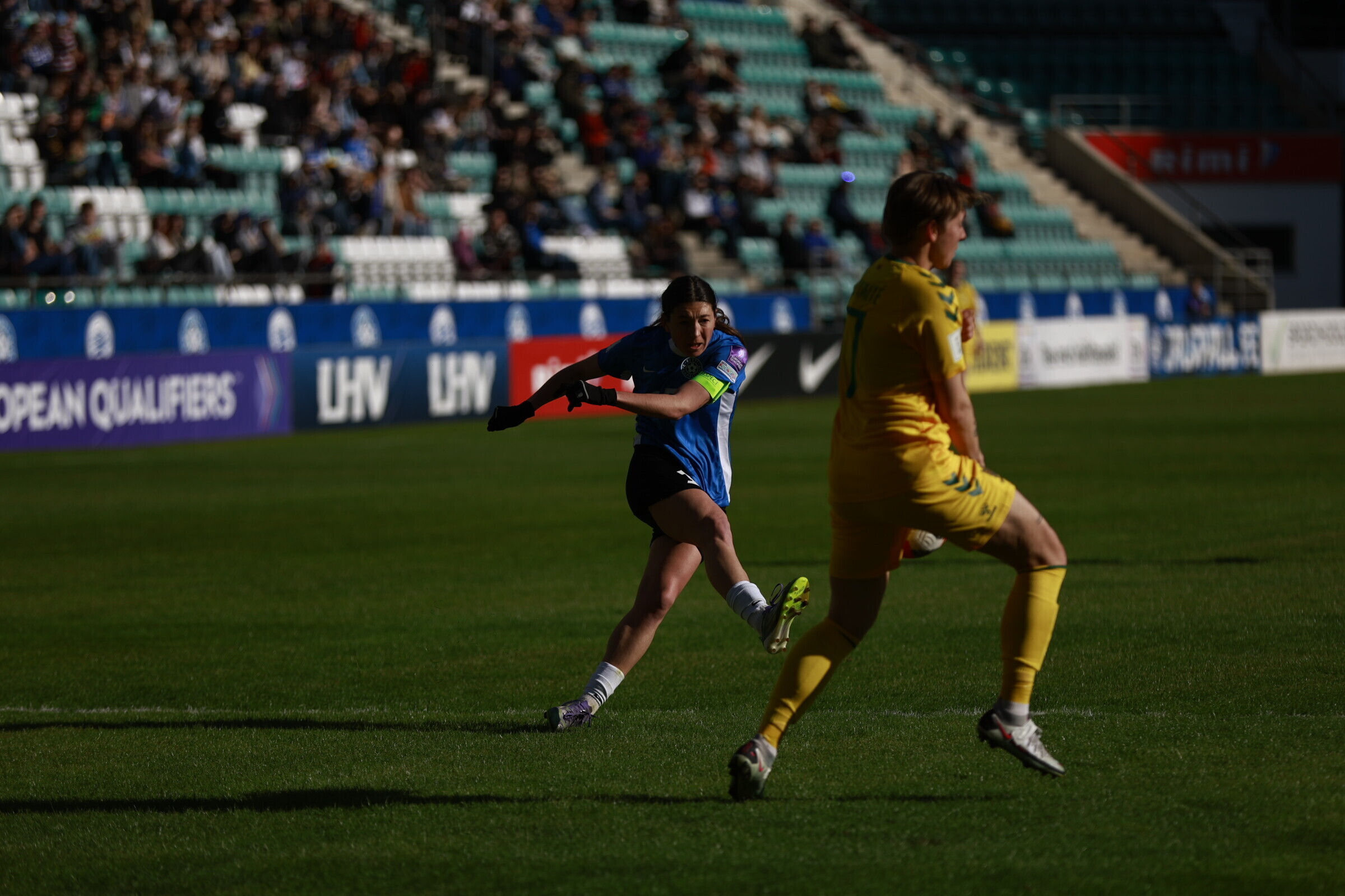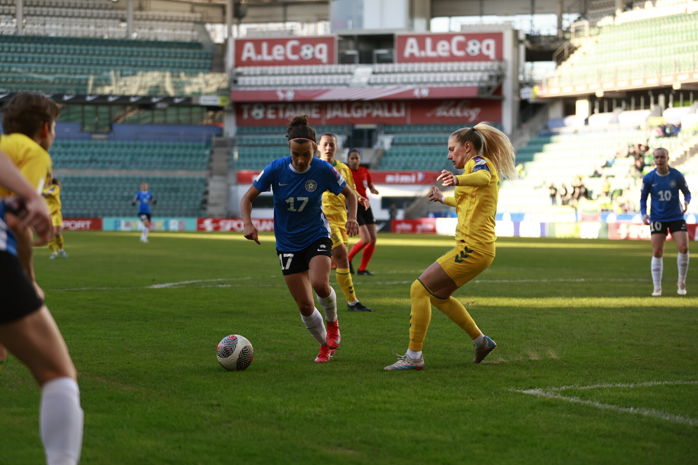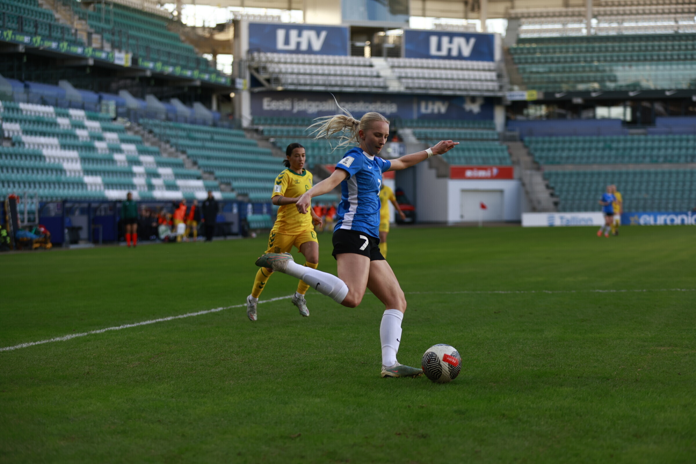 В субботу, 18 апреля, на таллиннской "А. Ле Кок Арене" состоялся драматичный матч отборочного турнира чемпионата мира по футболу среди женщин, в котором сборная Эстонии принимала команду Литвы. Хозяйки поля вырвали победу в компенсированное время со счетом 2:1.