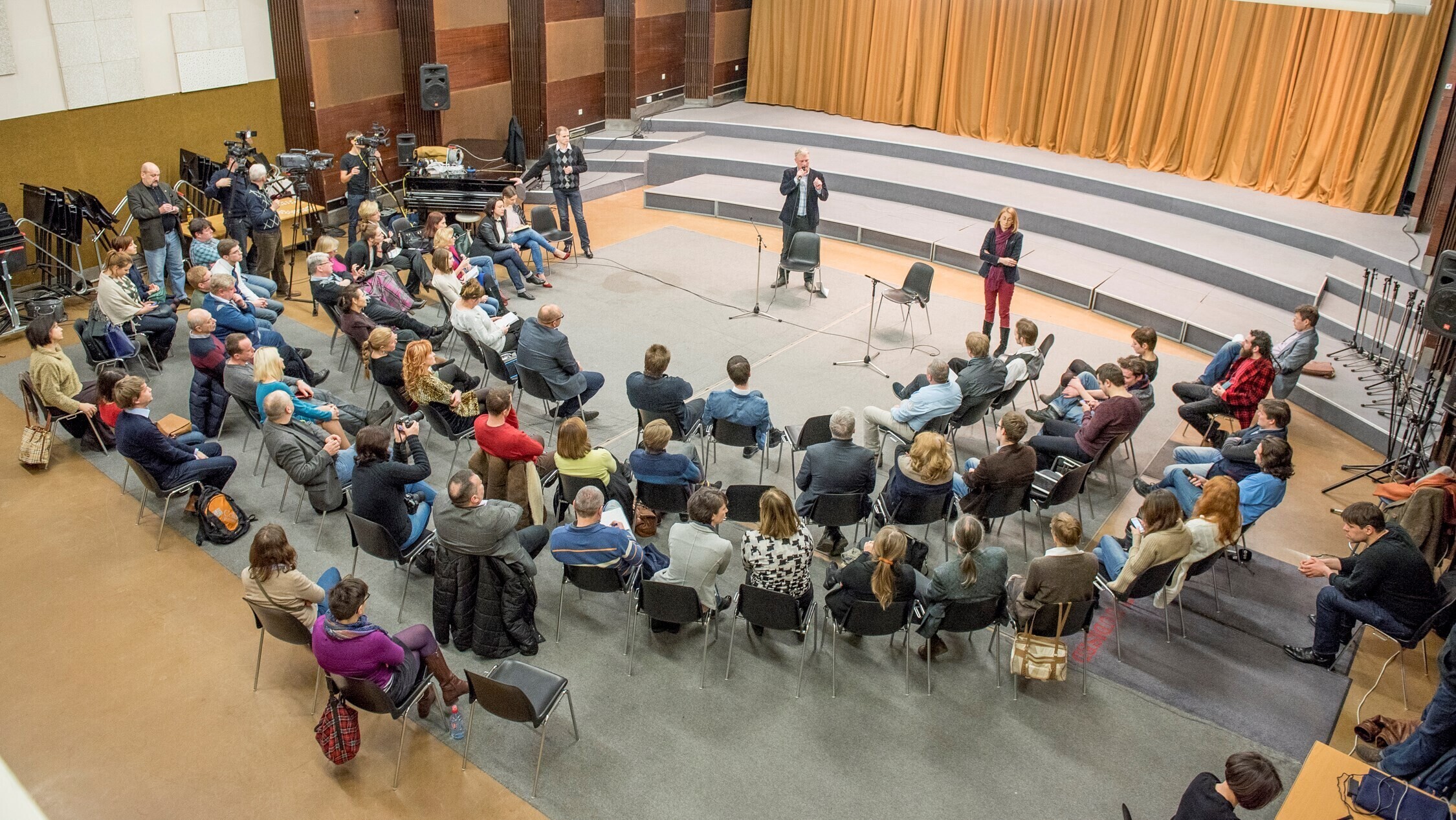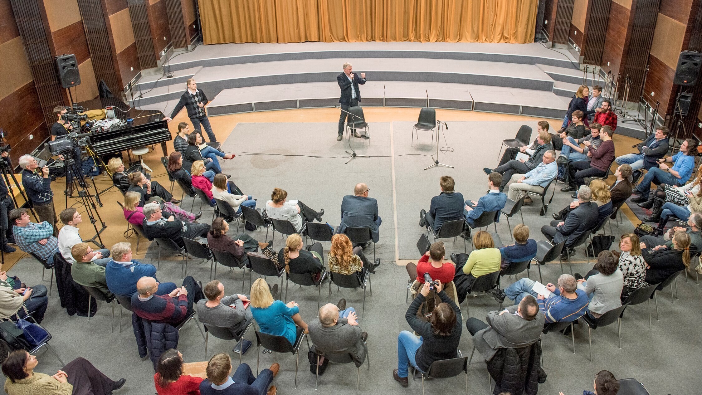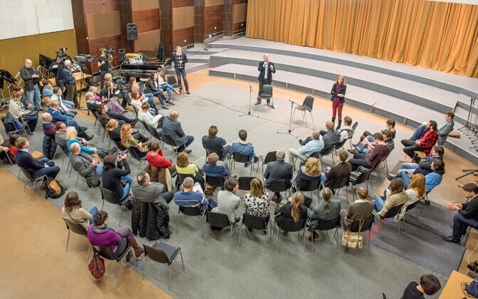 На мероприятие собрались около 60 лидеров общественного мнения русской общины и просто активных граждан для того, чтобы задать вопросы директору по развитию канала Янеку Лутсу, а также обменяться мнениями о том, какой могла бы быть редакционная политика и содержание будущего телеканала.