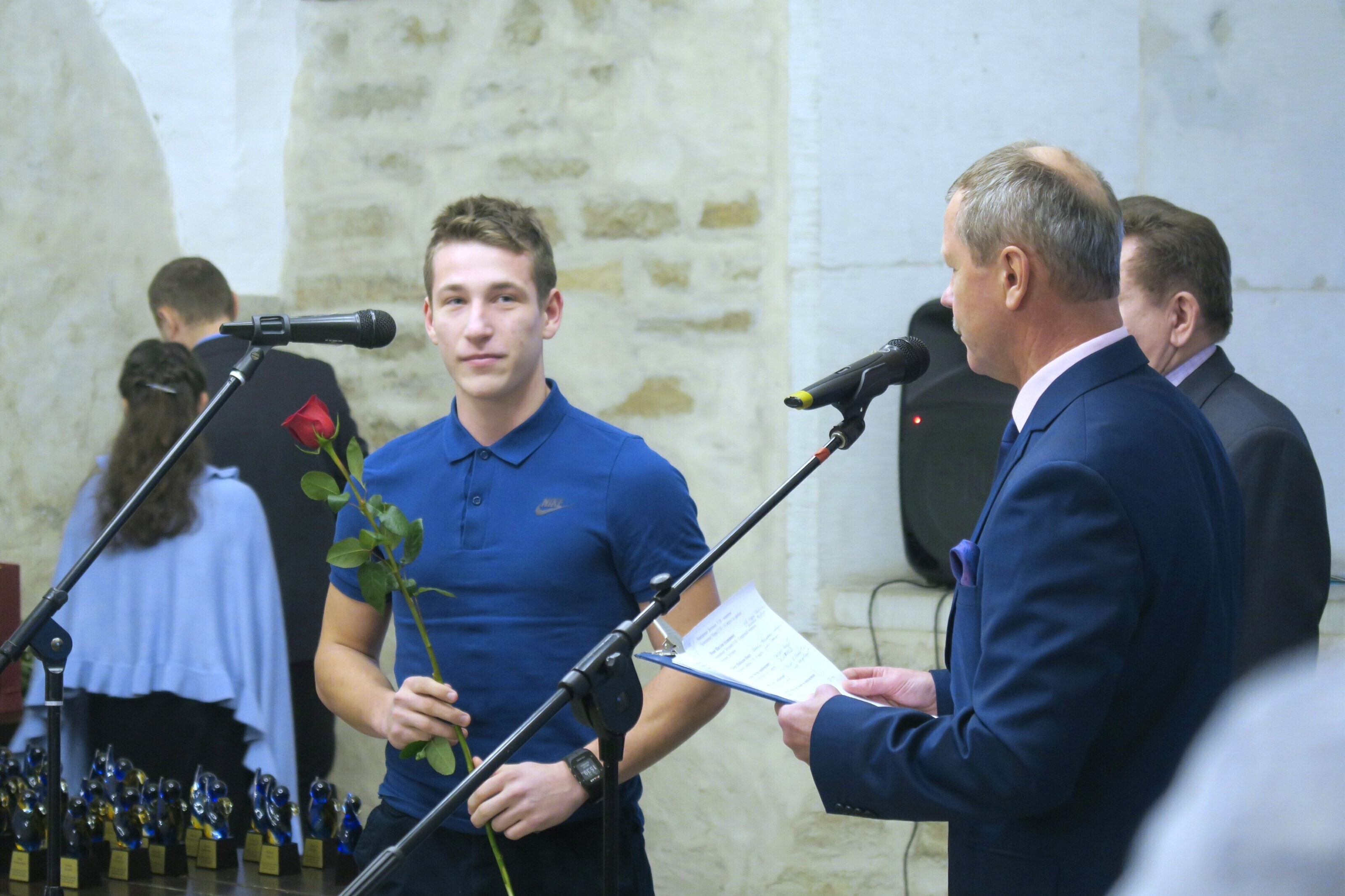 За спортивные достижения наградили: гребца Михаила Куштейна (чемпионат Эстонии U18 - чемпион, чемпионат Мира U18 – 16 место (в двойке), плавца Ивана Щеглова (чемпионат Эстонии U16 - 5-кратный чемпион), боксера Роберта Шибалова (чемпионат Европы U18 – 9 место), кикбоксеров Андреса Ойтсара (чемпионат Мира U16 – 1 место) и Даниила Гайдука (чемпионат Мира U16 – 2 место), фехтовальщиков на инвалидных колясках Дмитрия Красикова (чемпионат Мира U17 – 10 место и 11 место, чемпионат Мира U23 – 16 место) и Валентина Красикова (чемпионат Мира U17 – 12 место и 13 место, чемпионат Мира U23 – 17 место), хоккеиста Даниила Сеппенен (участника сбороной Эстонии), стрелка Станислава Болдырева (чемпионат Эстонии – первое место, два вторых и два третьих места, чемпионат Европы U20 – 20 и 22. место – в индивидуальном зачете, 7 место в команде).