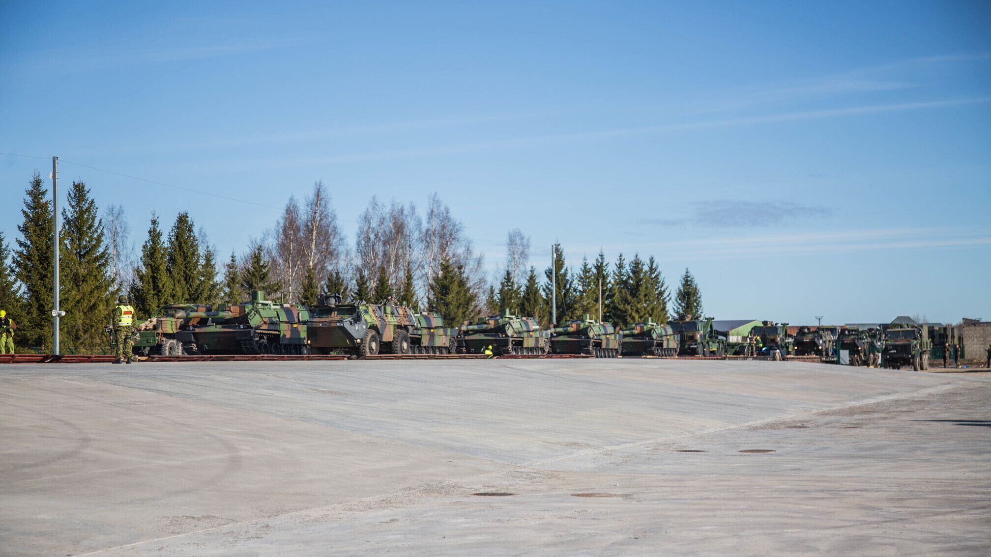 В среду, 29 марта, на военную базу в Тапа прибыла последняя партия бронетехники для тактической группы НАТО. Свою технику привезли французы: около 30 единиц, в том числе танки Leclerc. Французские военные прибудут на базу в апреле.