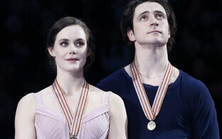 Обладатели золотых медалей чемпионата - канадская пара Тесса Вирту и Скотт Мойр:
