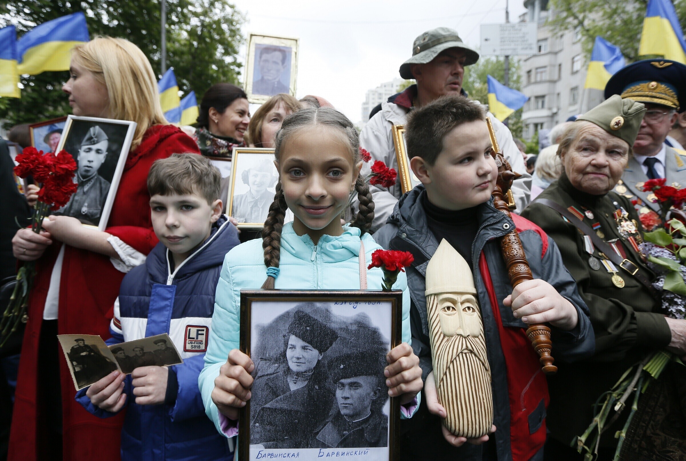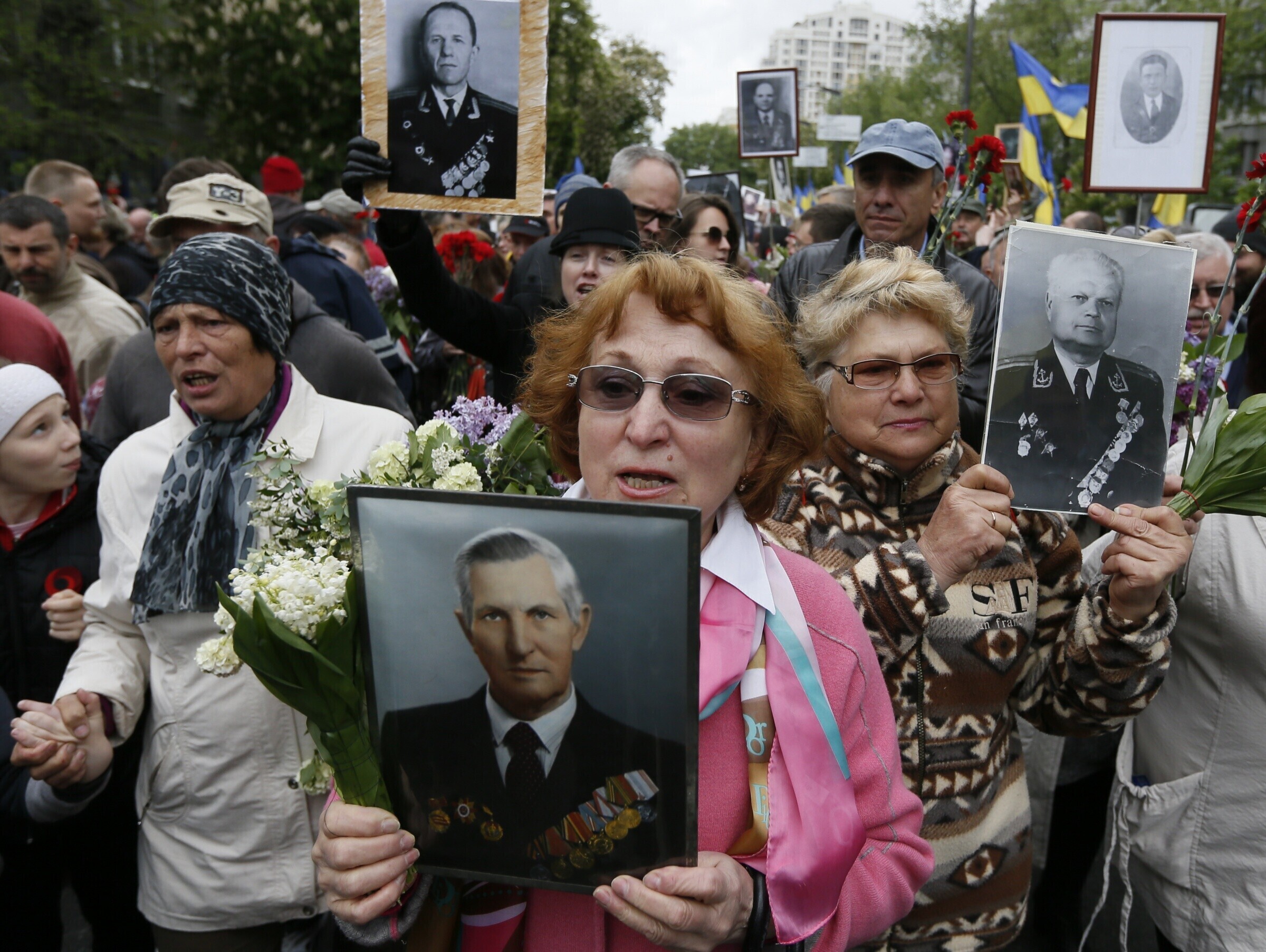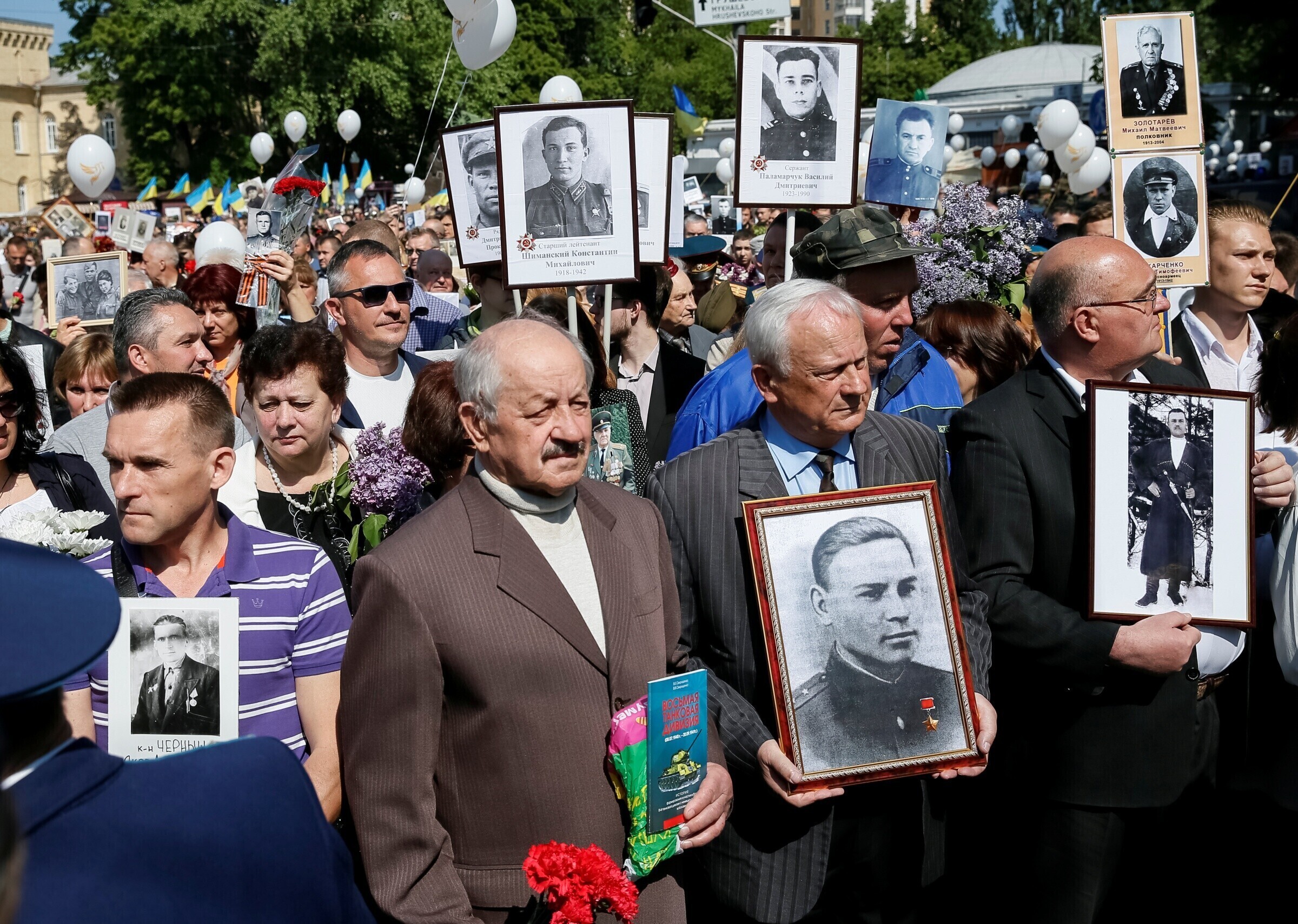 В Киеве участники акции, которая двигалась от станции метро "Арсенальная" в сторону парка Славы, несли портреты участников войны и скандировали "Фашизм не пройдет", сообщили Русская служба Би-би-си и агентство ТАСС.