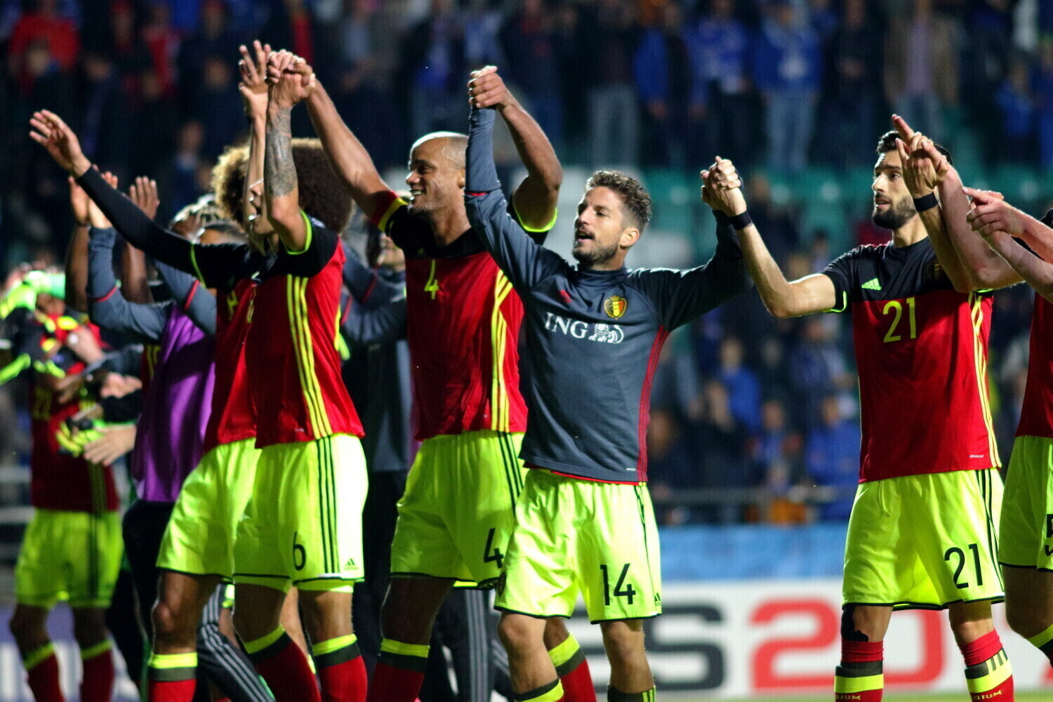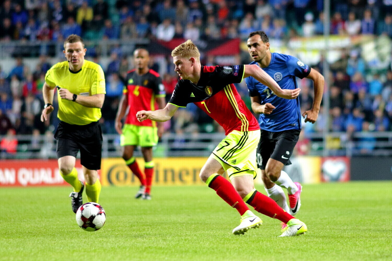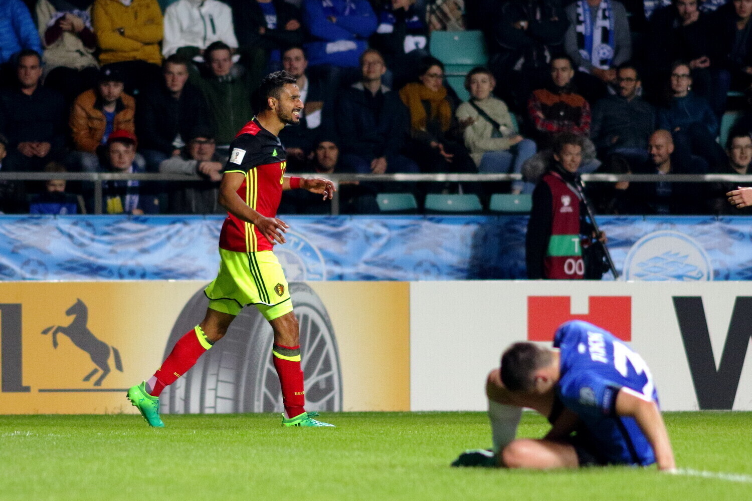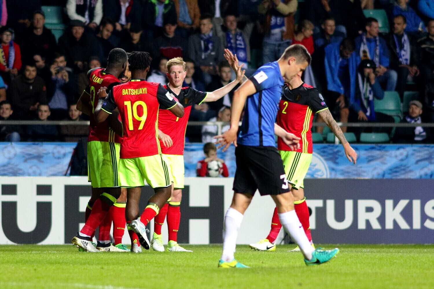 Первый мяч в ворота Михкеля Аксалу забил Дрис Мертенс на 31-й минуте с подачи Кевина де Брёйне, а на 86-й минуте Насер Шадли увеличил счет в пользу бельгийцев. Ассистировал при втором голе снова Кевин де Брёйне.