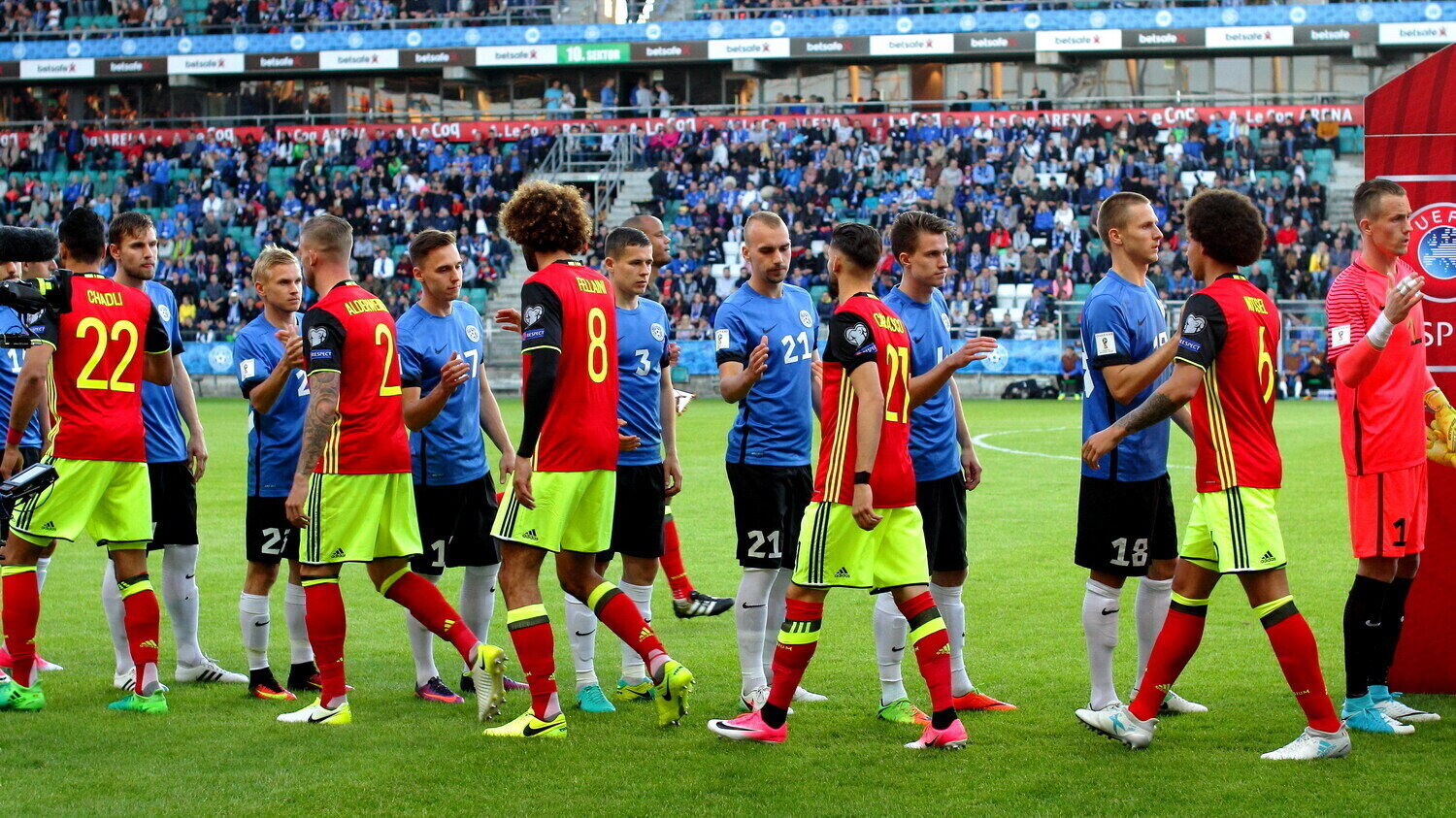 Отборочный матч ЧМ-2018 по футболу между сборными Эстонии и Бельгии состоялся в пятницу, 9 июня, на стадионе "А. Ле Кок Арена" в Таллинне. В прямом эфире встречу показывал телеканал ETV+.