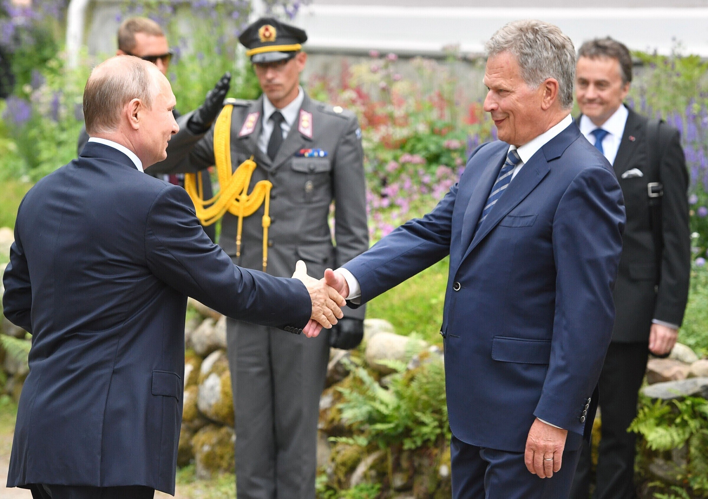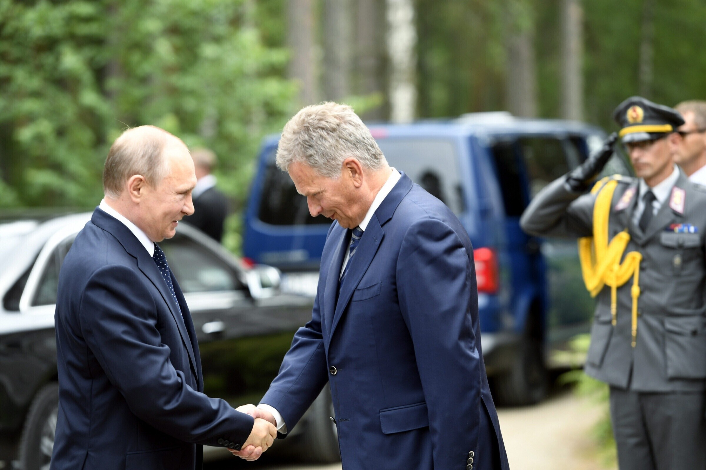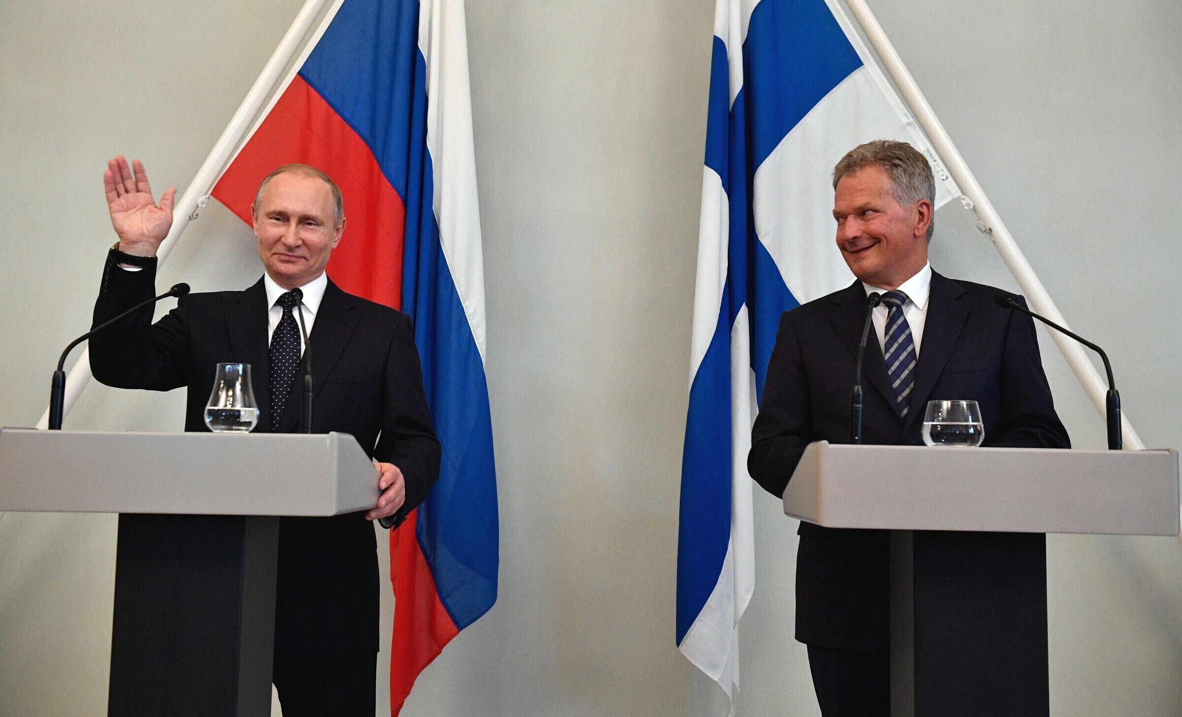 Саули Нийнистё выразил благодарность Путину за визит. "Мы очень высоко ценим, что президент Путин приехал в Финляндию в 100-летний юбилей независимости", - сказал Нийнистё, по словам которого Россия и Финляндия имеют много двусторонних отношений и связей, как и подобает хорошим соседям.
