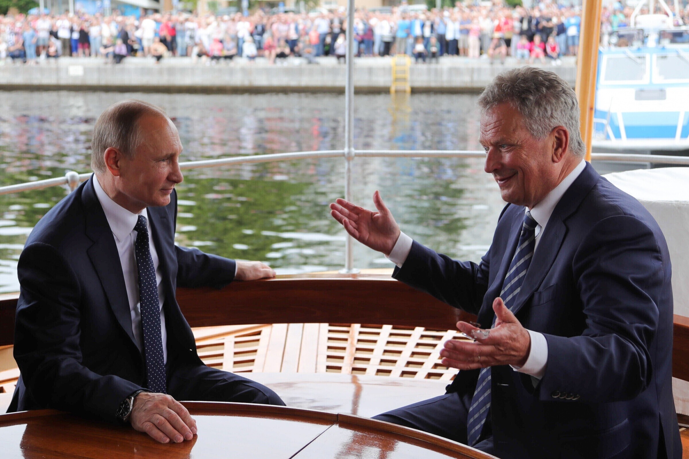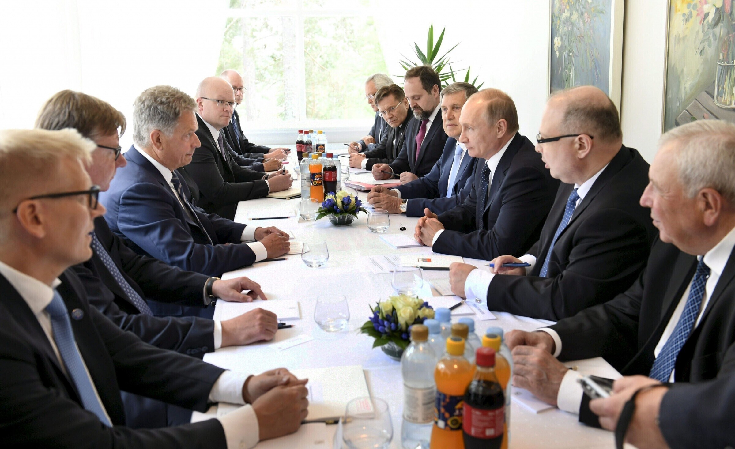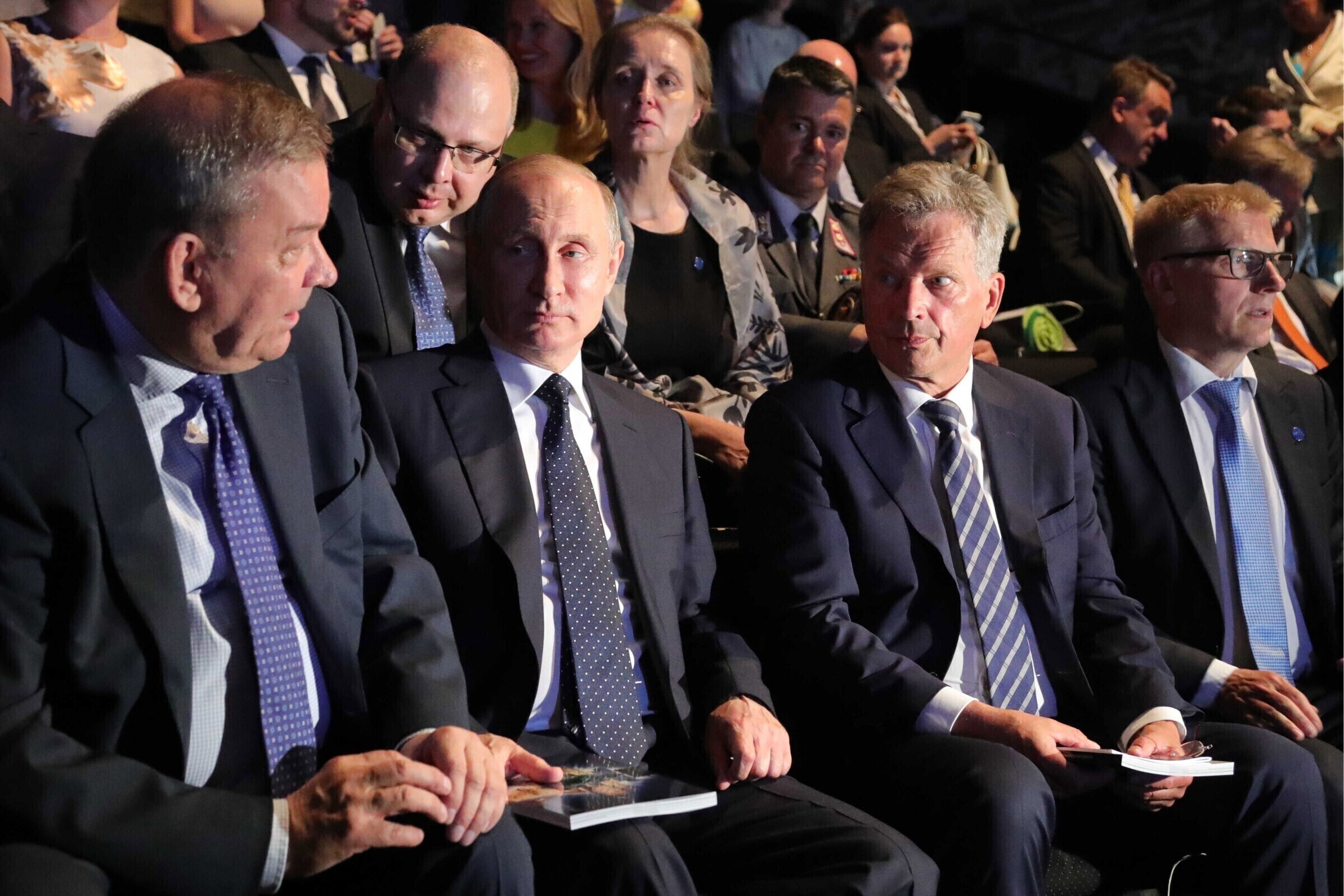 Саули Нийнистё выразил благодарность Путину за визит. "Мы очень высоко ценим, что президент Путин приехал в Финляндию в 100-летний юбилей независимости", - сказал Нийнистё, по словам которого Россия и Финляндия имеют много двусторонних отношений и связей, как и подобает хорошим соседям.