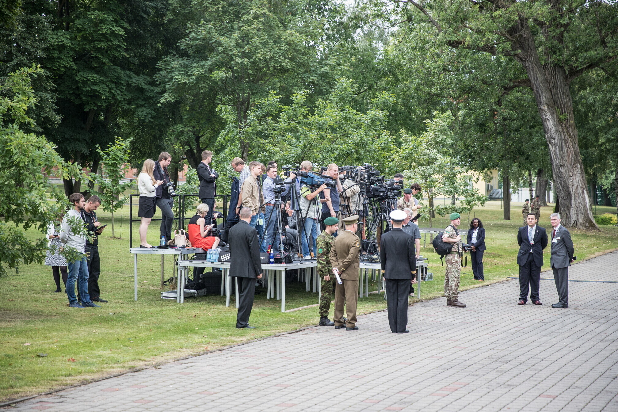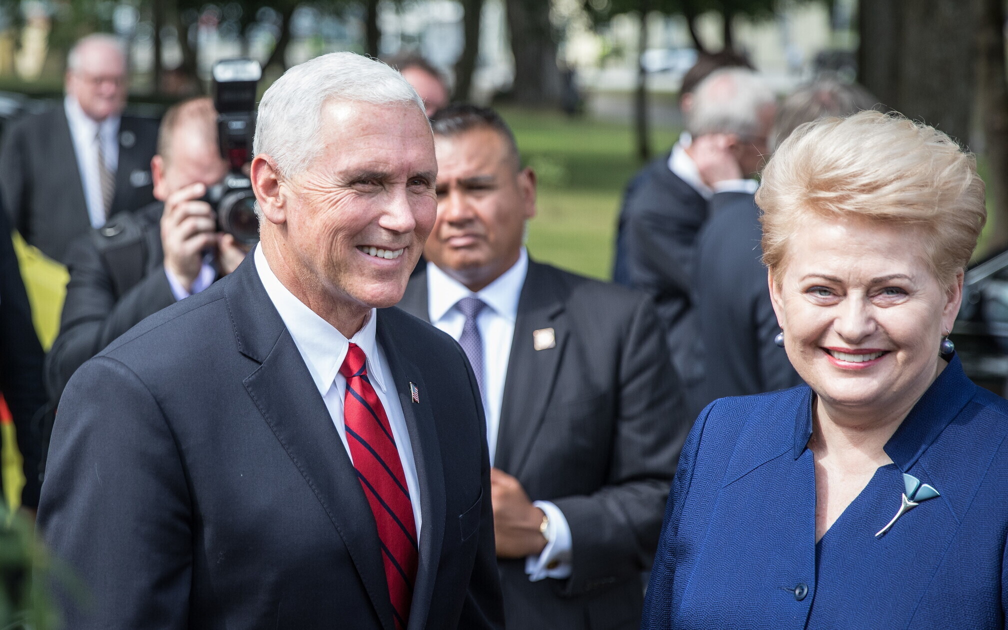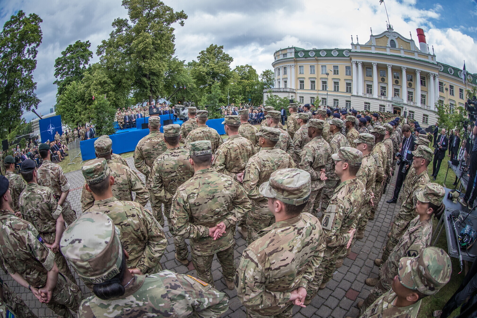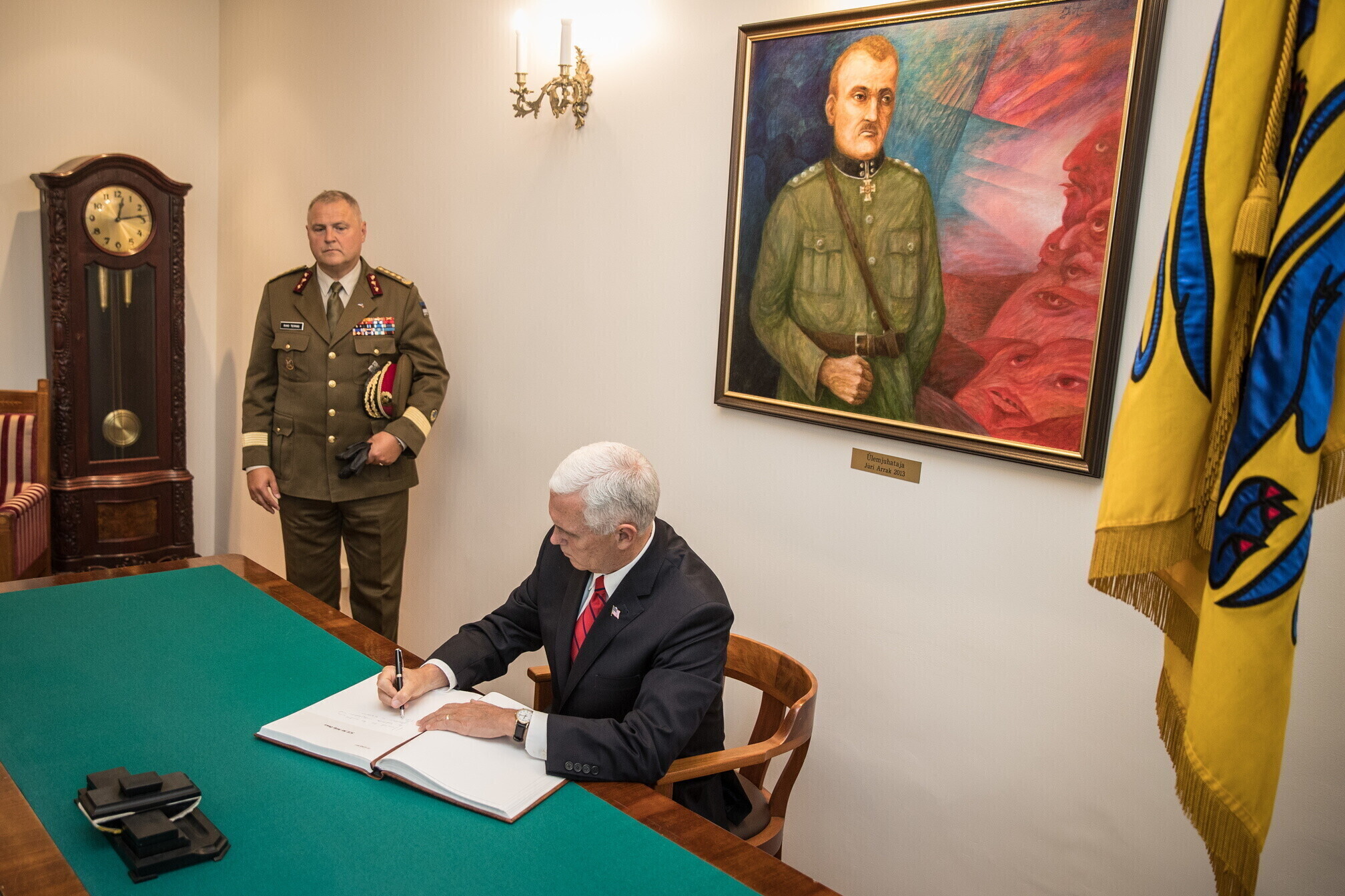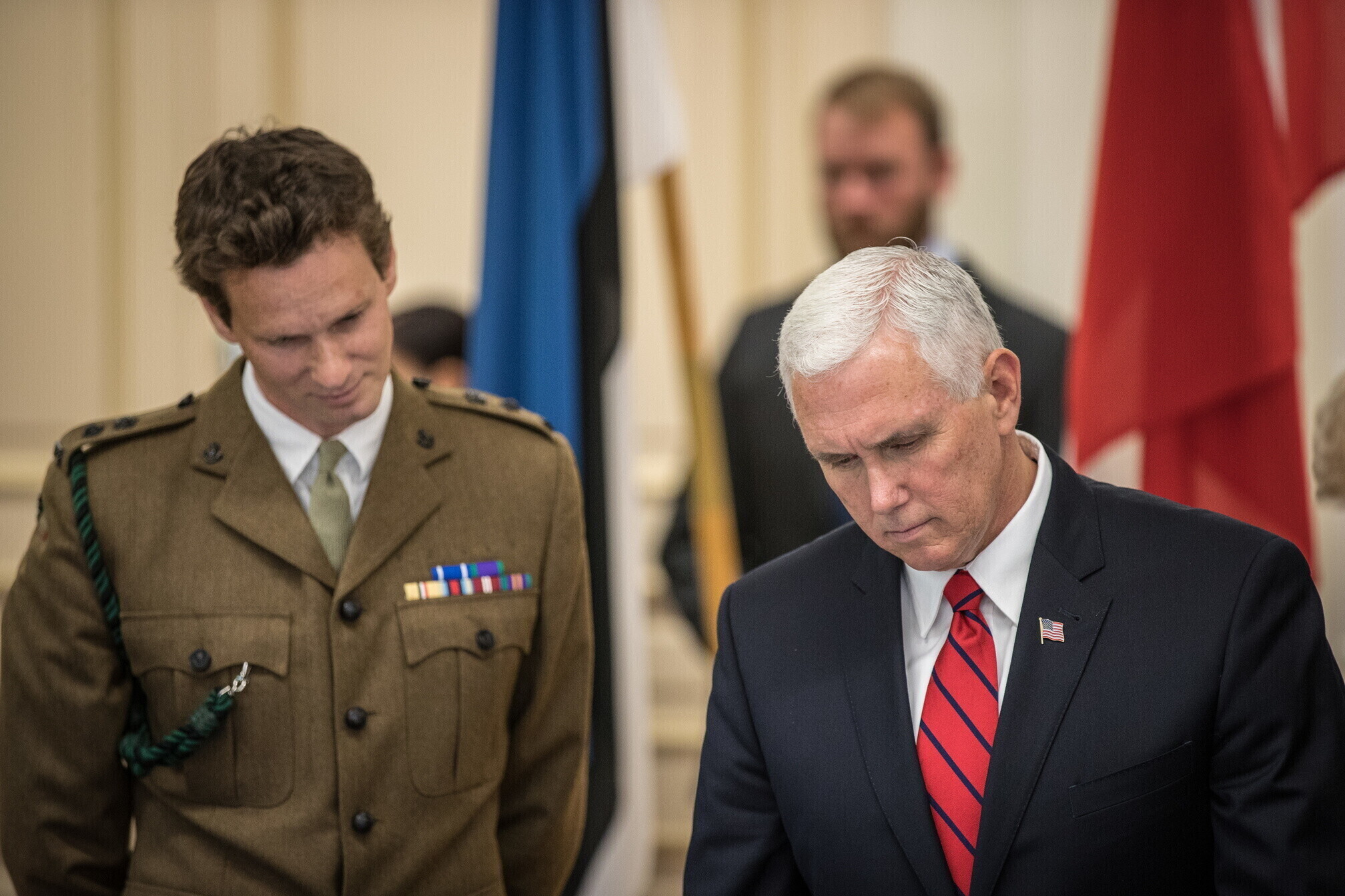 Вице-президент США Майк Пенс с командующим Силами обороны Эстонии Рихо Террасом и премьер-министром Юри Ратасом в понедельник принял участие в построении размещенных в Эстонии военнослужащих НАТО и эстонских военных. В своей речи он подтвердил приверженность США статье 5 Североатлантического договора о коллективной обороне.