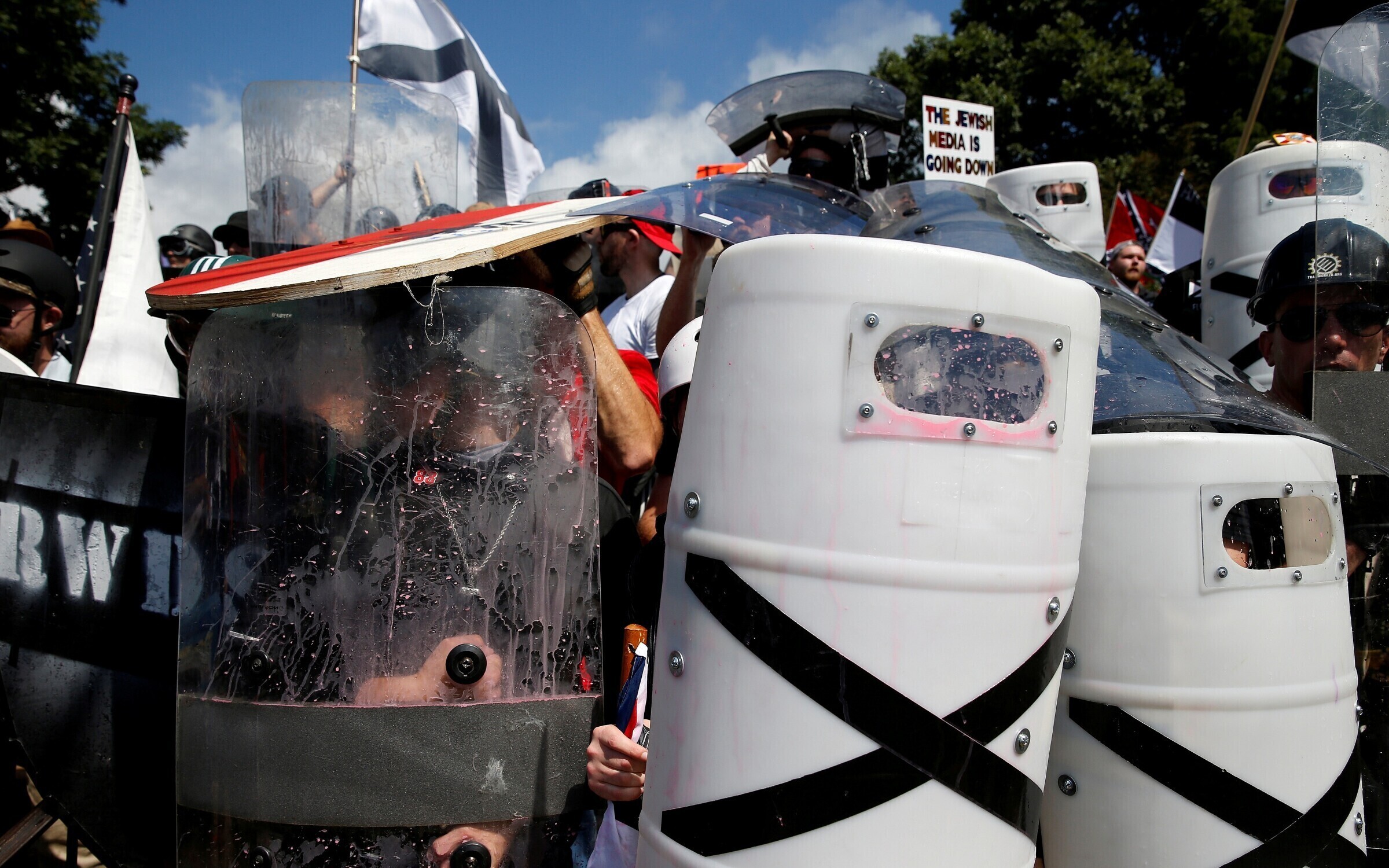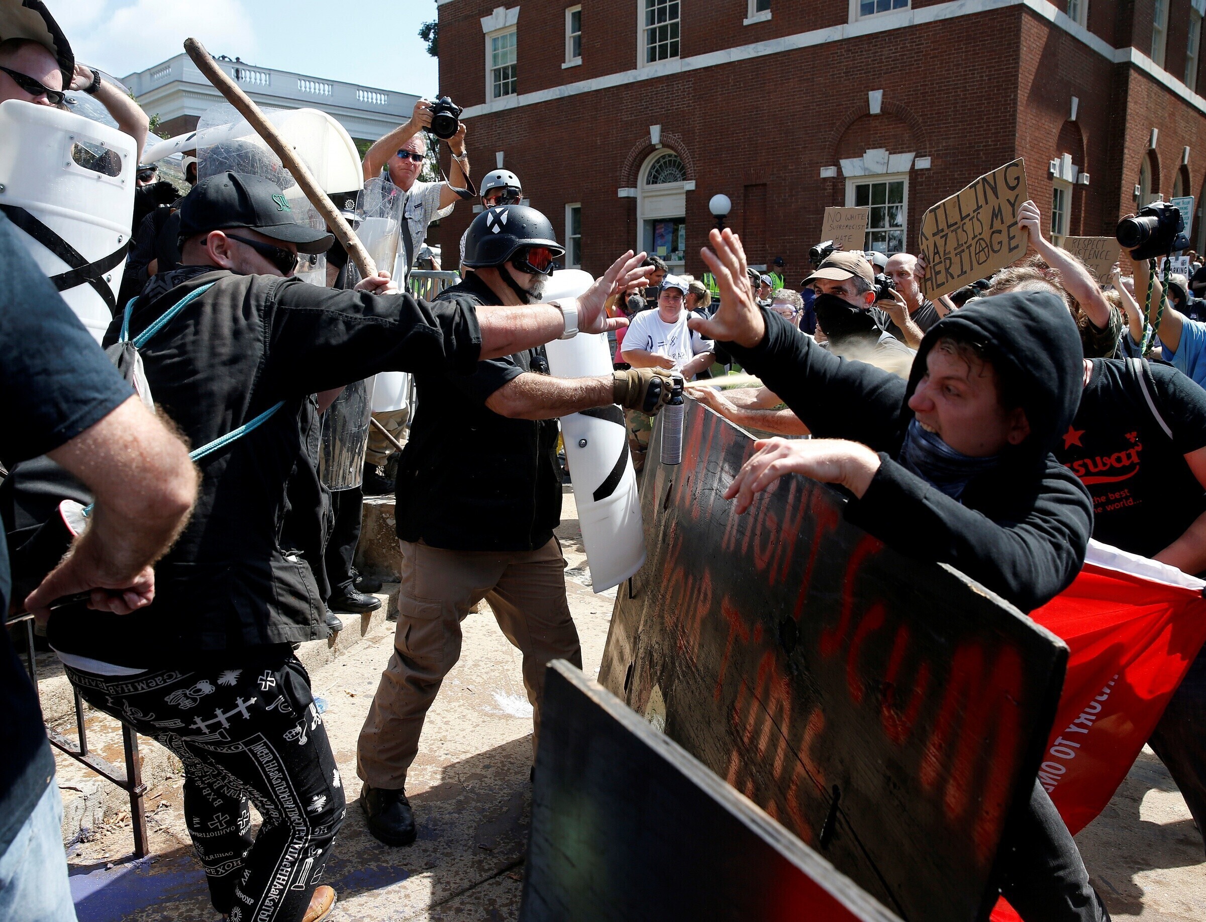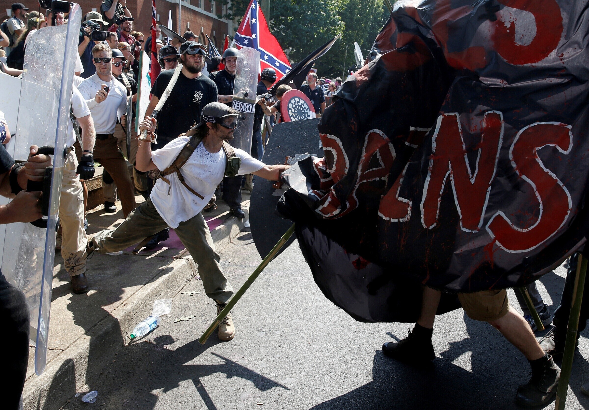 Столкновения в Шарлотсвилле между ультраправыми активистами и их противниками продолжались в течение дня. Демонстранты кричали друг на друга, швырялись бутылками и распыляли перечный аэрозоль.