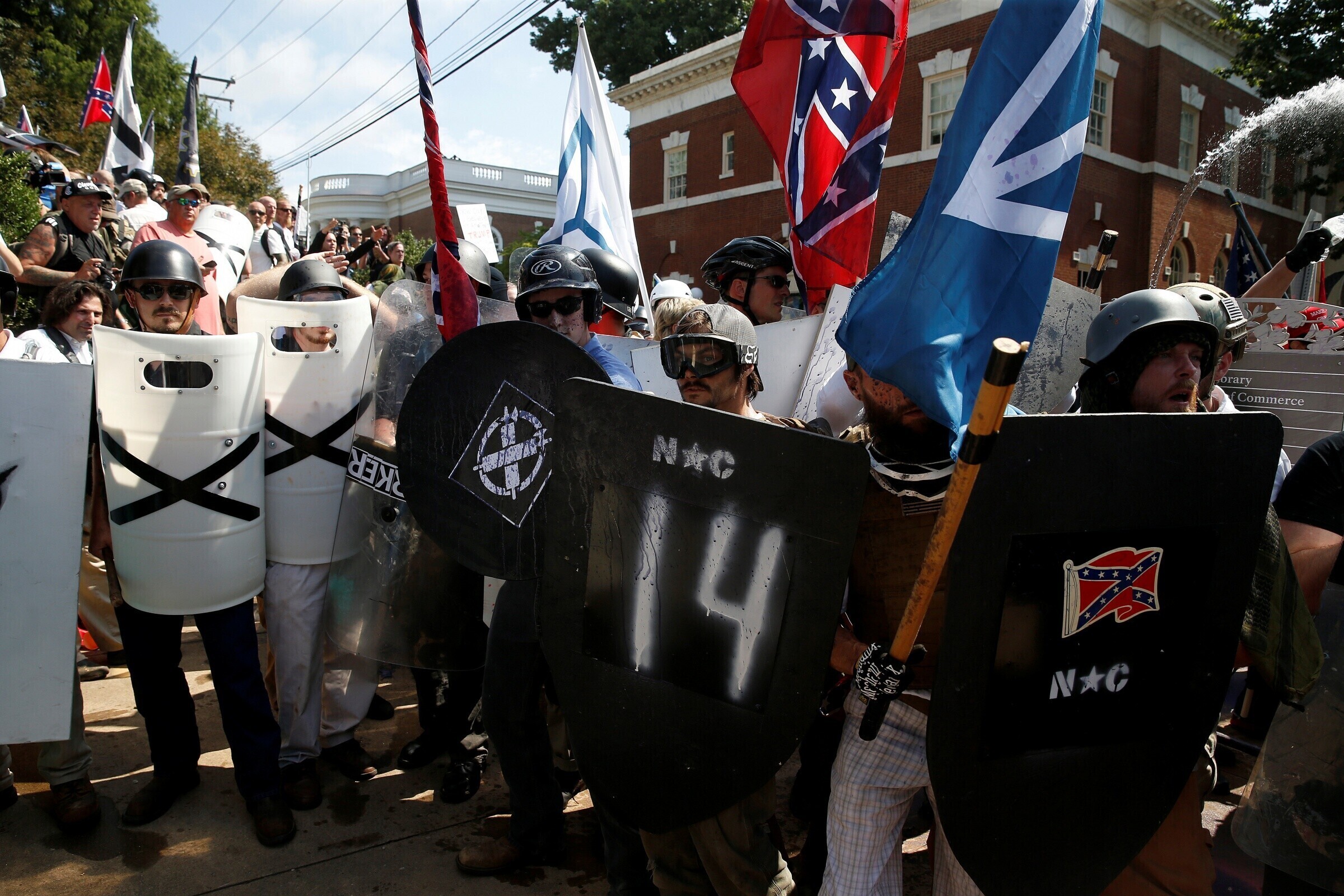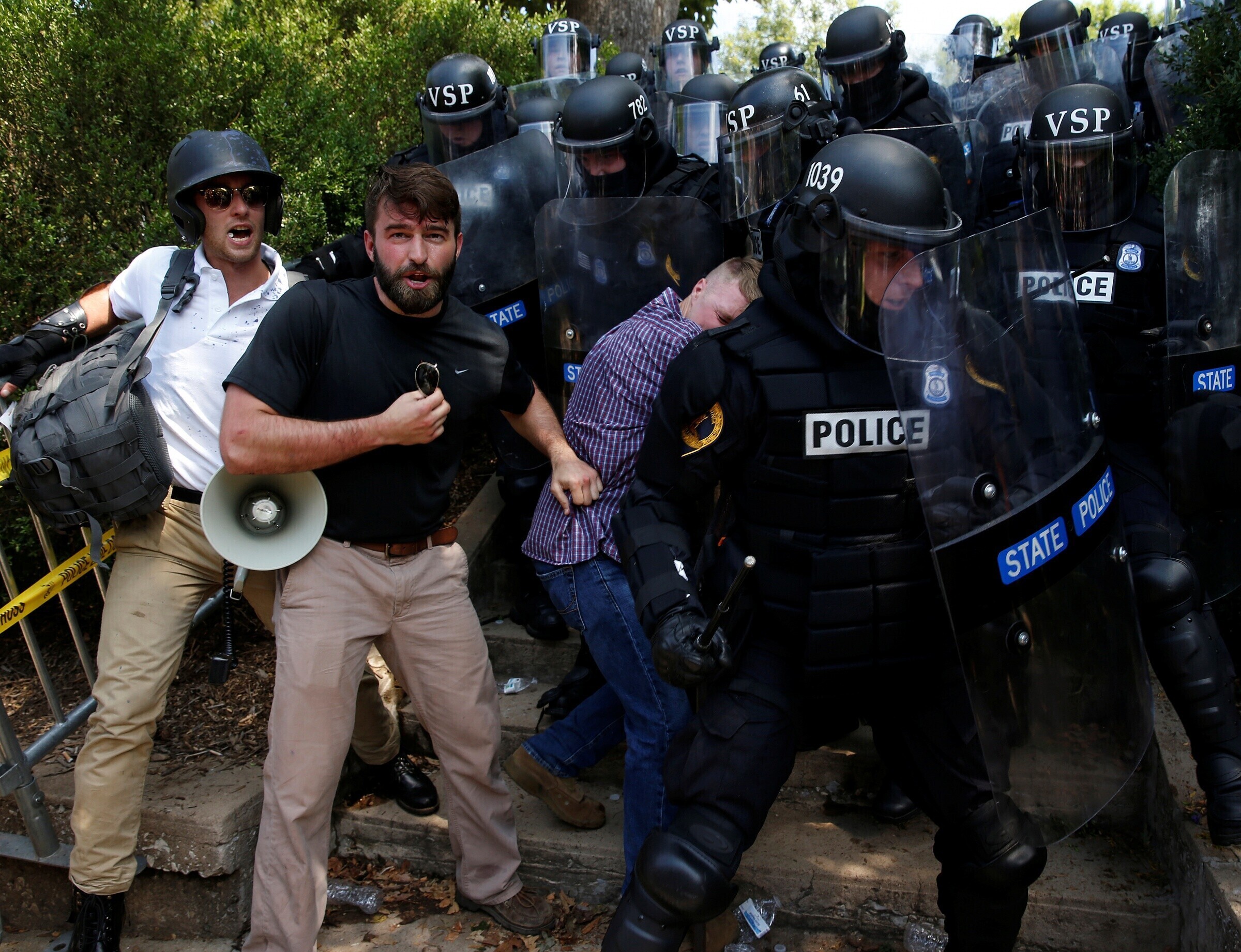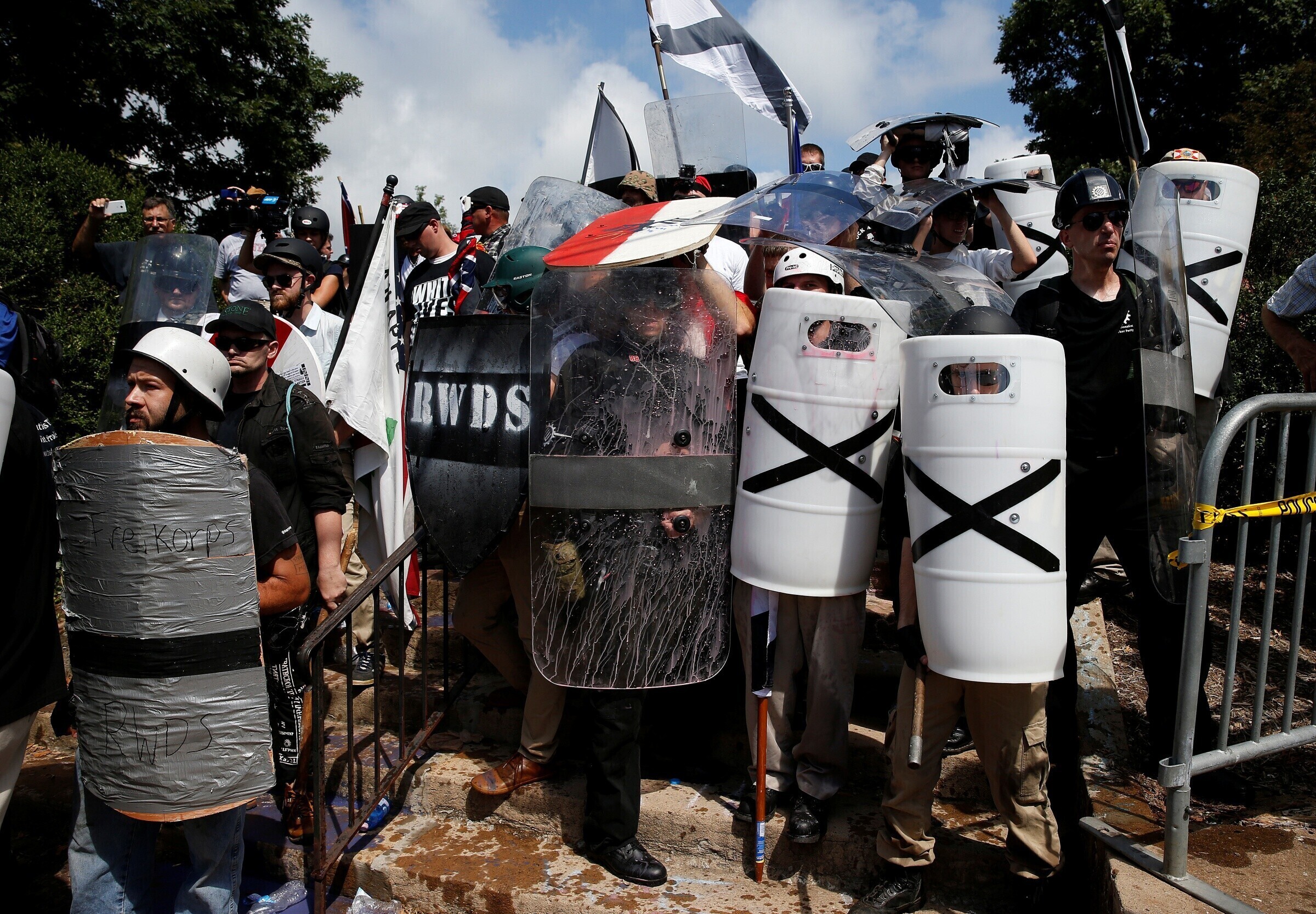 Столкновения в Шарлотсвилле между ультраправыми активистами и их противниками продолжались в течение дня. Демонстранты кричали друг на друга, швырялись бутылками и распыляли перечный аэрозоль.