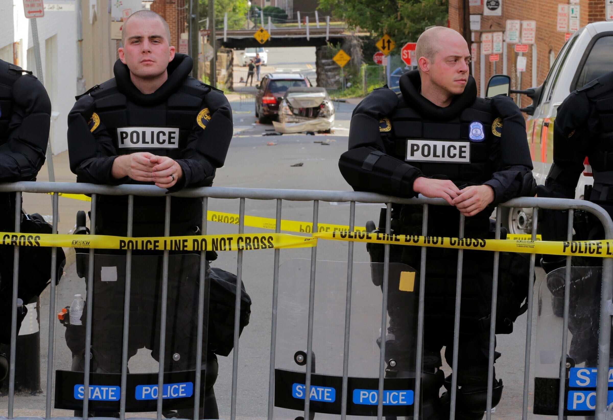 Кроме того, двое полицейских погибли в результате крушения вертолета около 17:00 в субботу в нескольких километрах от Шарлотсвилля. Причина крушения пока не называется, и не известно, была ли она связана с протестами.