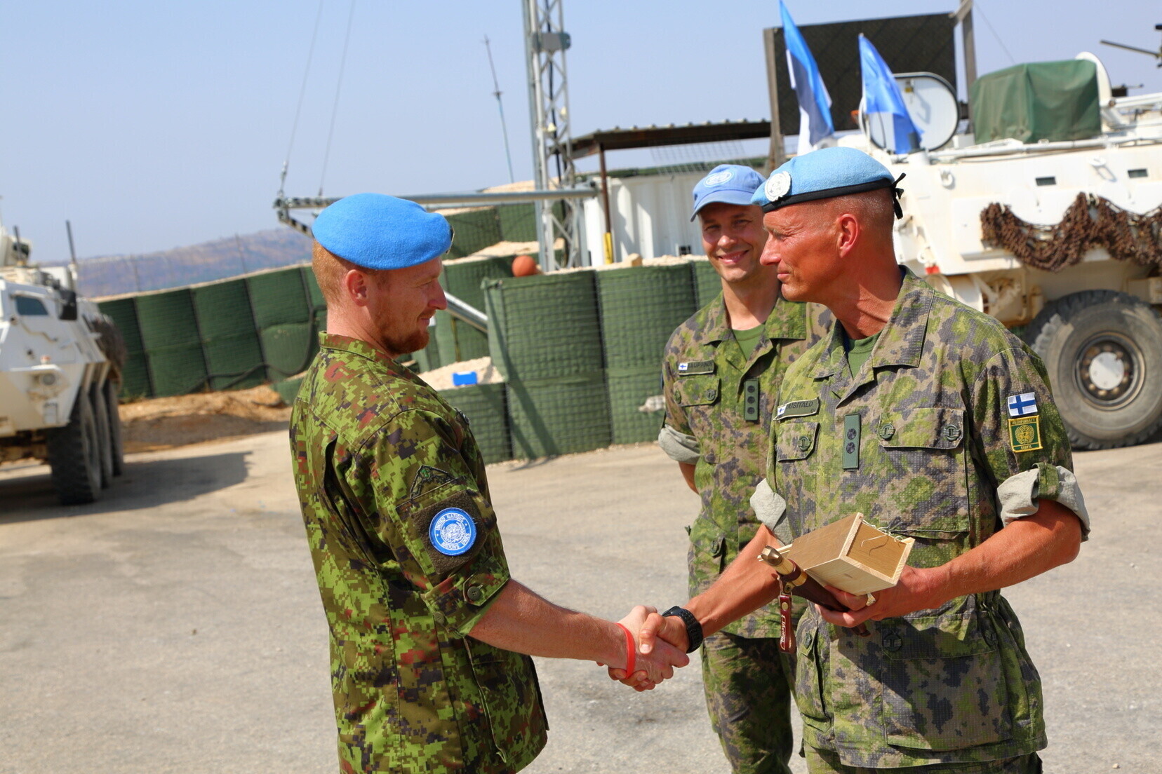 "Наш народ восстановил независимое и свободное эстонское государство 26 лет назад. И сегодня мы находимся здесь, в Южном Ливане, в качестве миротворцев, чтобы вместе с финнами и ирландцами выполнять важные задачи, поставленные мандатом ООН", - сказал командир эстонского контингента, капитан Андрей Шлабович.