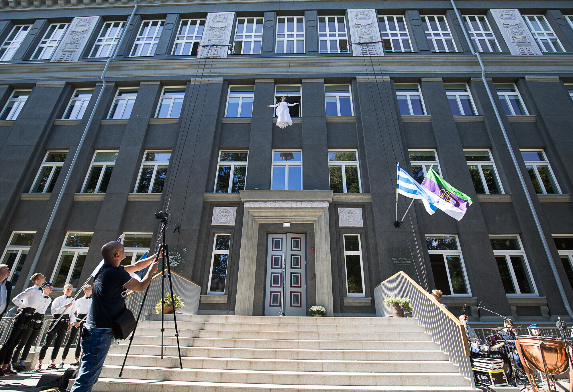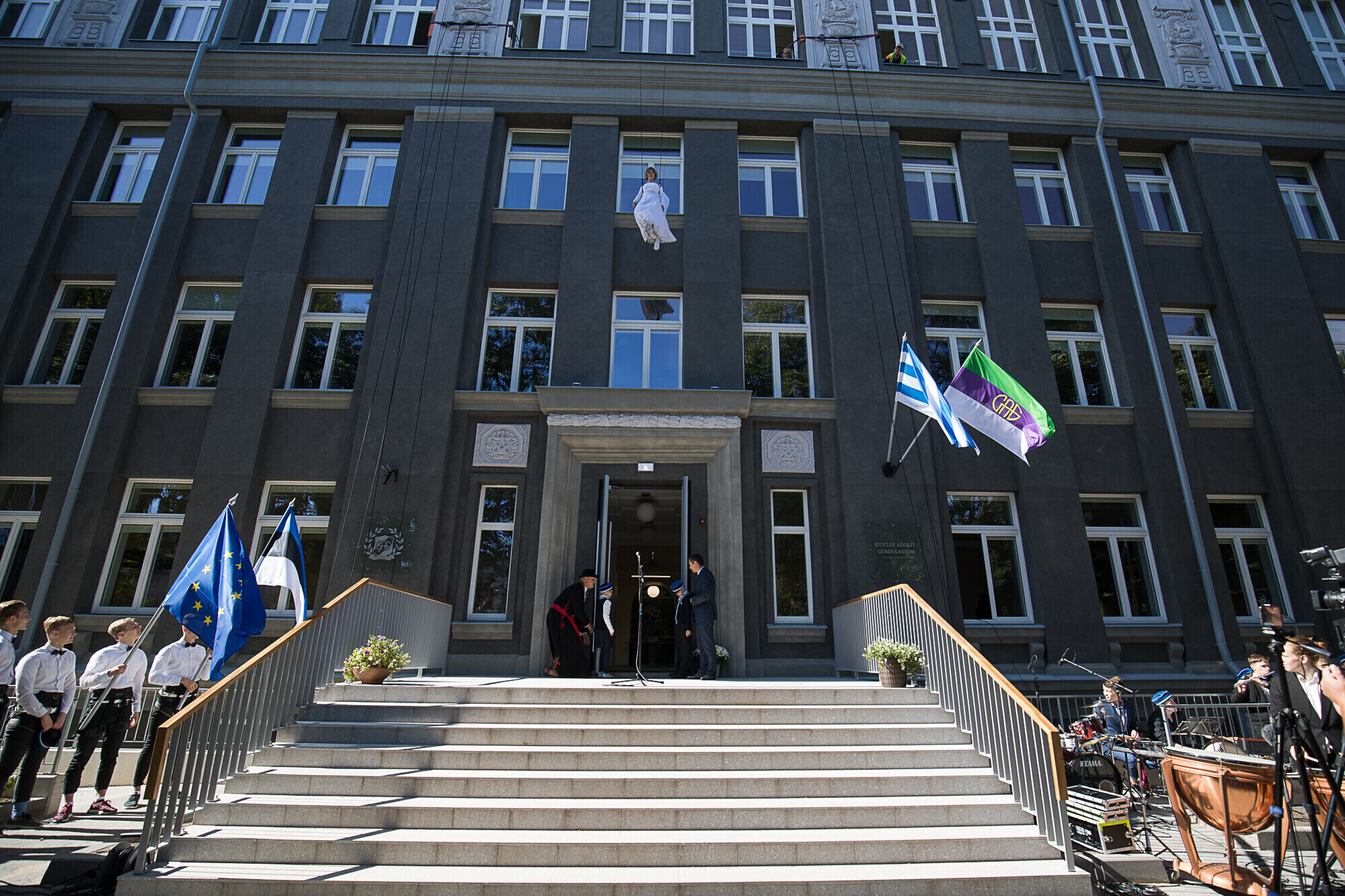 В понедельник, 4 сентября, состоялось торжественное открытие нового здания Гимназии Густава Адольфа для учеников первой и второй ступеней обучения. На террасе на крыше школы прошли праздничные мероприятия.