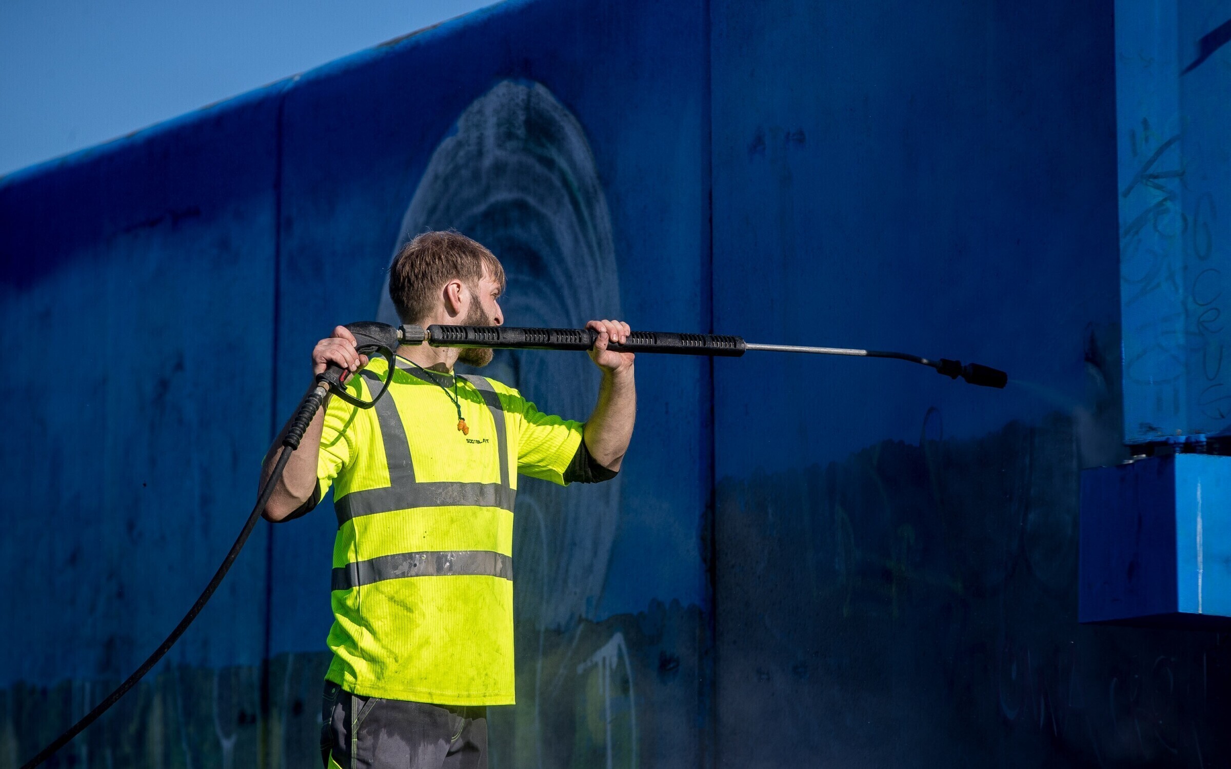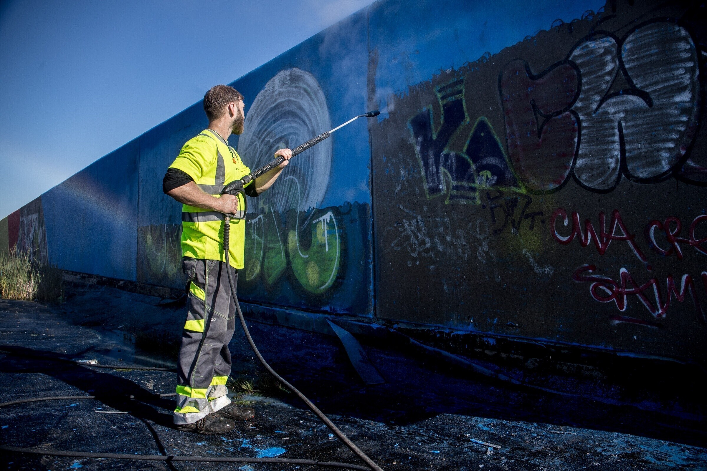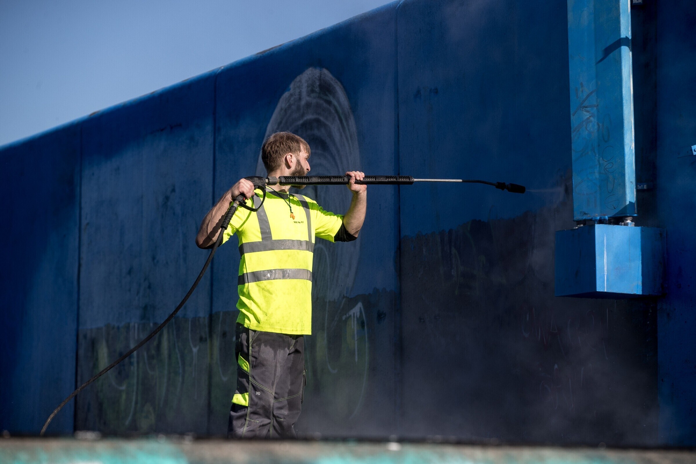 Появившиеся несколько недель назад граффити на стенах Горхолла постепенно с помощью моющего аппарата высокого давления уходят в историю.