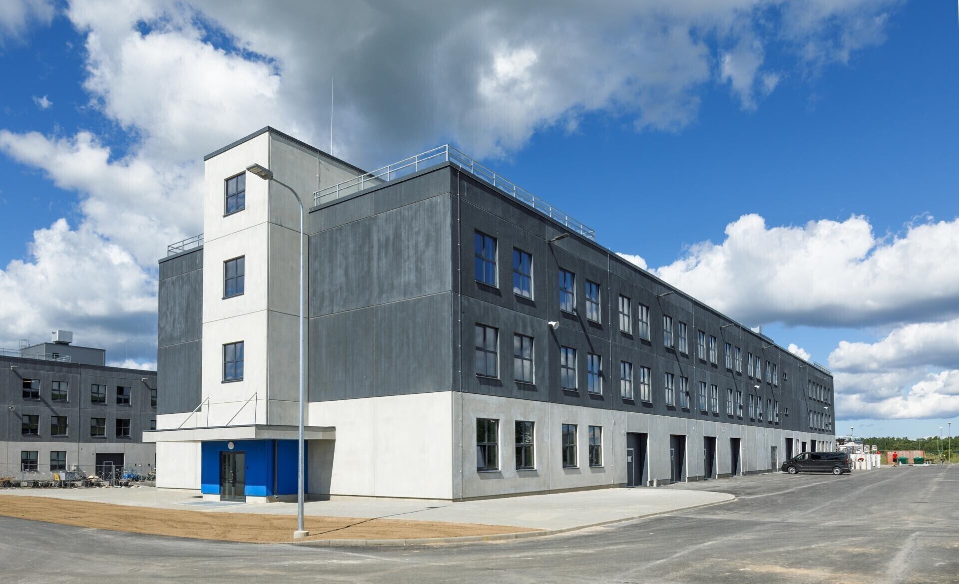 Казарма первого этапа представляет из себя 4-этажное здание закрытой нетто-площадью более 4600 кв. м. В казарме есть 300 спальных и 30 рабочих мест. Столовая в двухэтажном пищеблоке закрытой нетто-площадью около 5500 кв. м способна обслуживать 3200 человек в день.