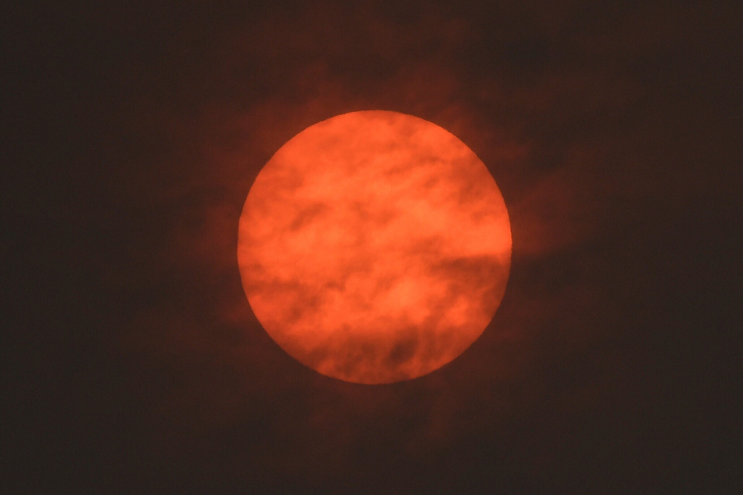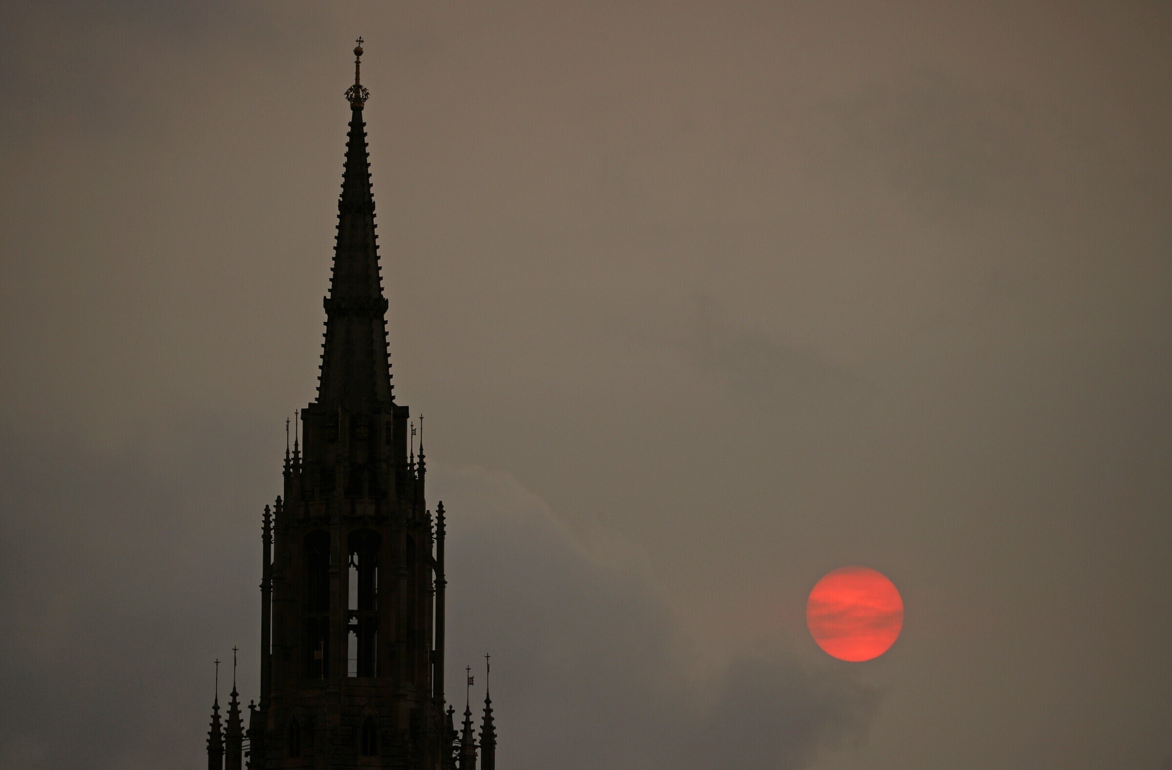 Обрушившийся на Британские острова ураган "Офелия" спровоцировал необычное явление - в небе появились красная Луна и рыже-красное Солнце.