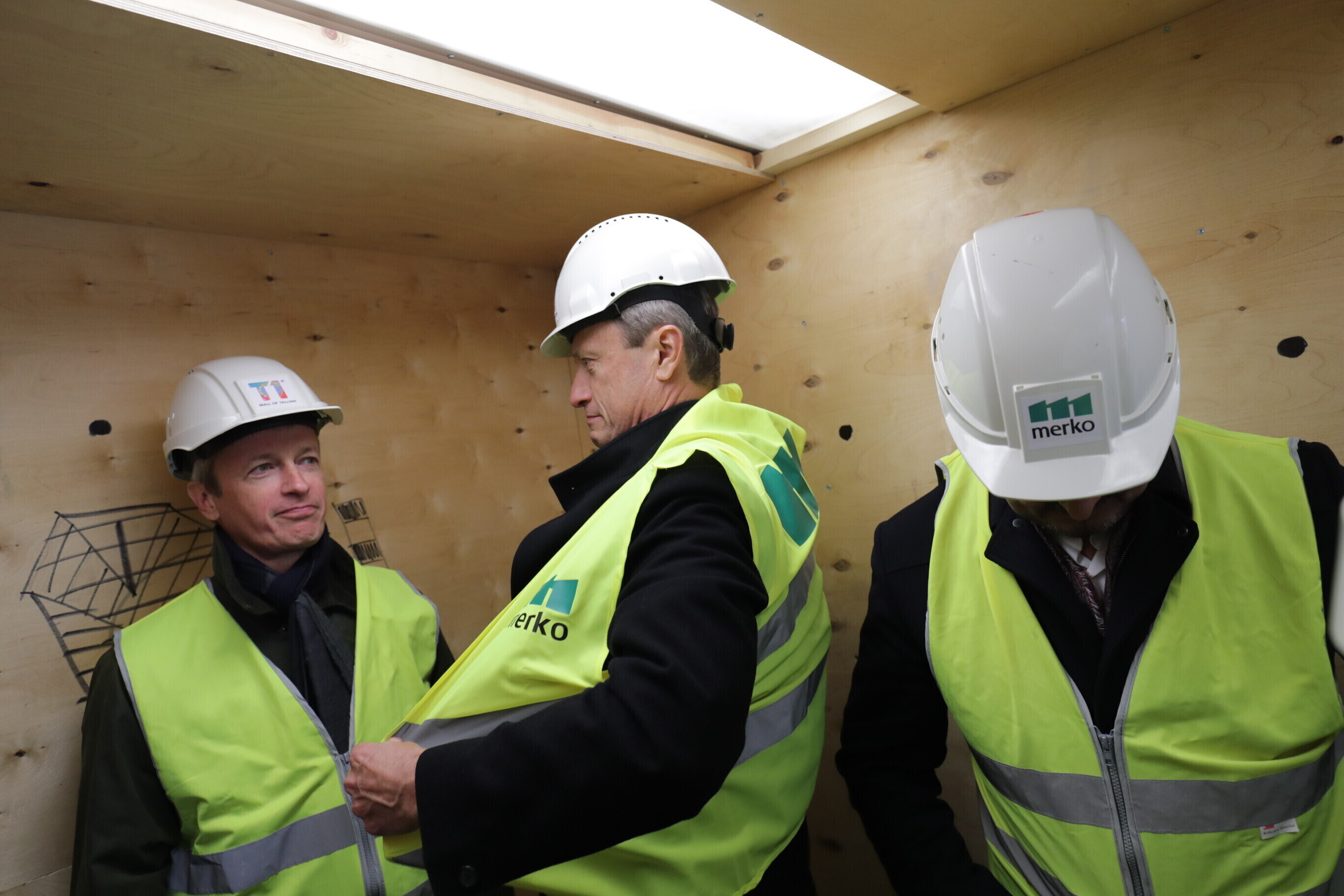 Строитель торгового центра T1 Mall of Tallinn в начале Петербургского шоссе в Таллинне компания Merko провела в четверг праздник стропил на данном объекте.