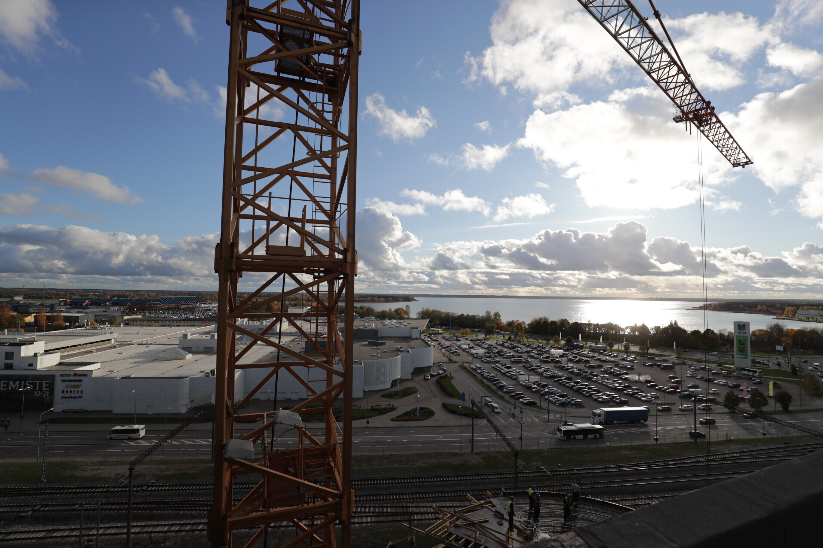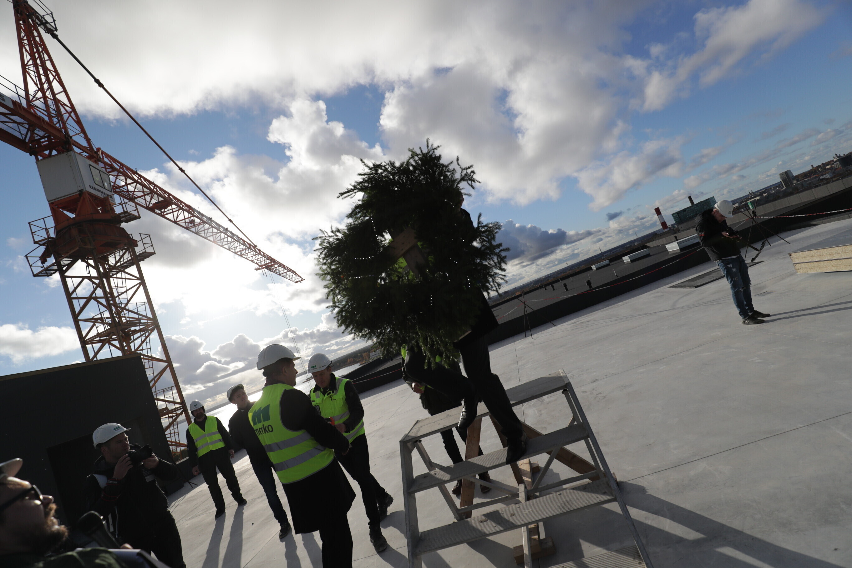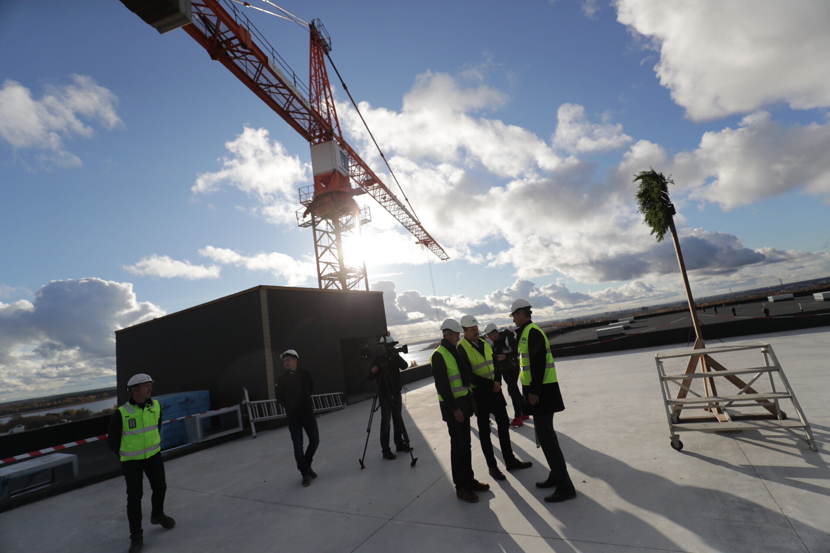 ФОТО: в строящемся в Таллинне торговом центре с колесом обозрения прошел праздник стропил