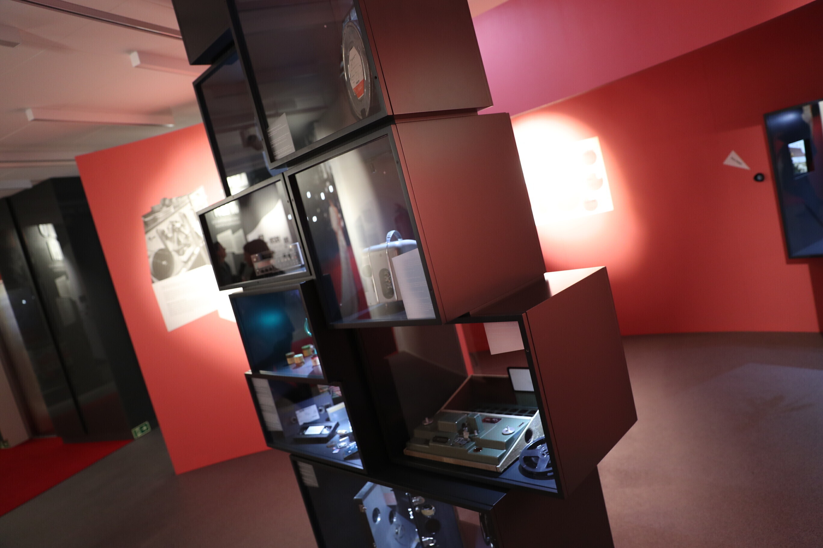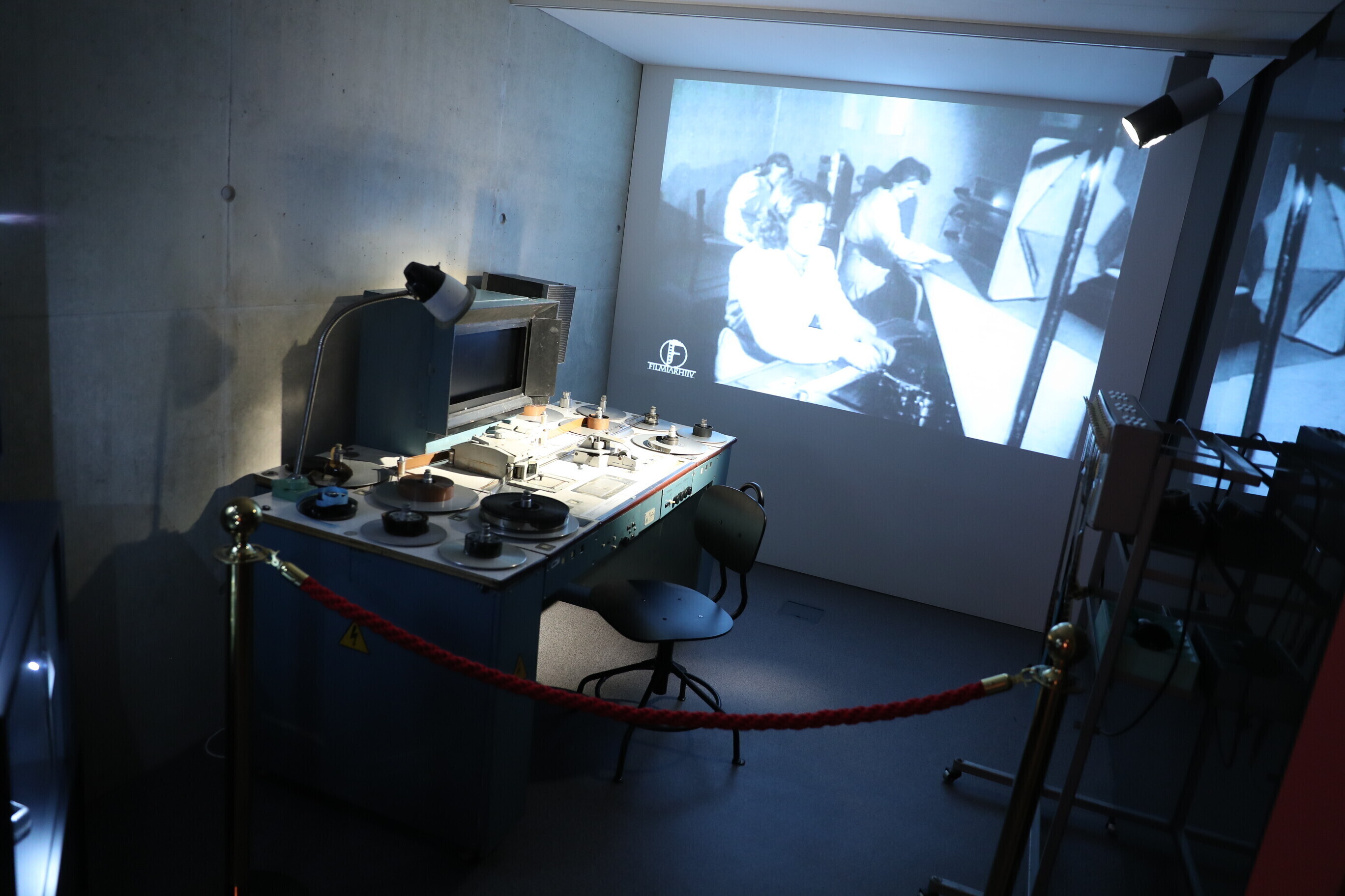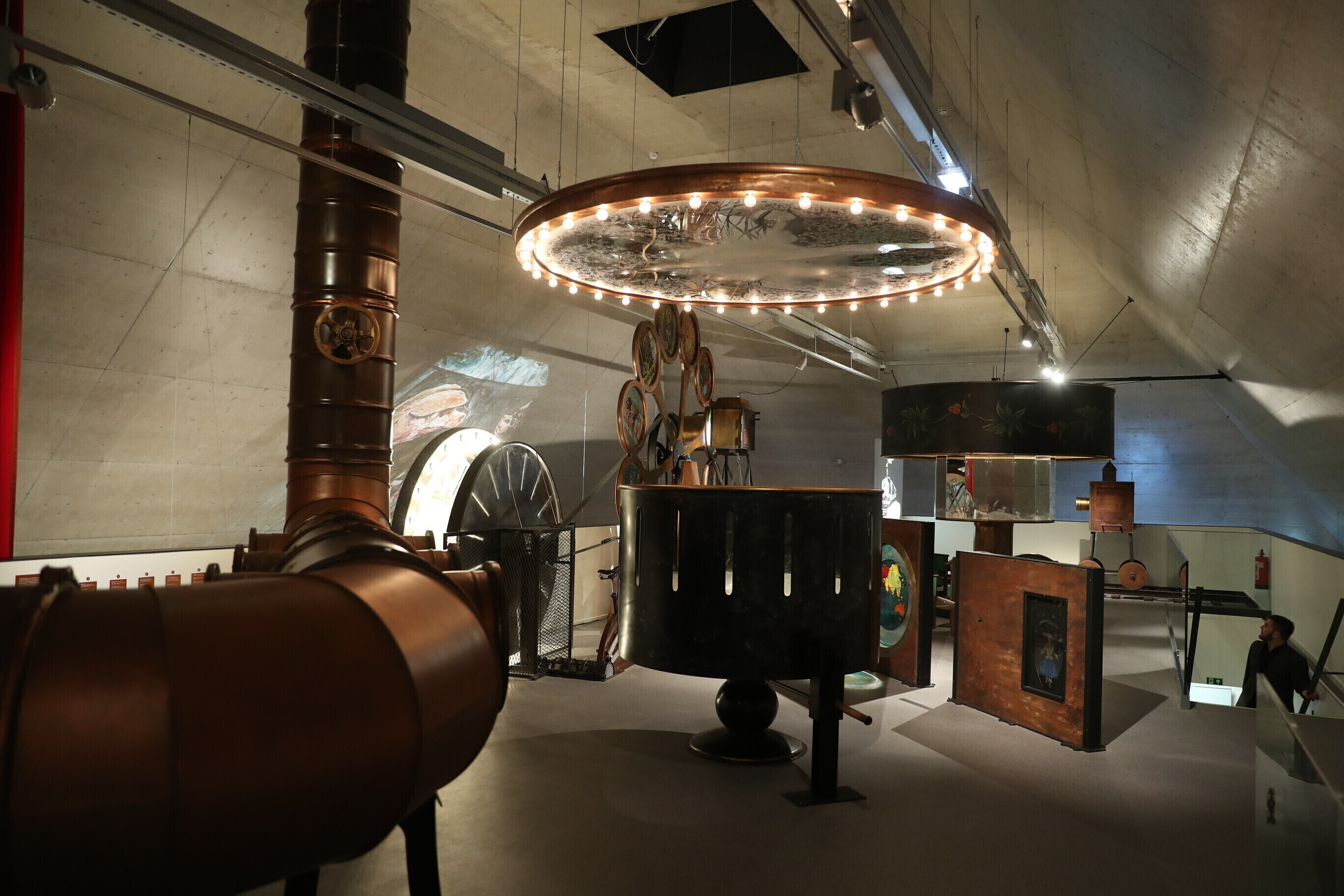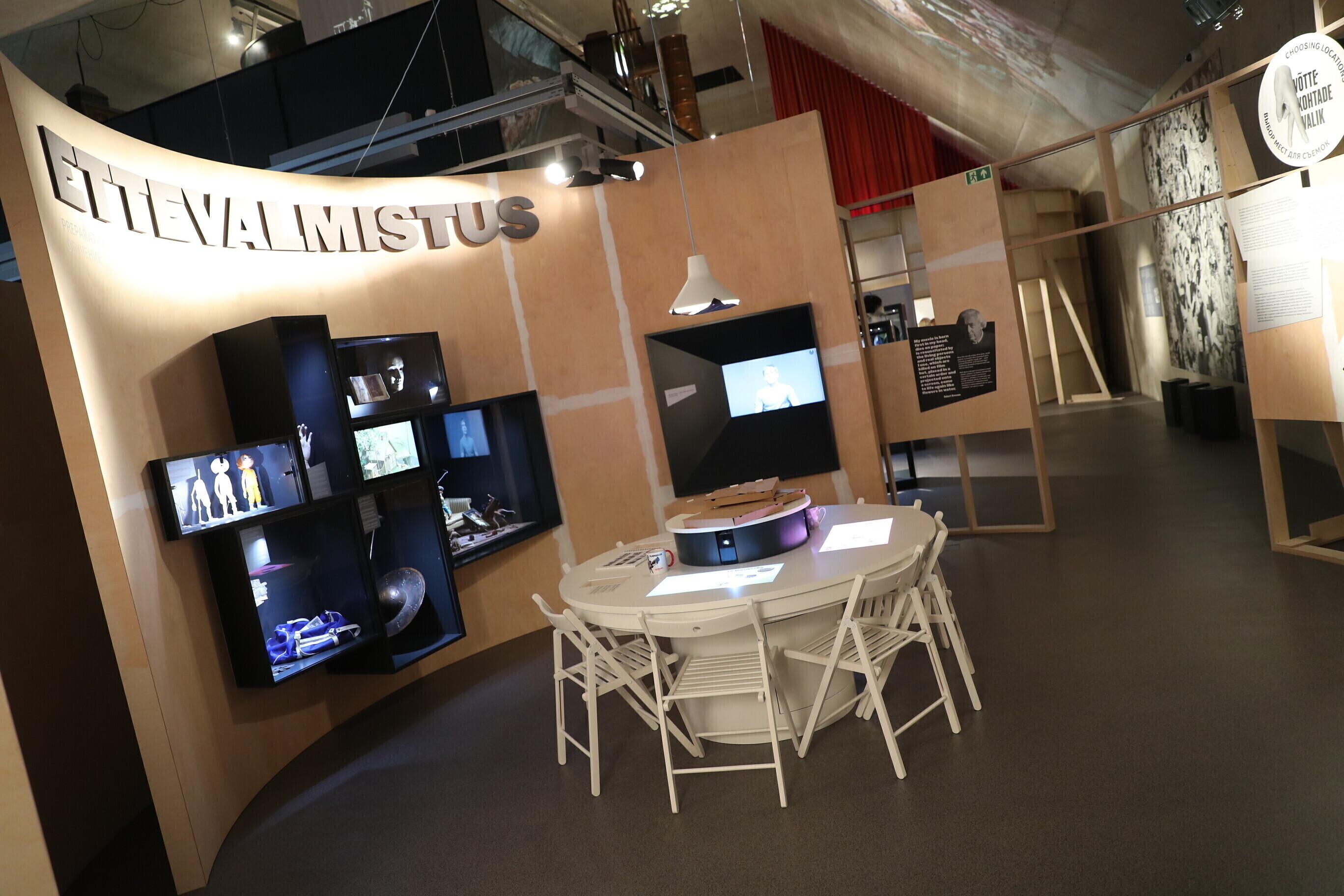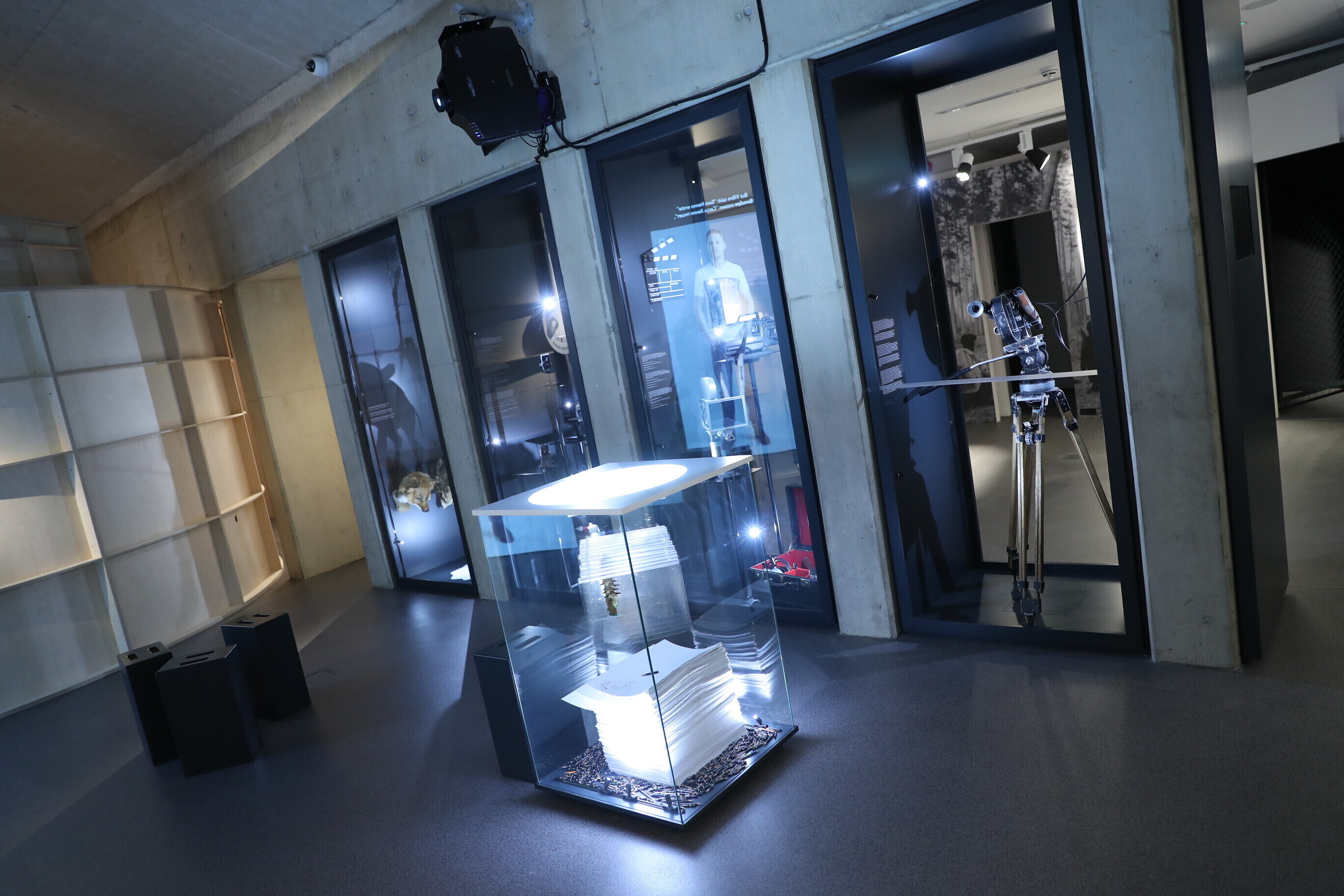Посетитель выставки проходит через этапы создания фильма, словно в закадровом мире: поймет, какие роли в съемках играют сценарий, съемочная площадка, монтаж, свет и звук; выслушивает множество связанных с кинематографом историй; узнает о музыке к кинофильмам, заглянув в предназначенный для этого поезд; проходит по являющейся неотъемлемым элементом кинопремьеры красной дорожке и предстает перед критиками.