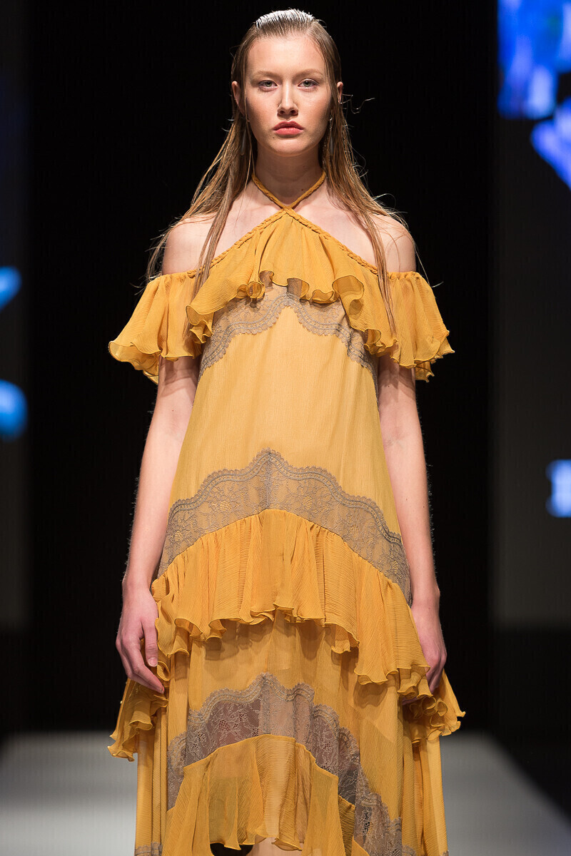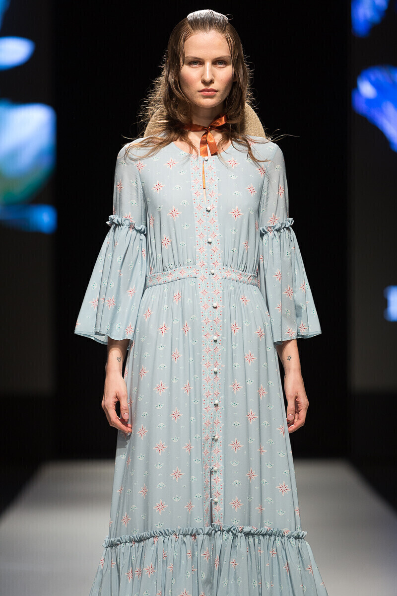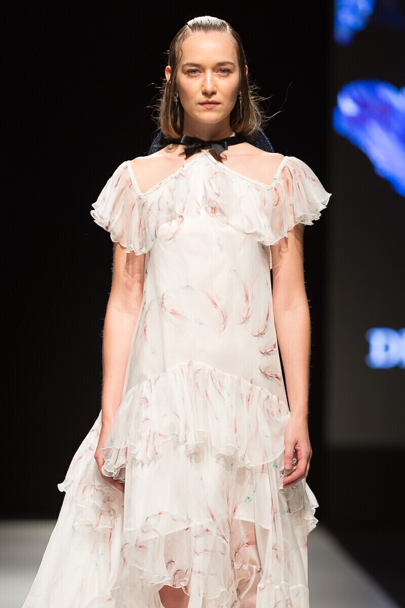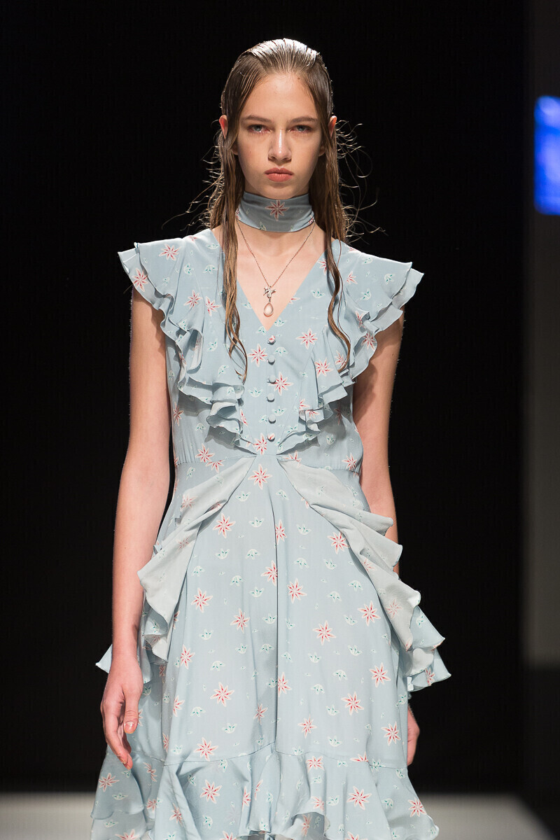 Простые силуэты дизайнер мастерски дополняет воланами и кружевами. Уникальный принт мифической леди-птицы, распушившей крылья, служит центральной частью весенне-летней коллекции 2018 года, в которой представлен широкий спектр нарядов: от платьев-рубашек до праздничных нарядов, богато украшенных воланами.