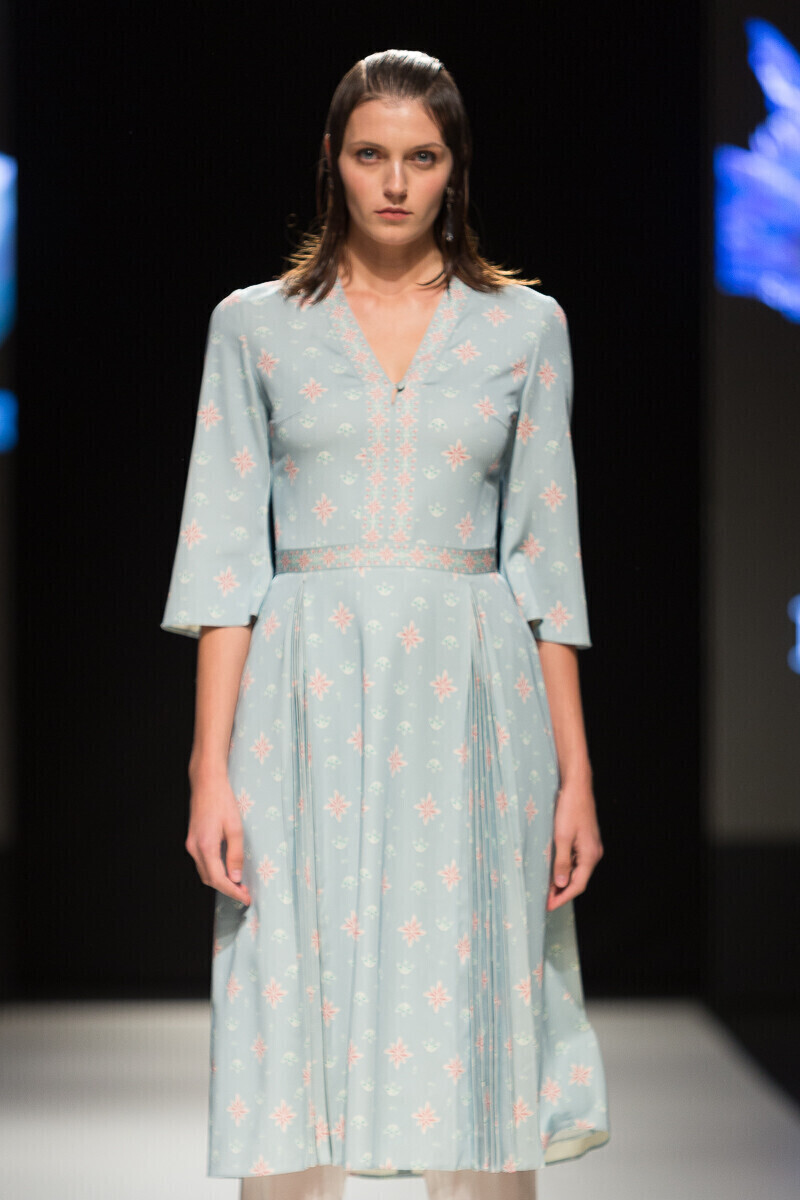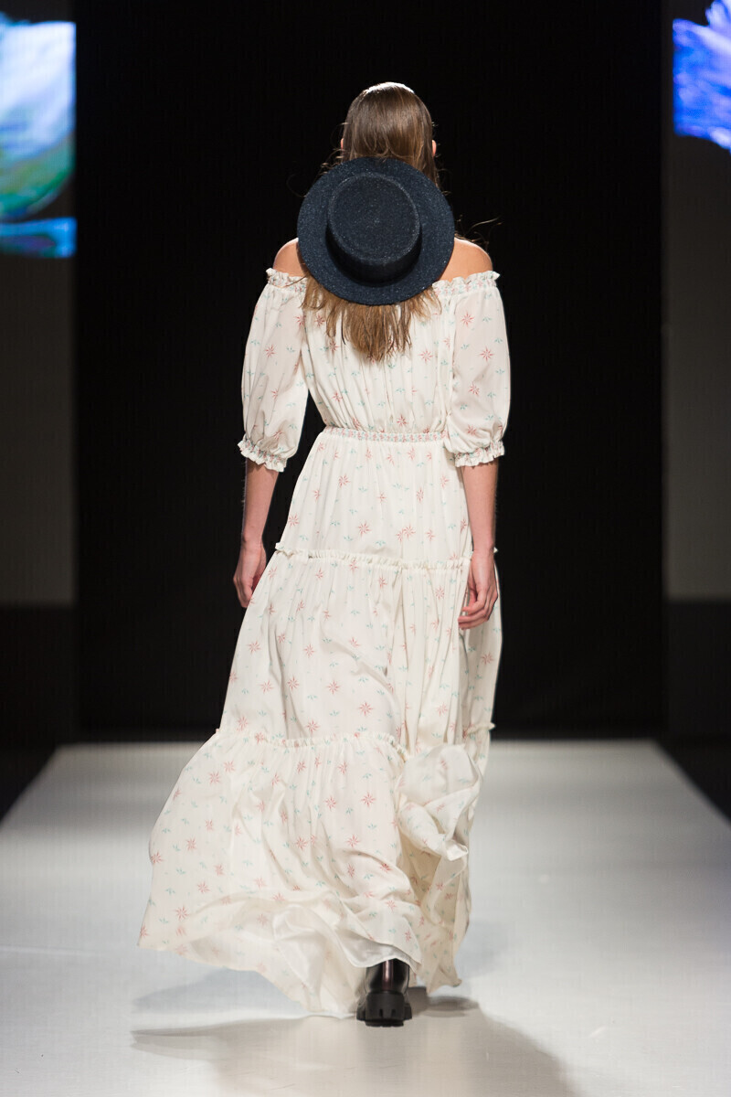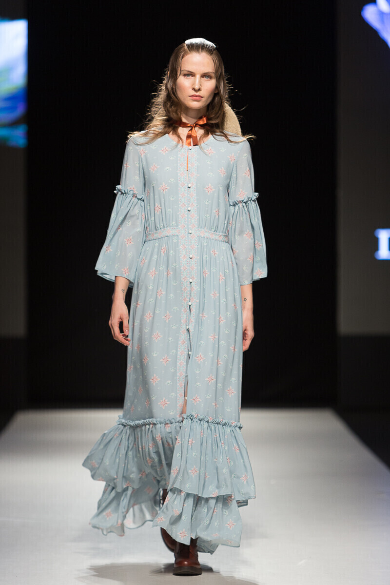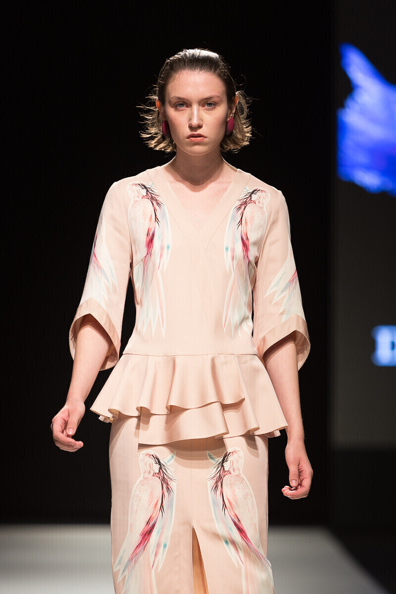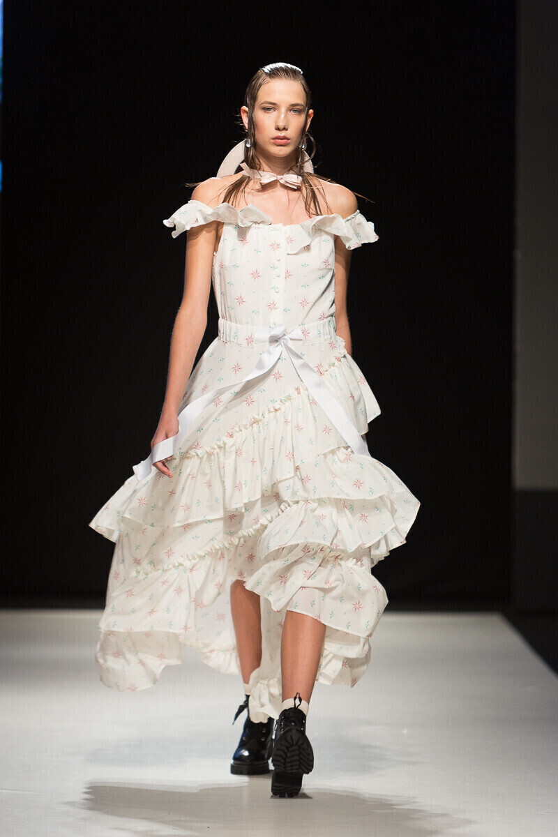 Простые силуэты дизайнер мастерски дополняет воланами и кружевами. Уникальный принт мифической леди-птицы, распушившей крылья, служит центральной частью весенне-летней коллекции 2018 года, в которой представлен широкий спектр нарядов: от платьев-рубашек до праздничных нарядов, богато украшенных воланами.