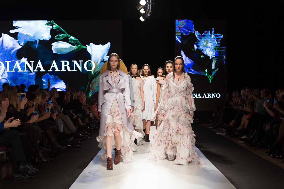 Весенняя коллекция дизайнера из Эстонии Дианы Арно была показана в четверг, 26 октября. Одежда от бренда Diana Arno очень женственна и элегантна и сочетает в себе новый подход с воспоминаниями из прошлого.