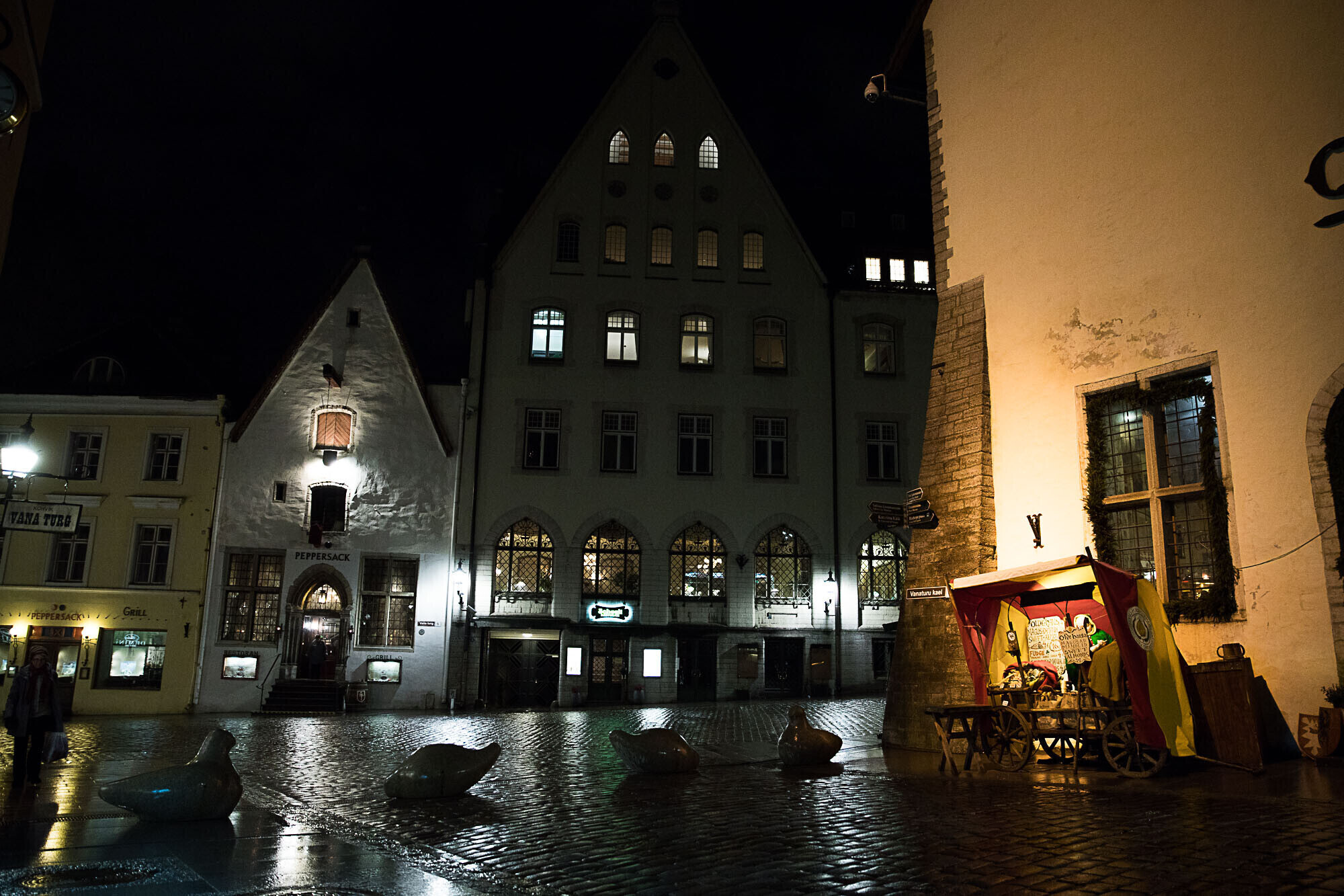 Ведущие на Ратушную площадь улицы Таллинна со вторника перекрыли бетонными ограждениями в форме голубей, исключающими несанкционированный проезд на площадь автотранспорта на большой скорости.