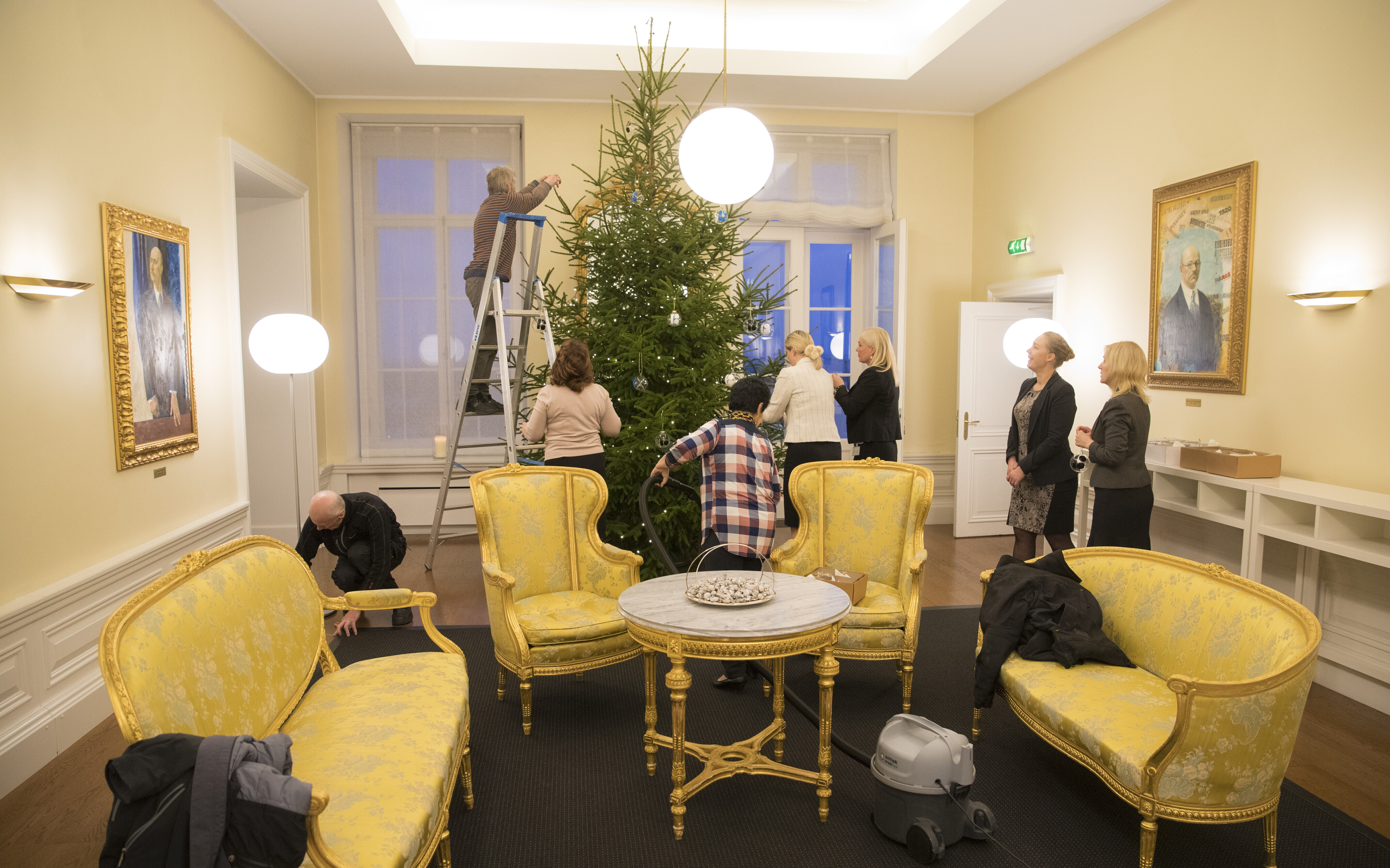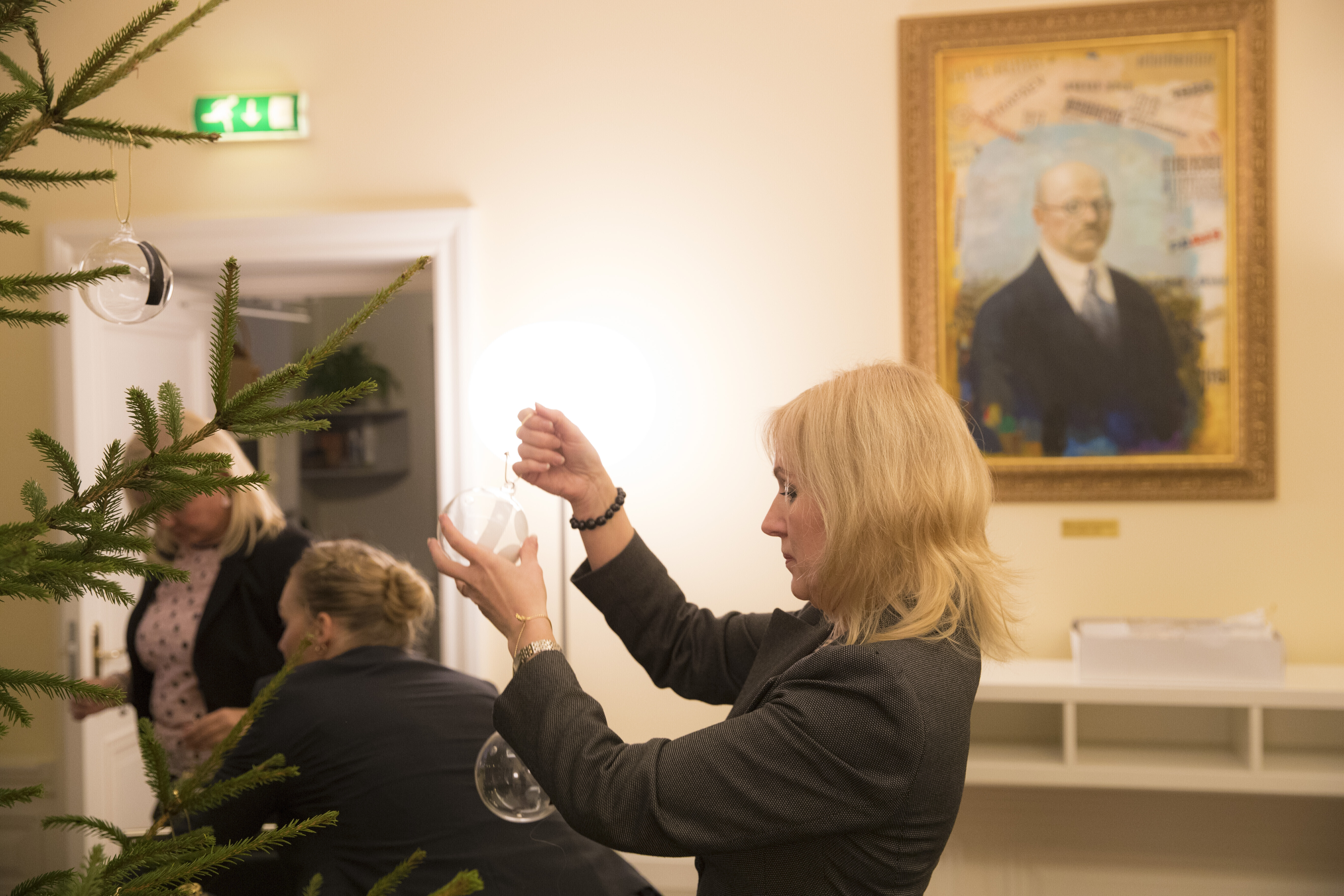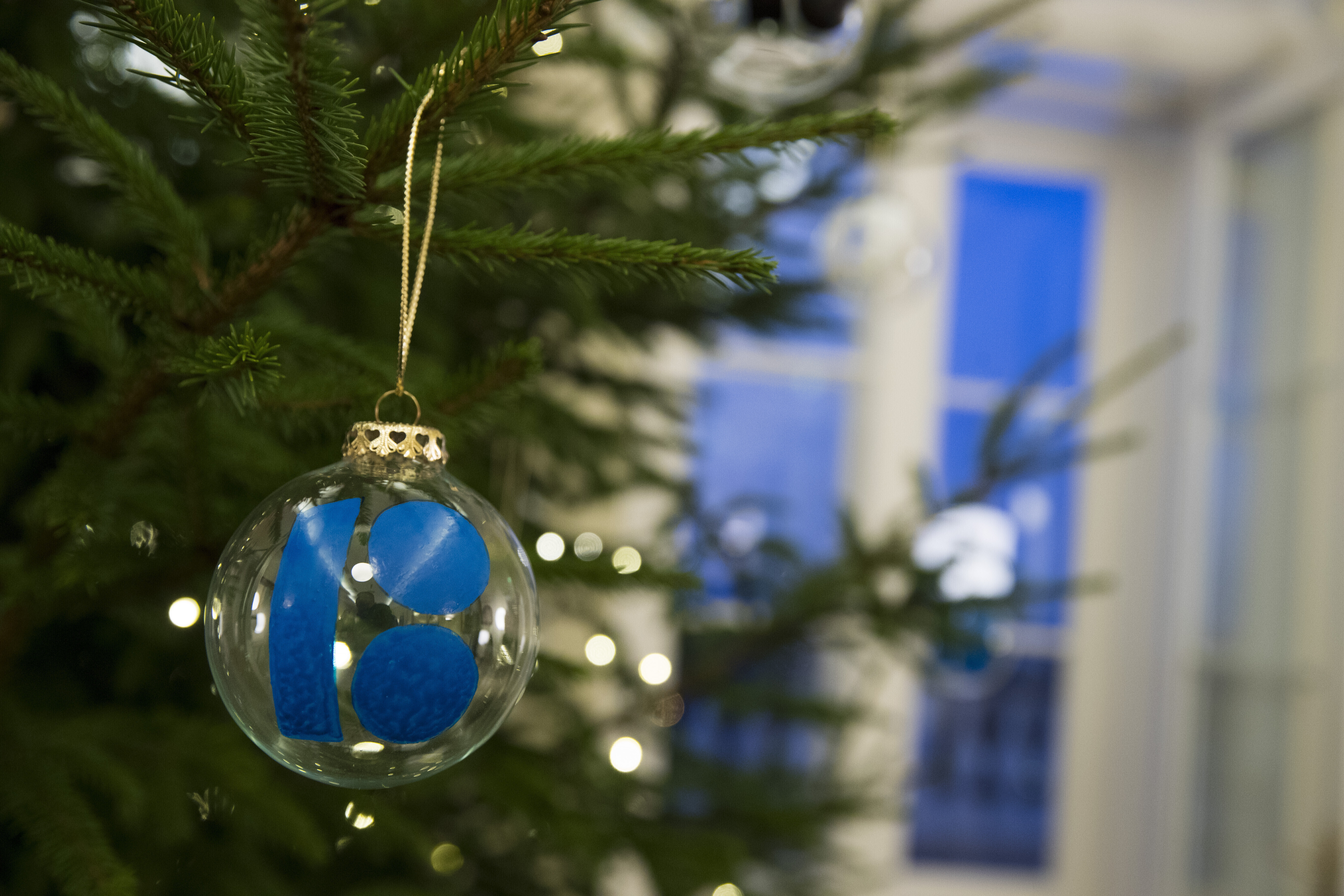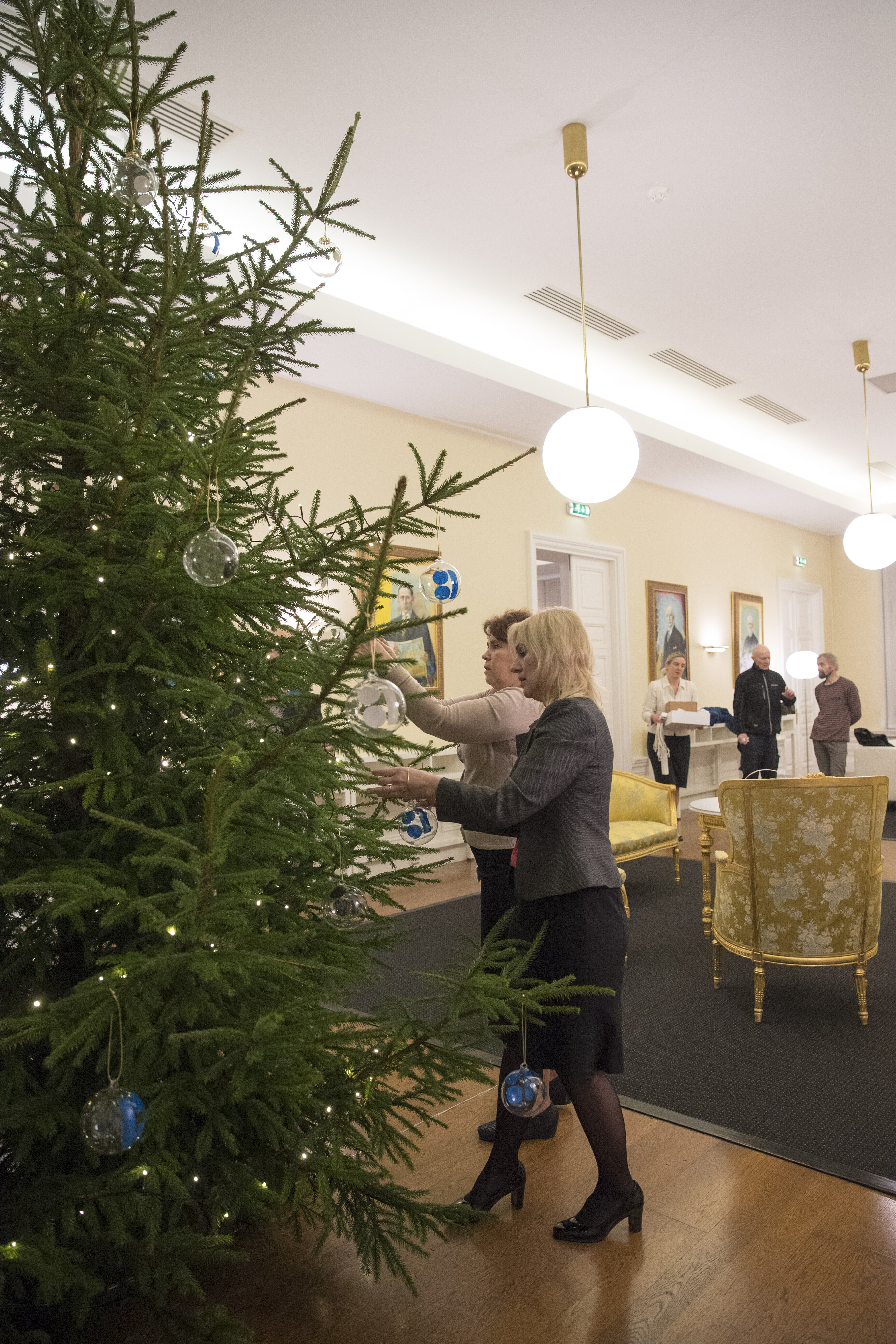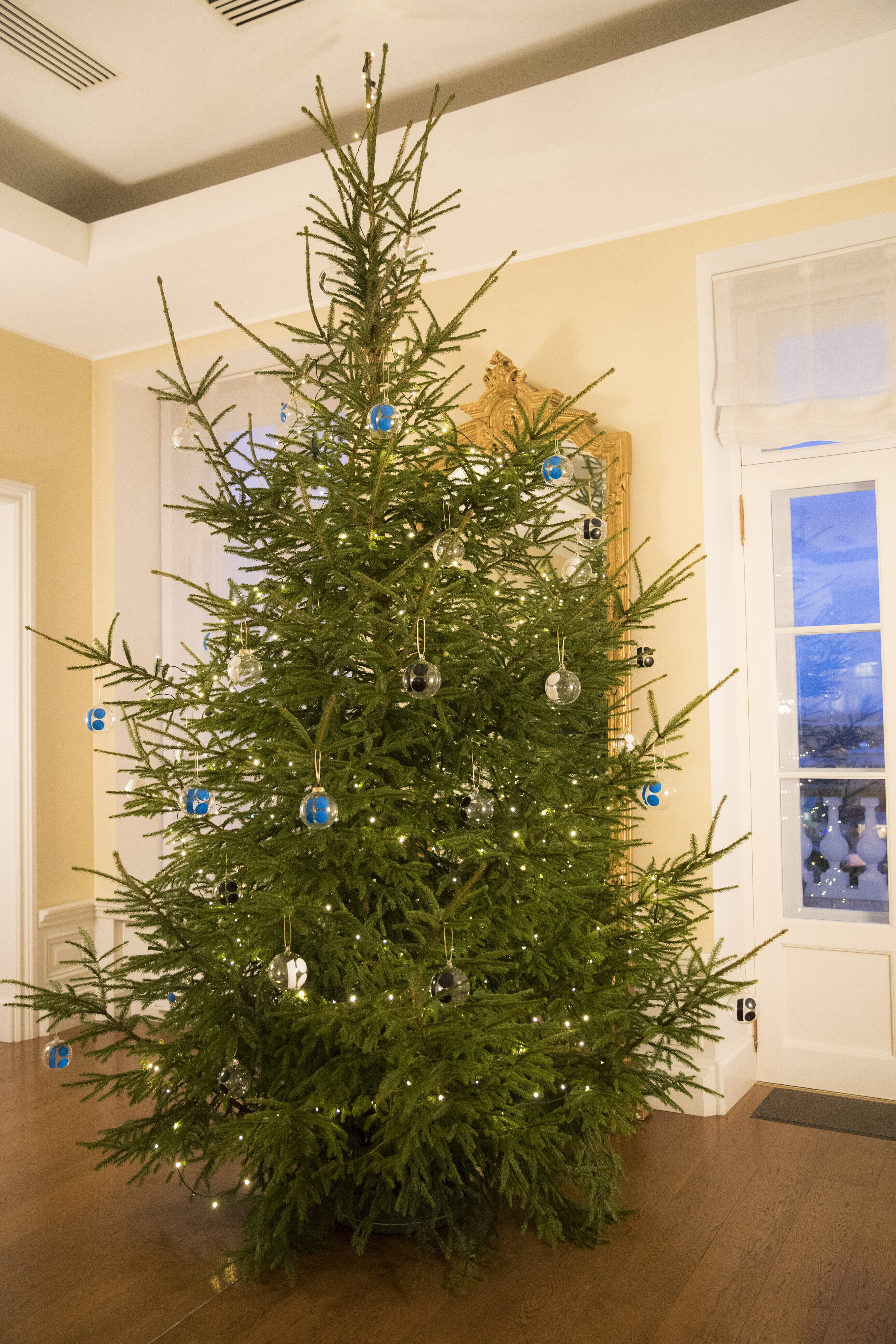 ФОТО: рождественскую ель в доме Стенбока украсили шарами с символикой EV100