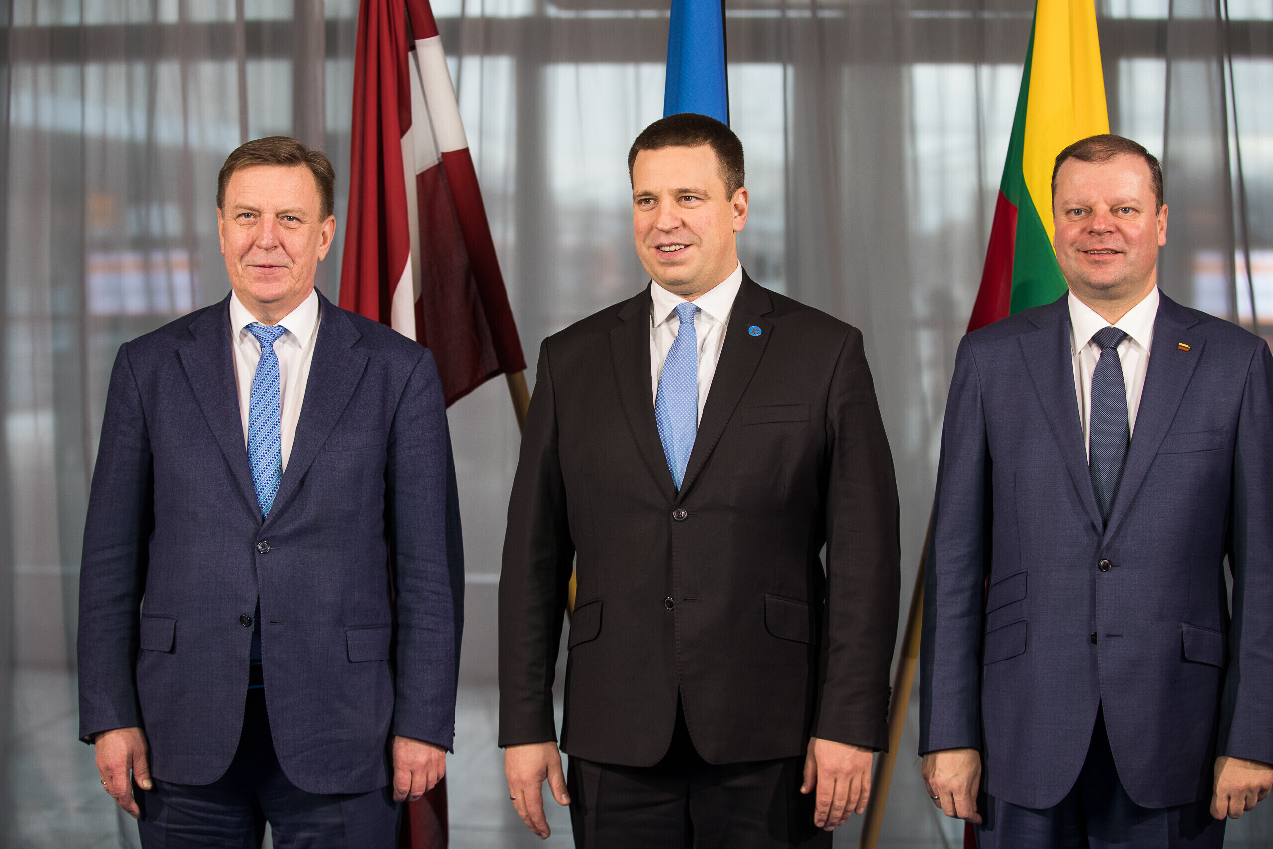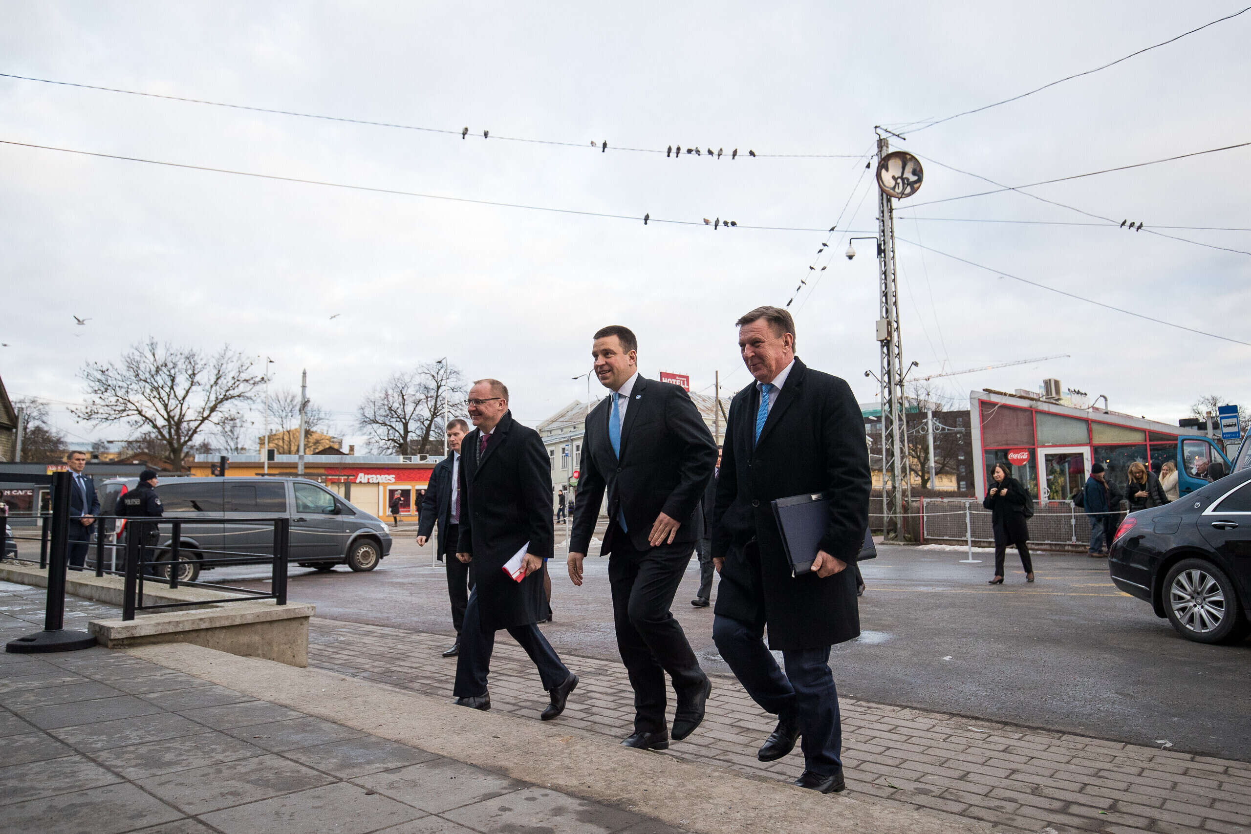 Премьер-министр Эстонии Юри Ратас в понедельник, 18 декабря, встретил своих коллег из Латвии - Мариса Кучинскиса и Литвы - Саулюса Сквернялиса на Балтийском вокзале в Таллинне.