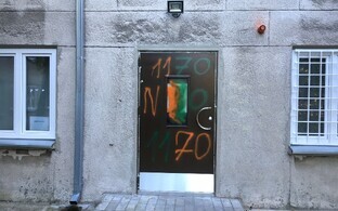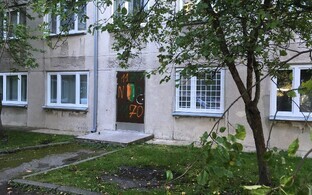 Скандальный пункт обмена шприцев на улице Ситси работает уже 4 месяца. Сейчас обстановка здесь тихая, о противостоянии напоминает лишь граффити на входной двери.