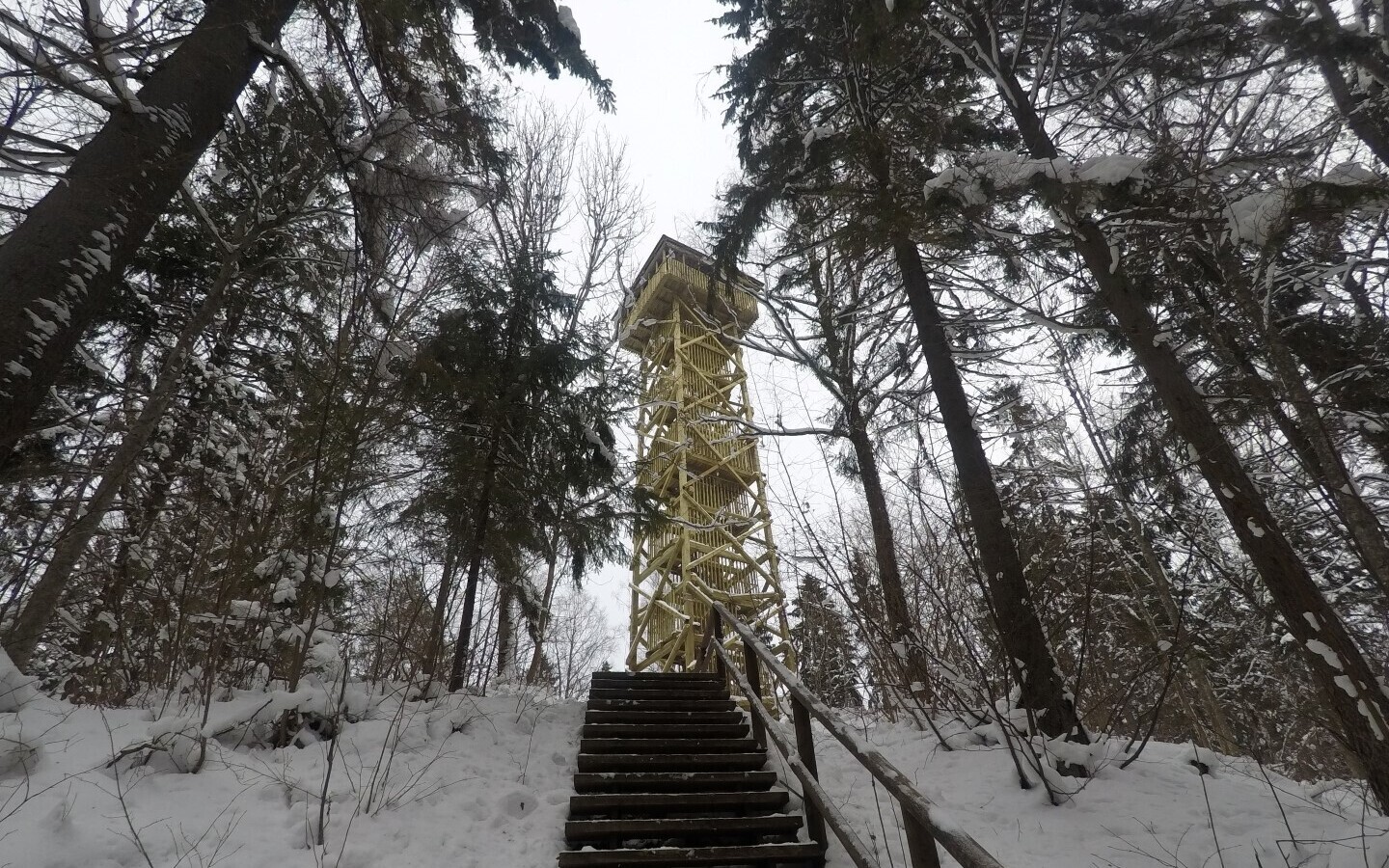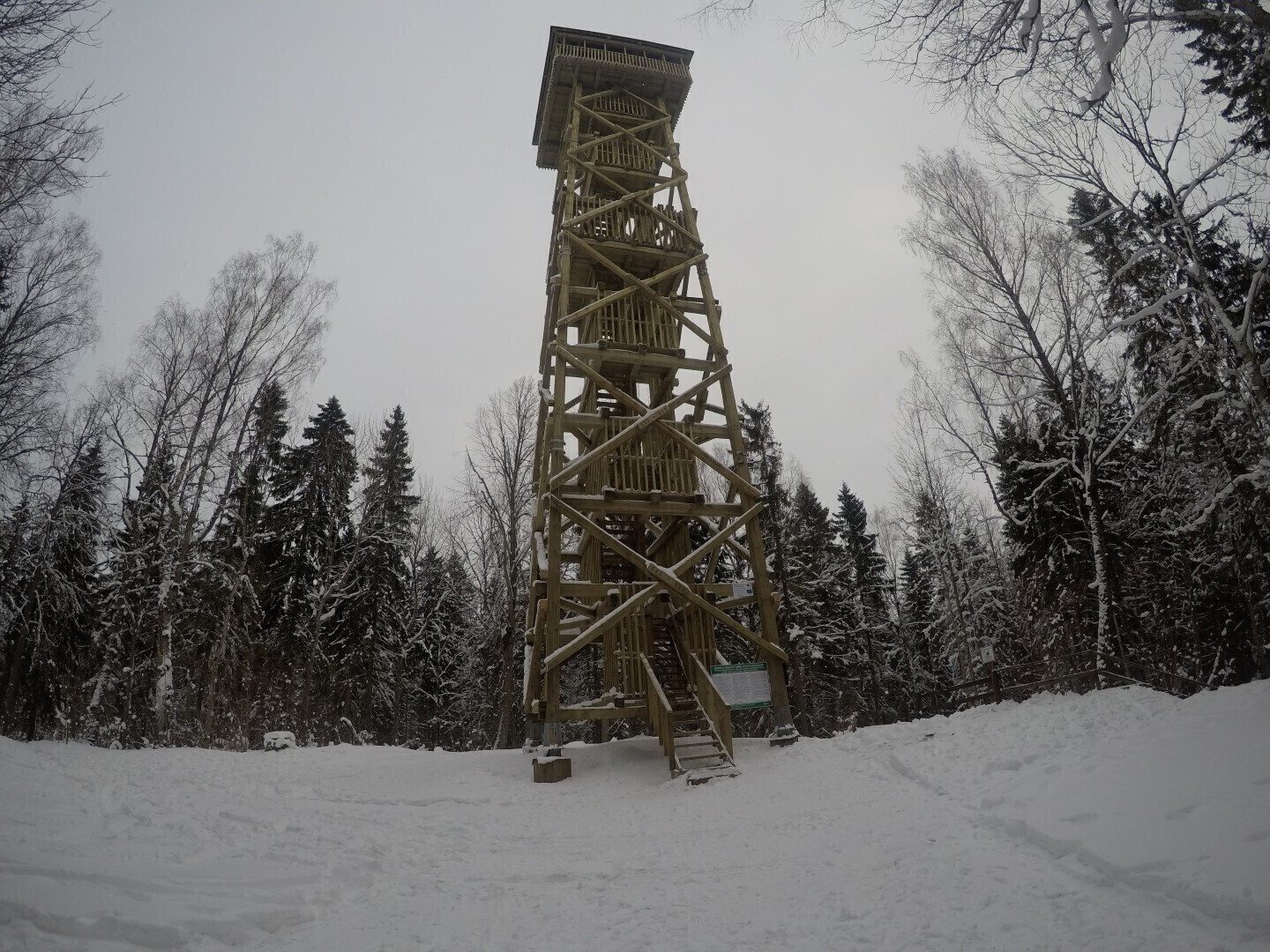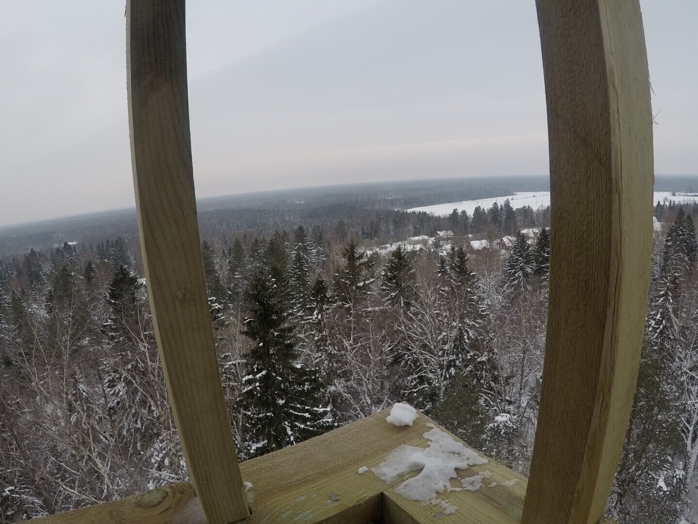 Бревенчатое строение возвышается на 120 метров над уровнем моря, поэтому в хорошую погоду с нее открывается отличный обзор, сообщила в четверг, 15 февраля, "Актуальная камера".