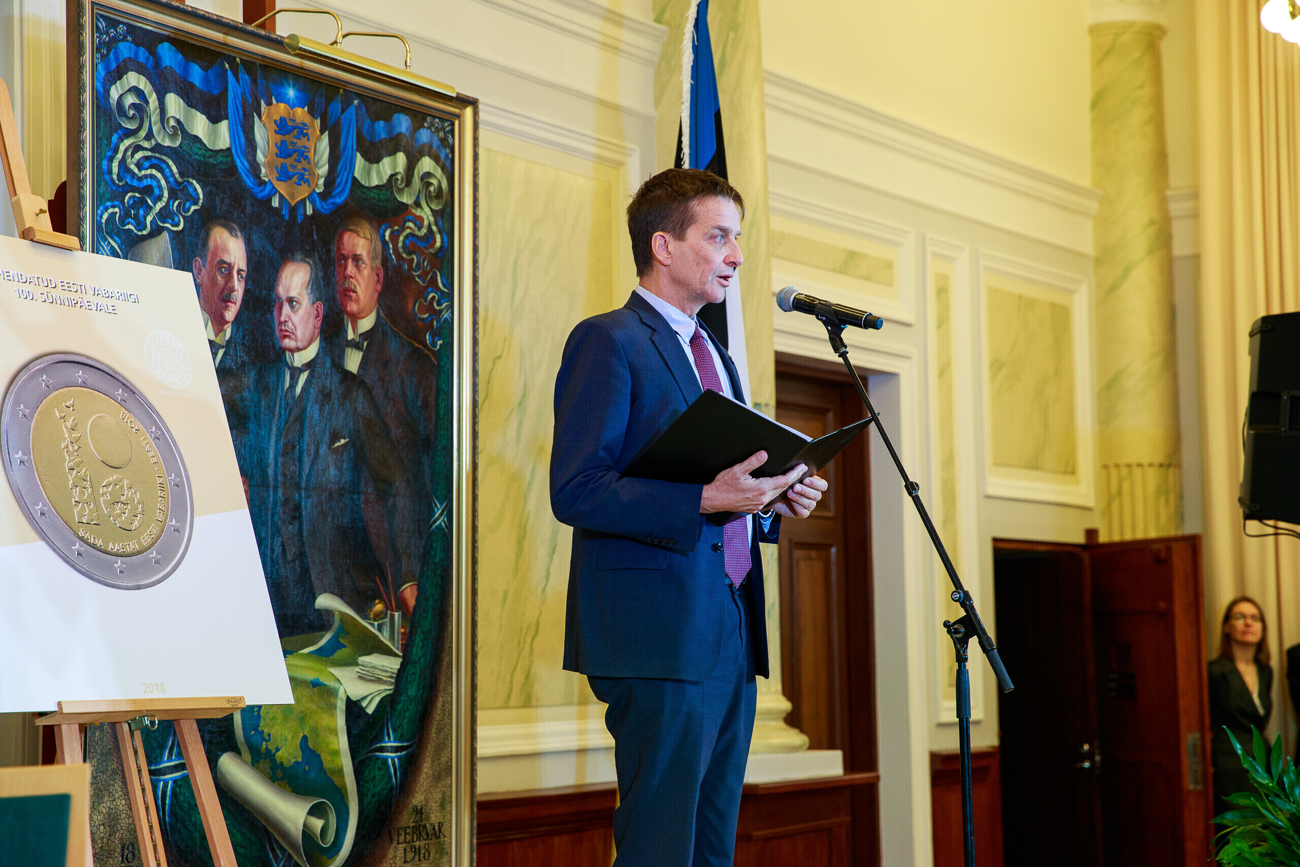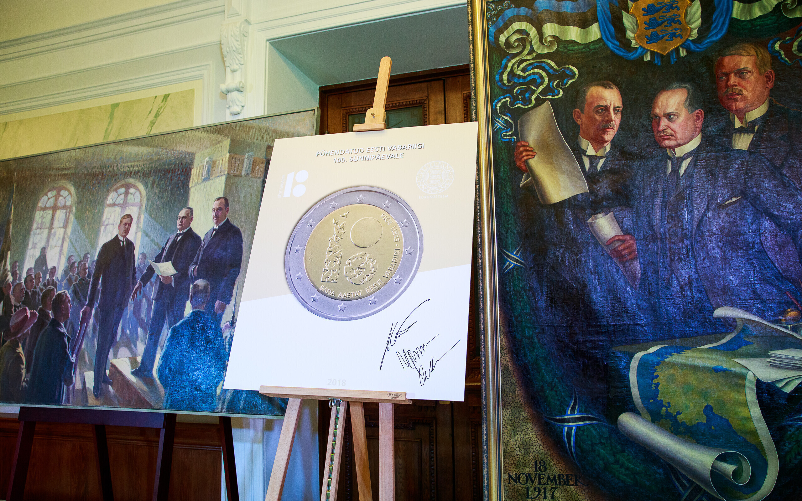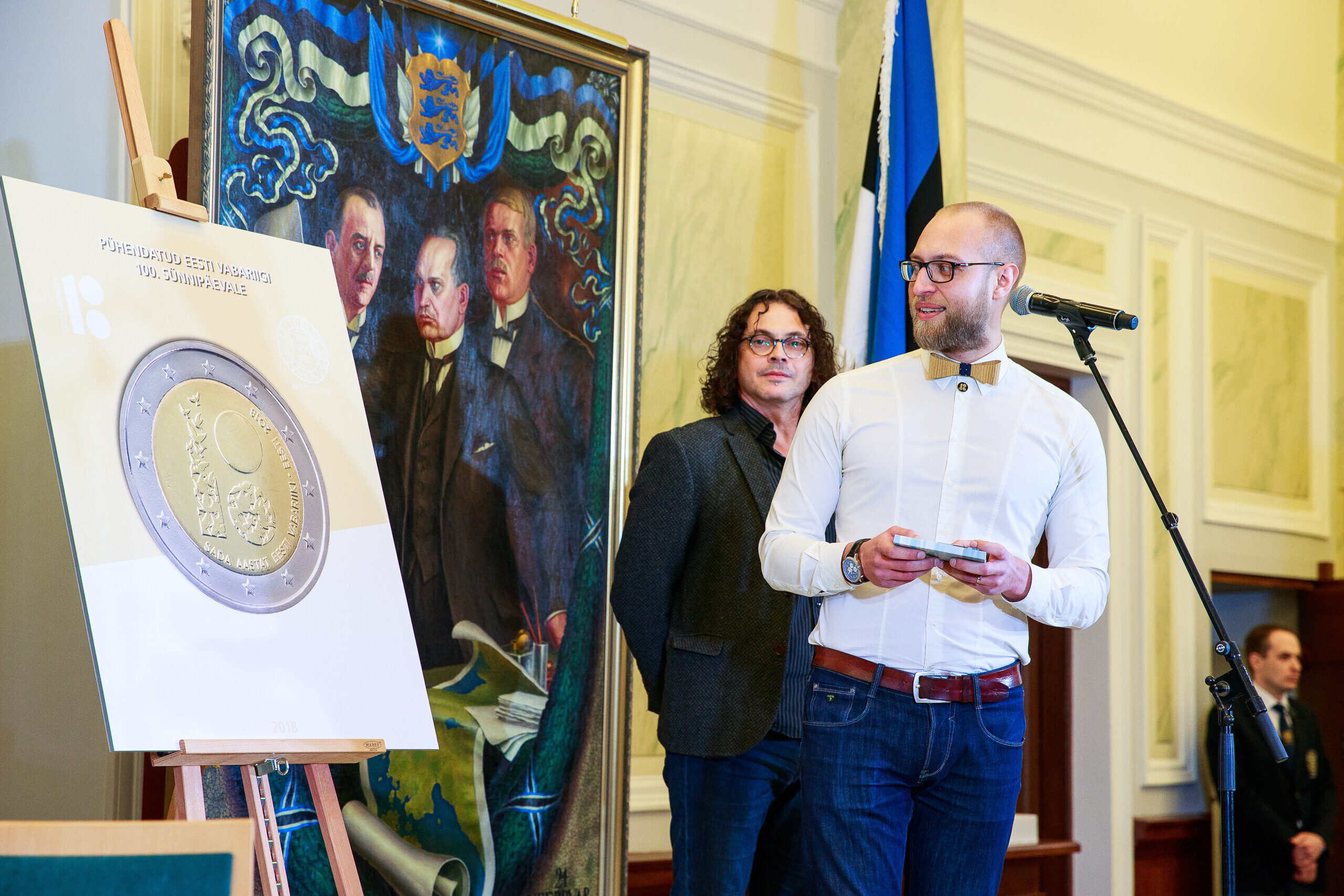 В понедельник, 19 февраля, в рамках юбилейной недели Эстонской Республики была представлена специальная монета достоинством в 2 евро. Презентация прошла в Банке Эстонии.